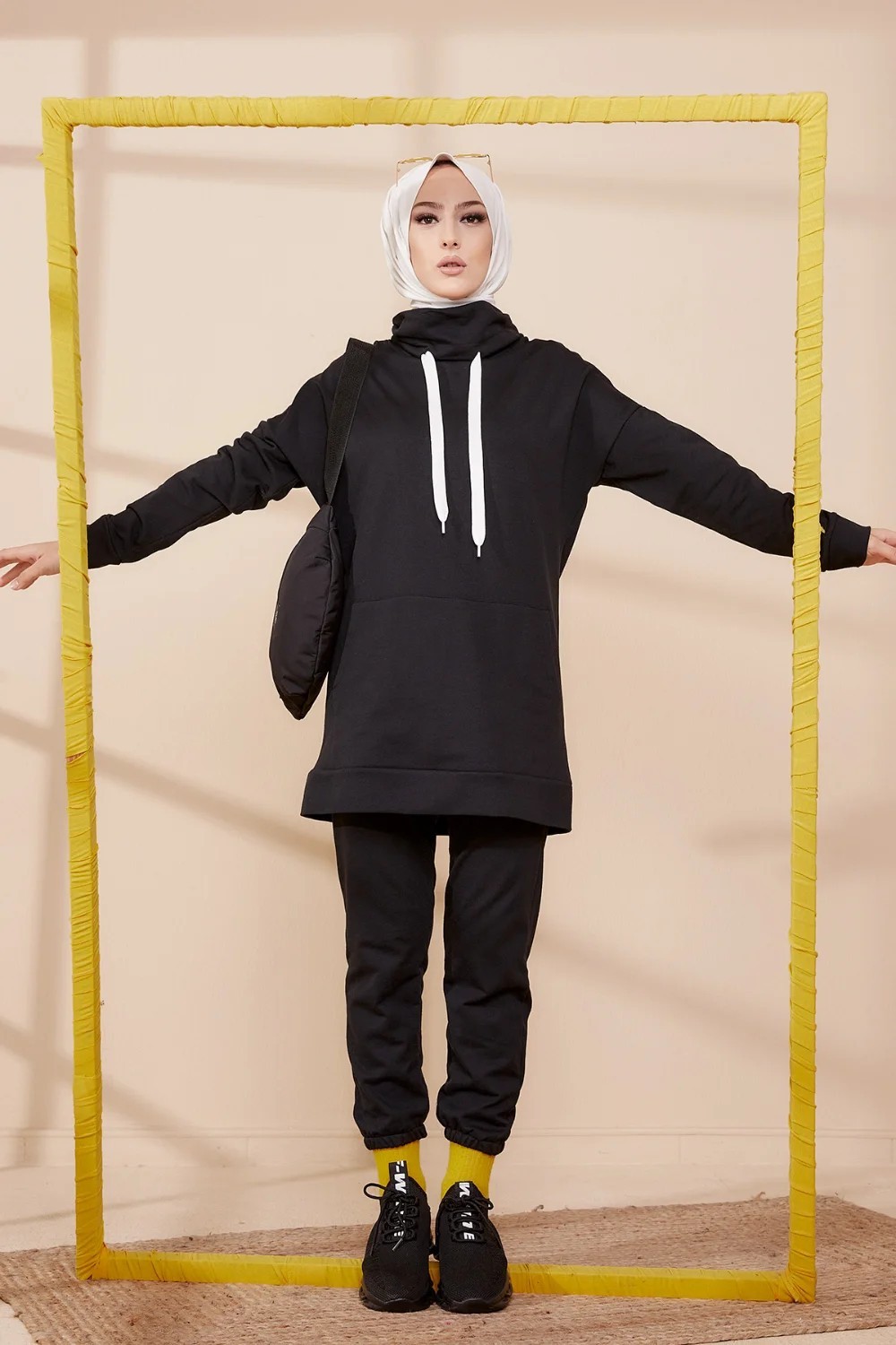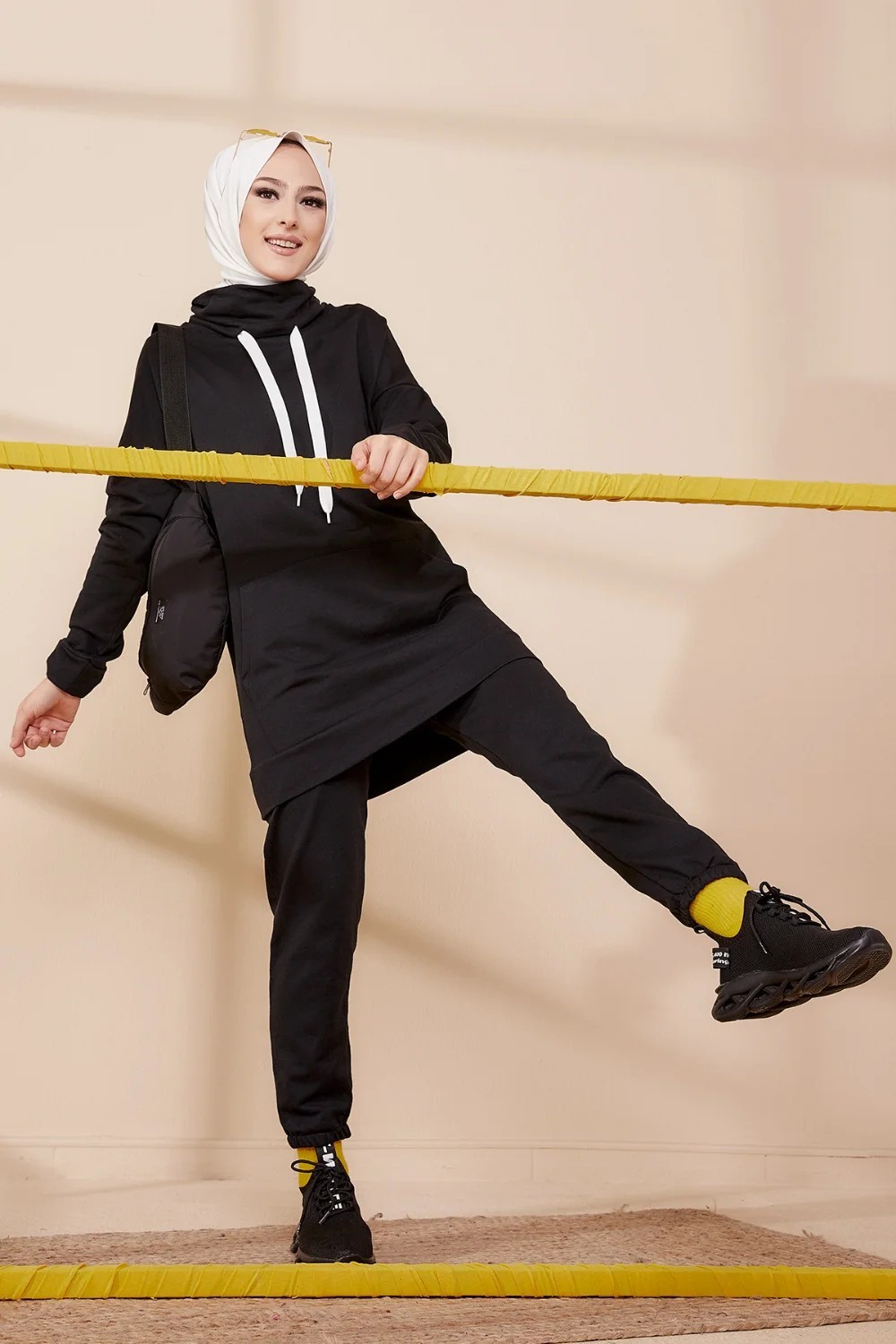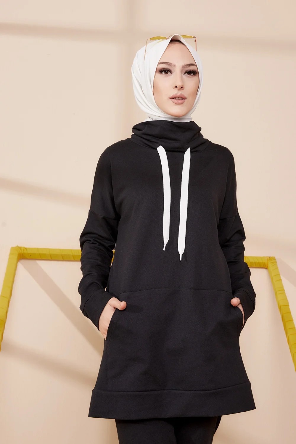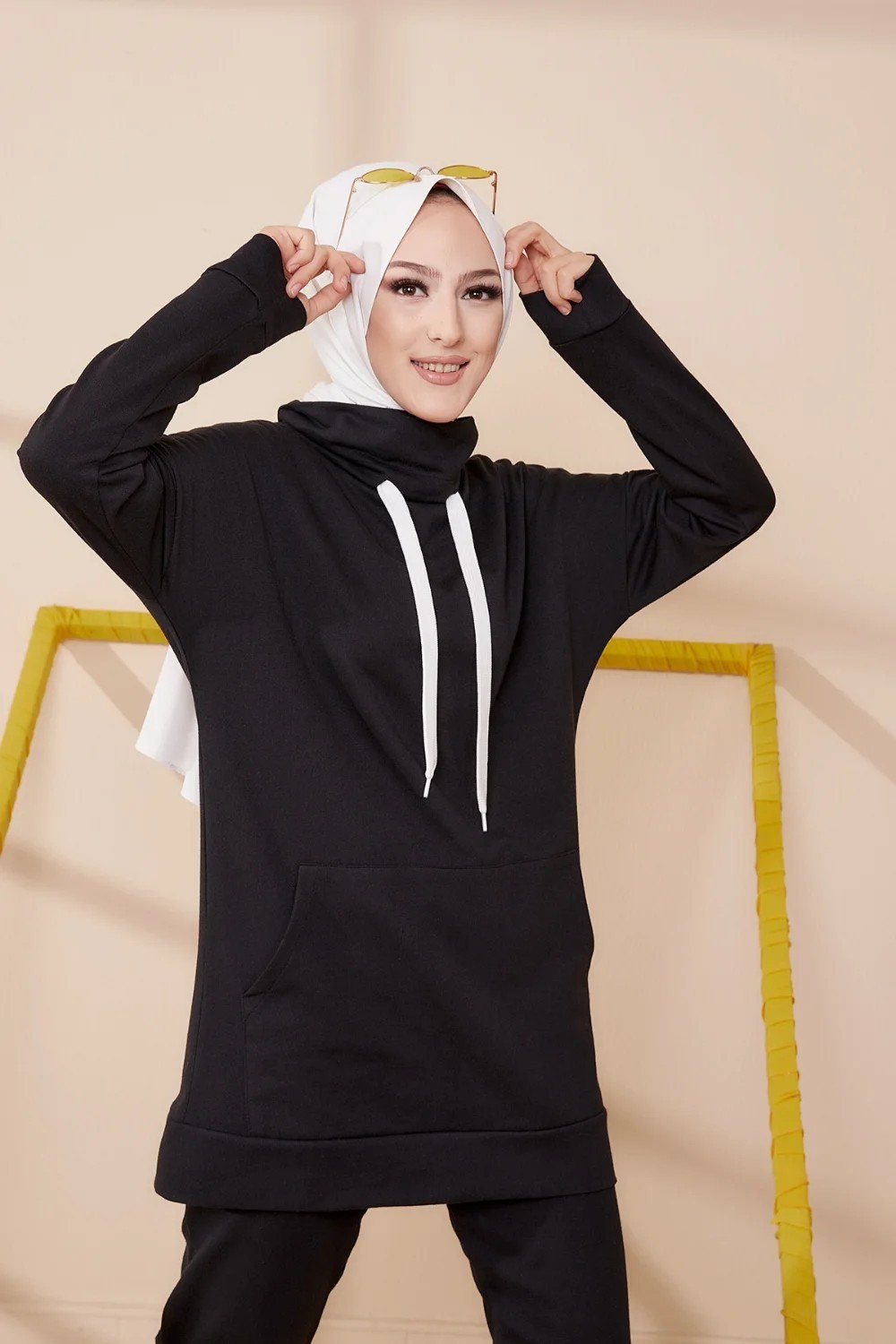Ensemble decontracte tunique et pantalon (Tenue de Sport Hijab) - Couleur noir