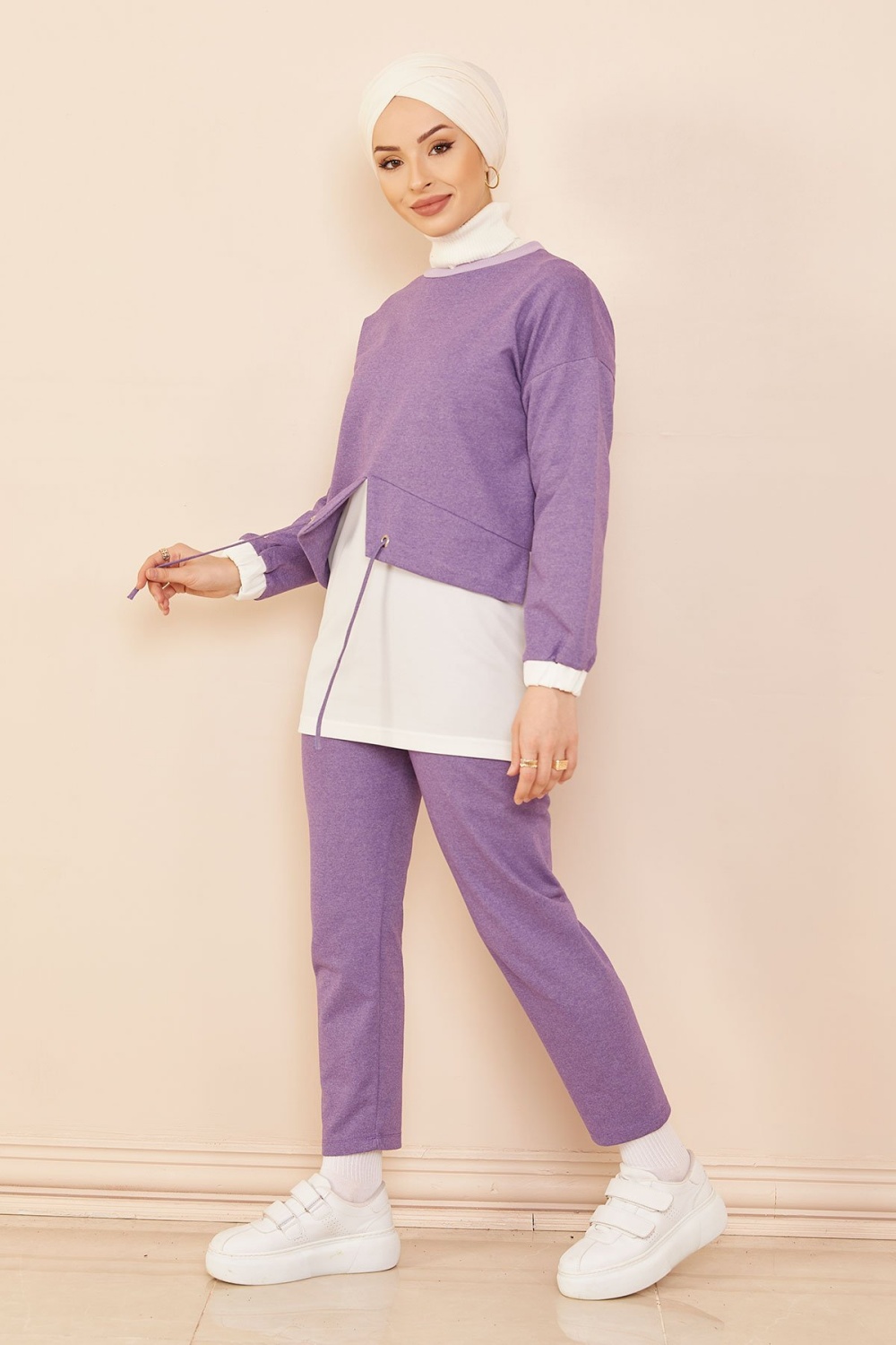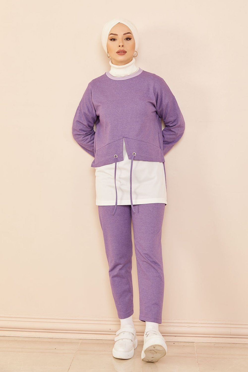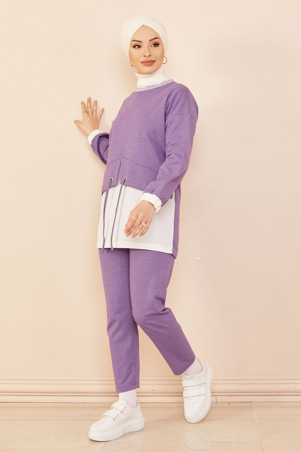 Ensemble tunique perlée et pantalon pour femme (Tenue Hijab Mode Musulmane) - Couleur lilas - REF. 36531 (39.90 €)