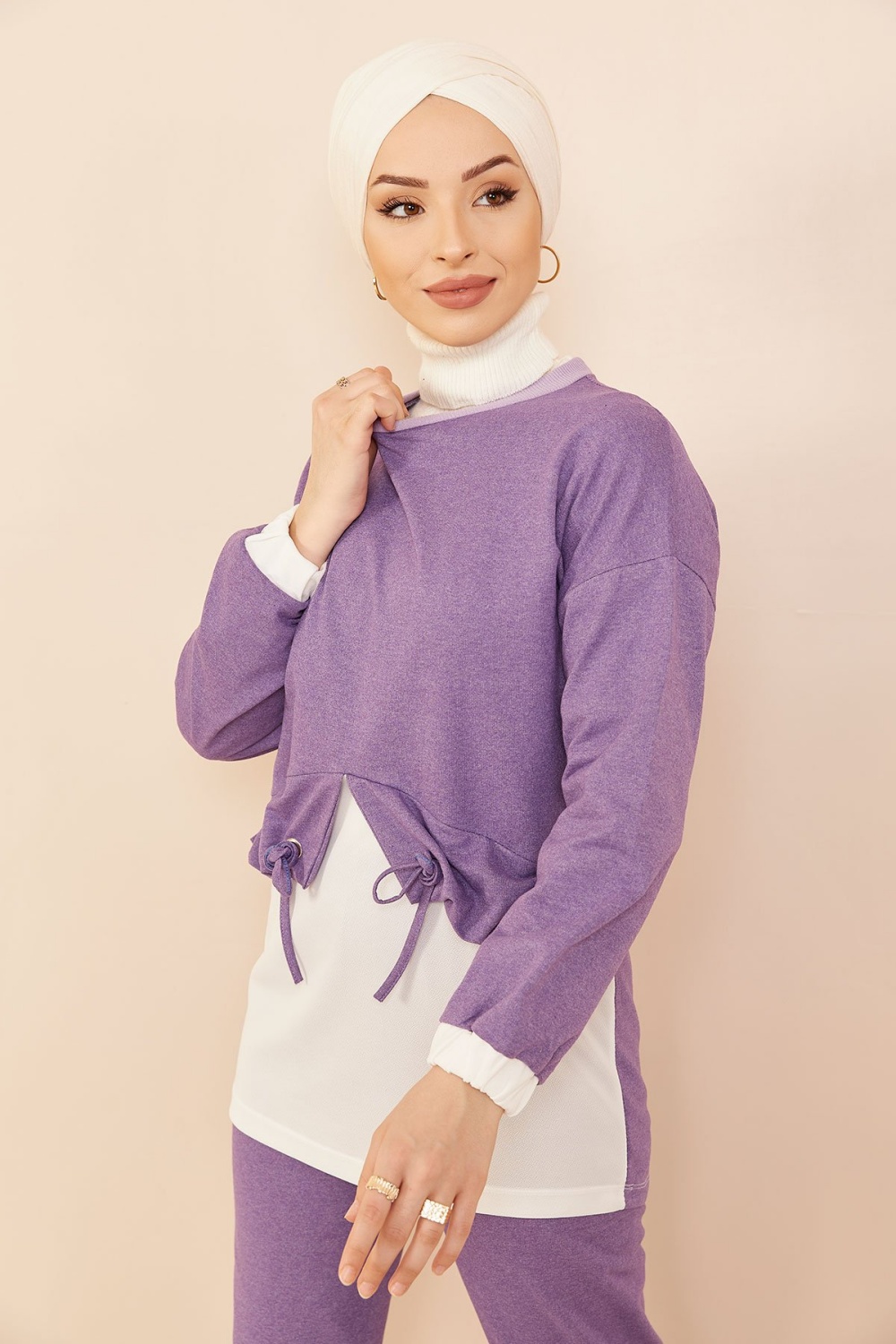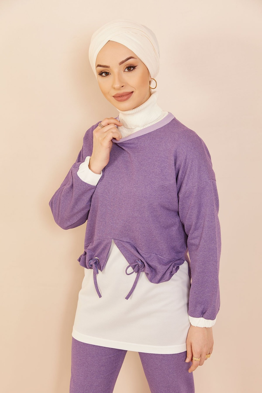 Ensemble décontracté tunique et pantalon pour femme - Couleur blanc et lilas Vetement & Accessoire