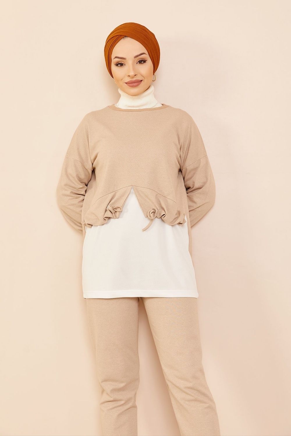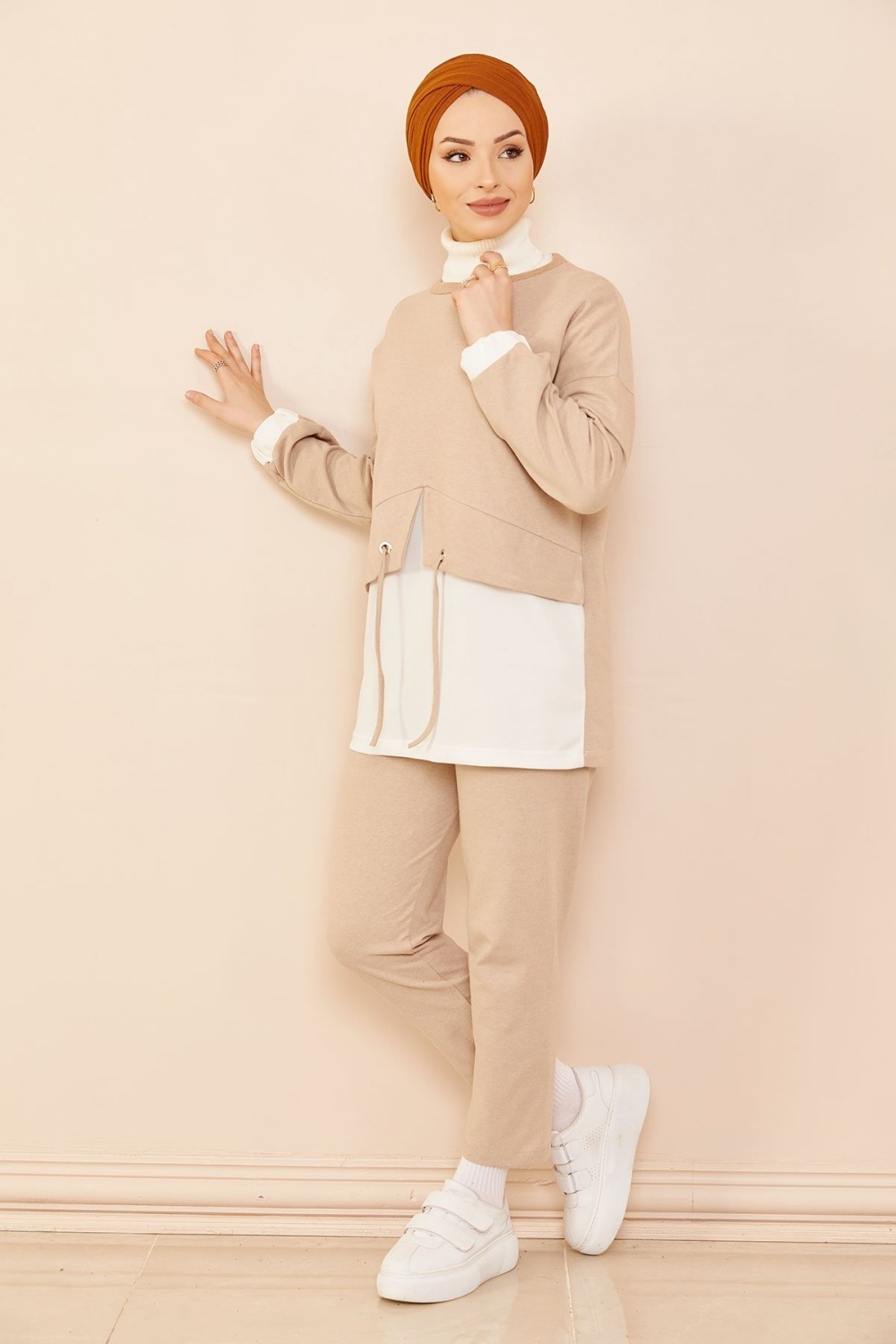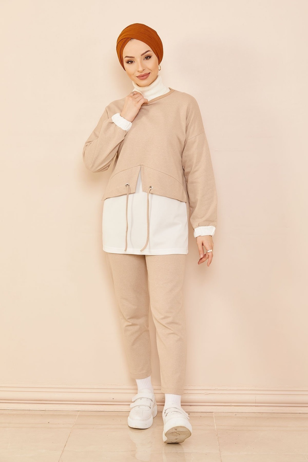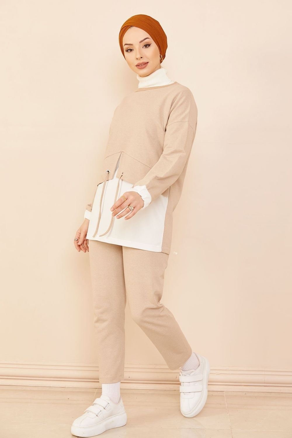 Ensemble decontracte tunique et pantalon pour femme (Nouveaute) - Couleur blanc et beige