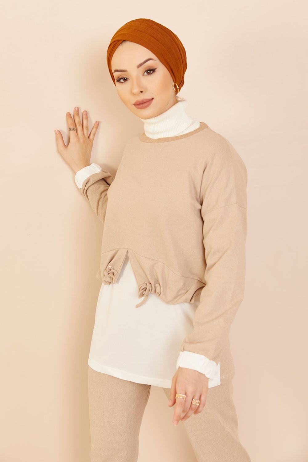 Ensemble Sweat à capuche et pantalon - Survêtement pour femme musulmane - Couleur blanc, noir et Brique - REF. 32540 (28.00 €)