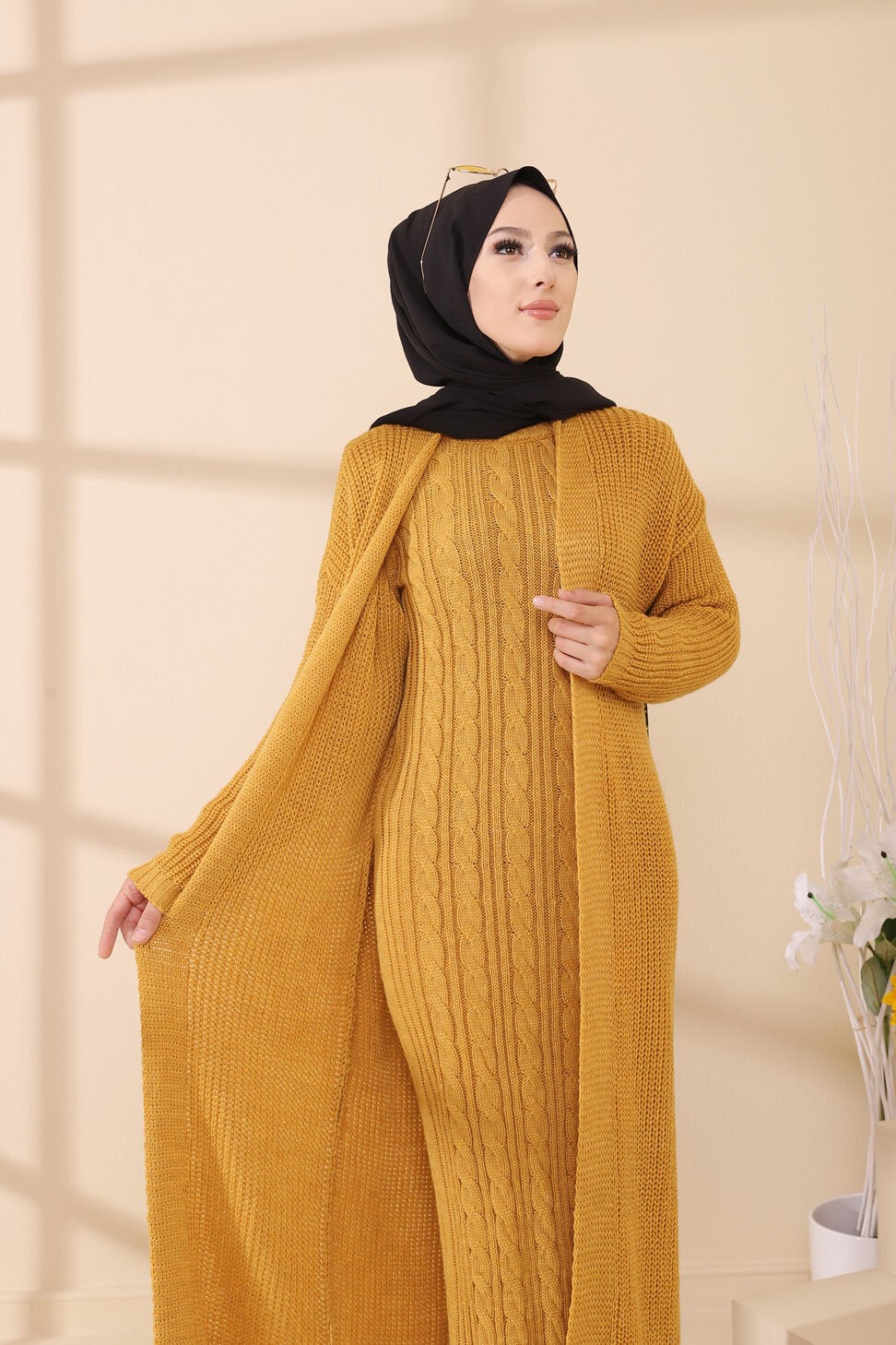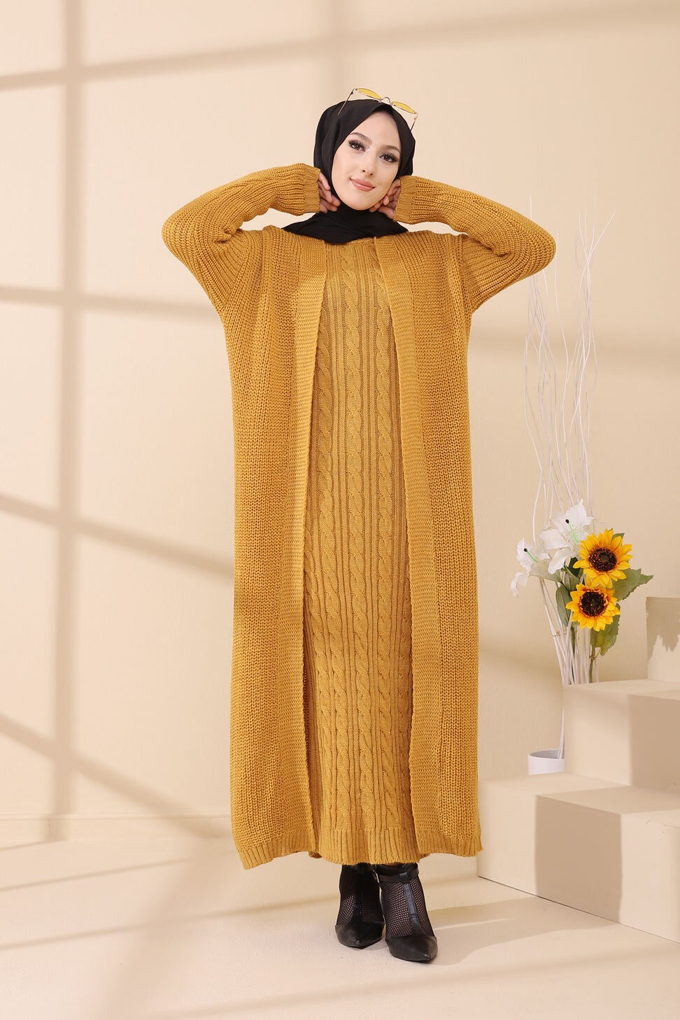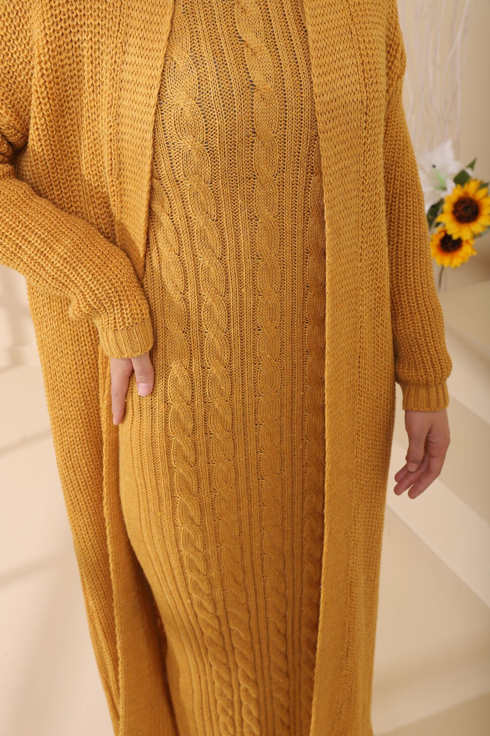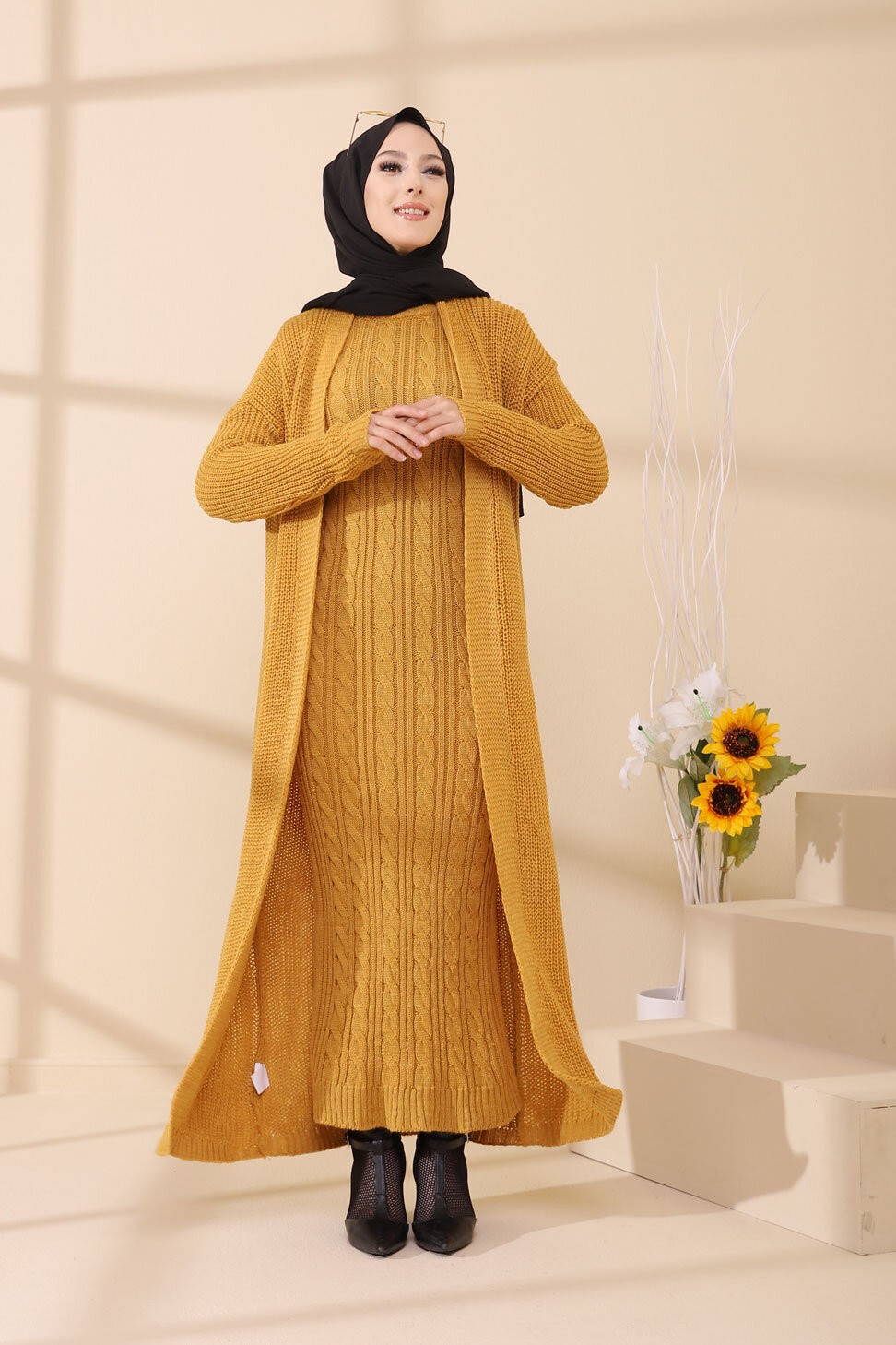 Ensemble deux pièces : Robe et cardigan pour femme - Couleur moutarde Vetement & Accessoire