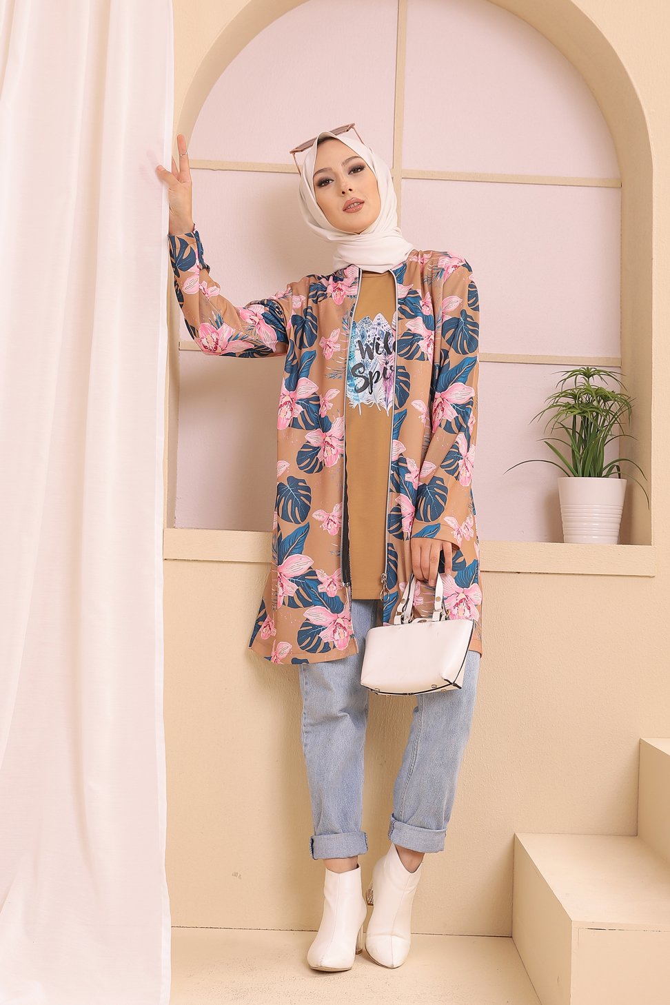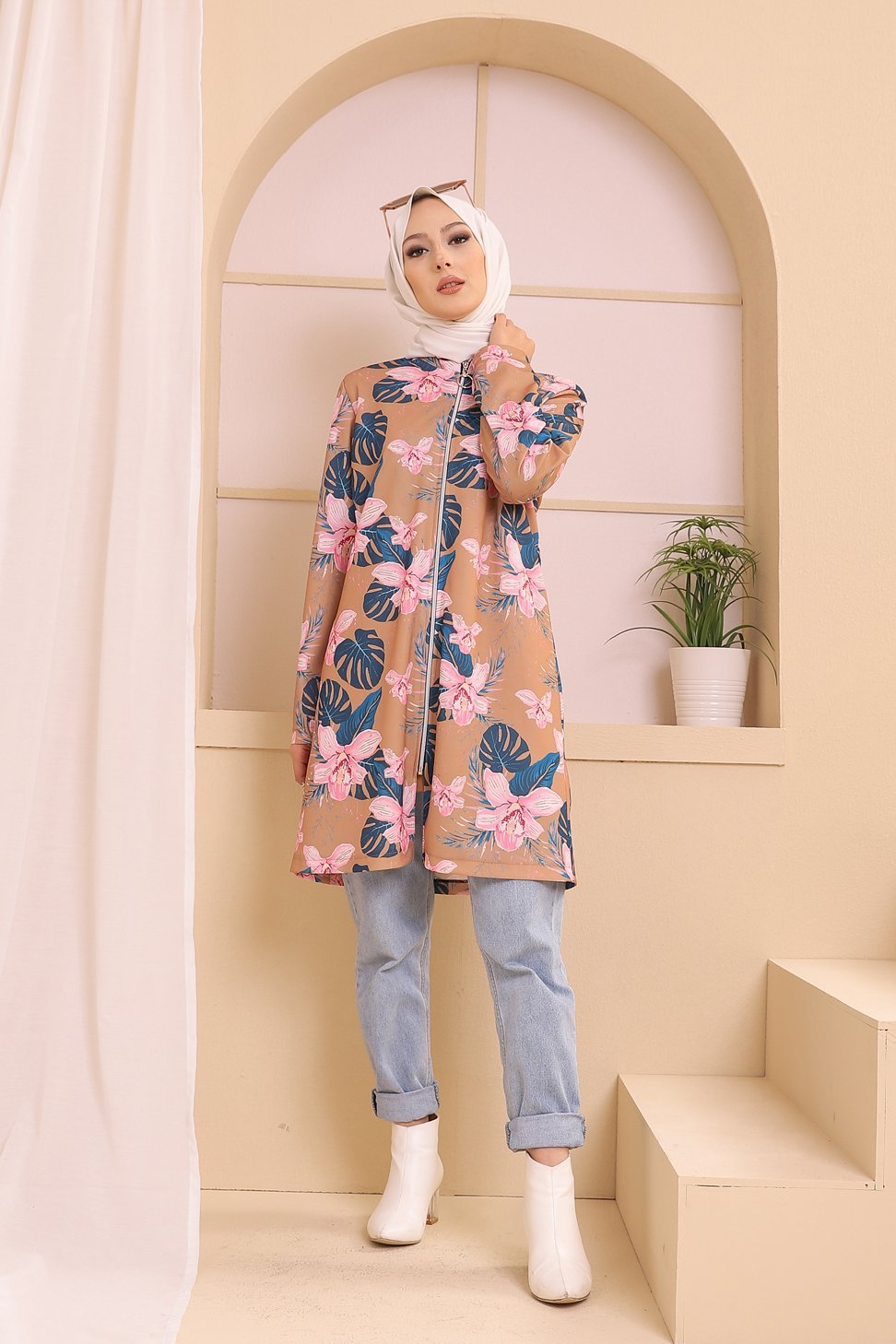 Veste moderne style décontracté avec fermeture zip (Vetement femme voilée) - Couleur kaki - REF. 32847 (24.90 €) - En Promotion à 19.00 €