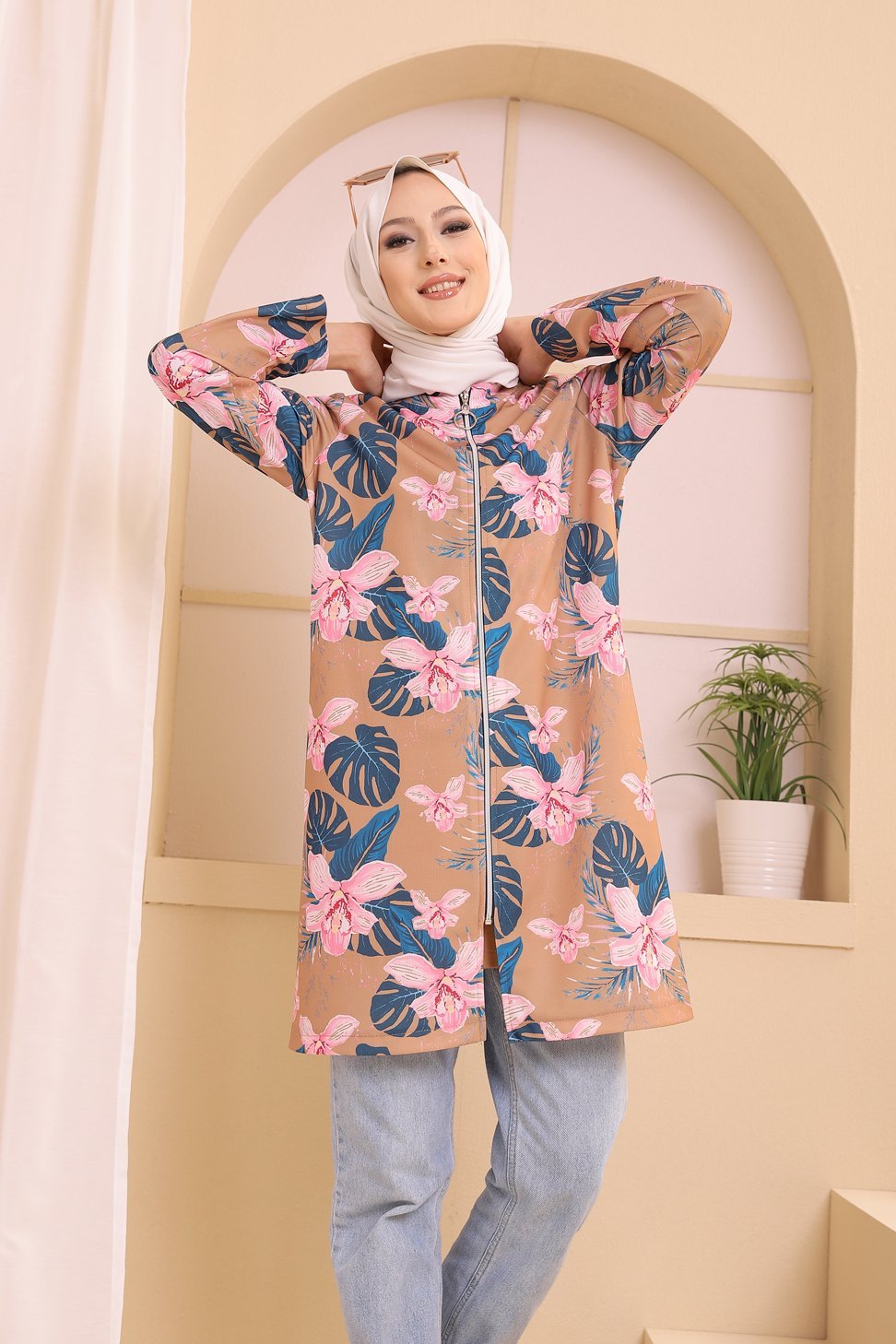 Tunique avec capuche (Tenue décontractée femme musulmane) - Couleur beige - REF. 37471 (28.00 €)