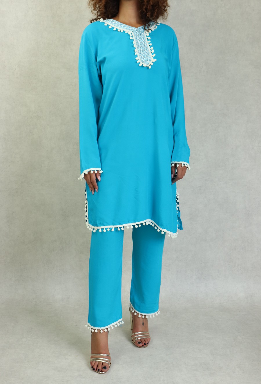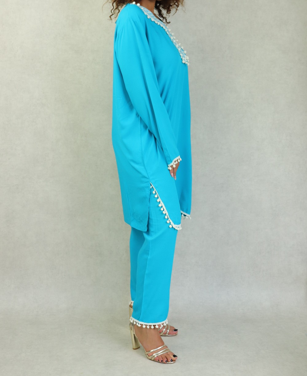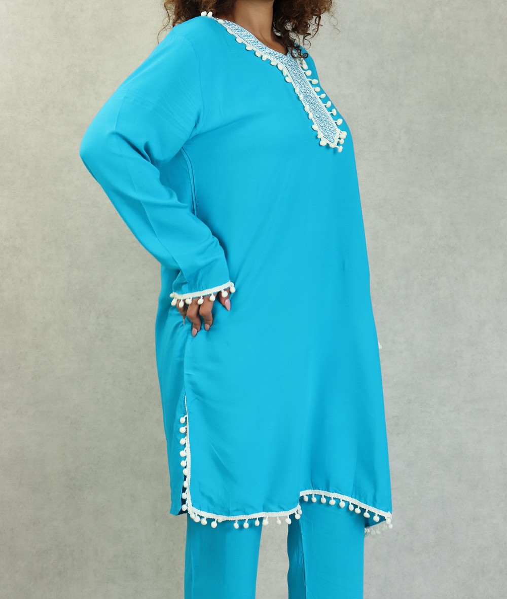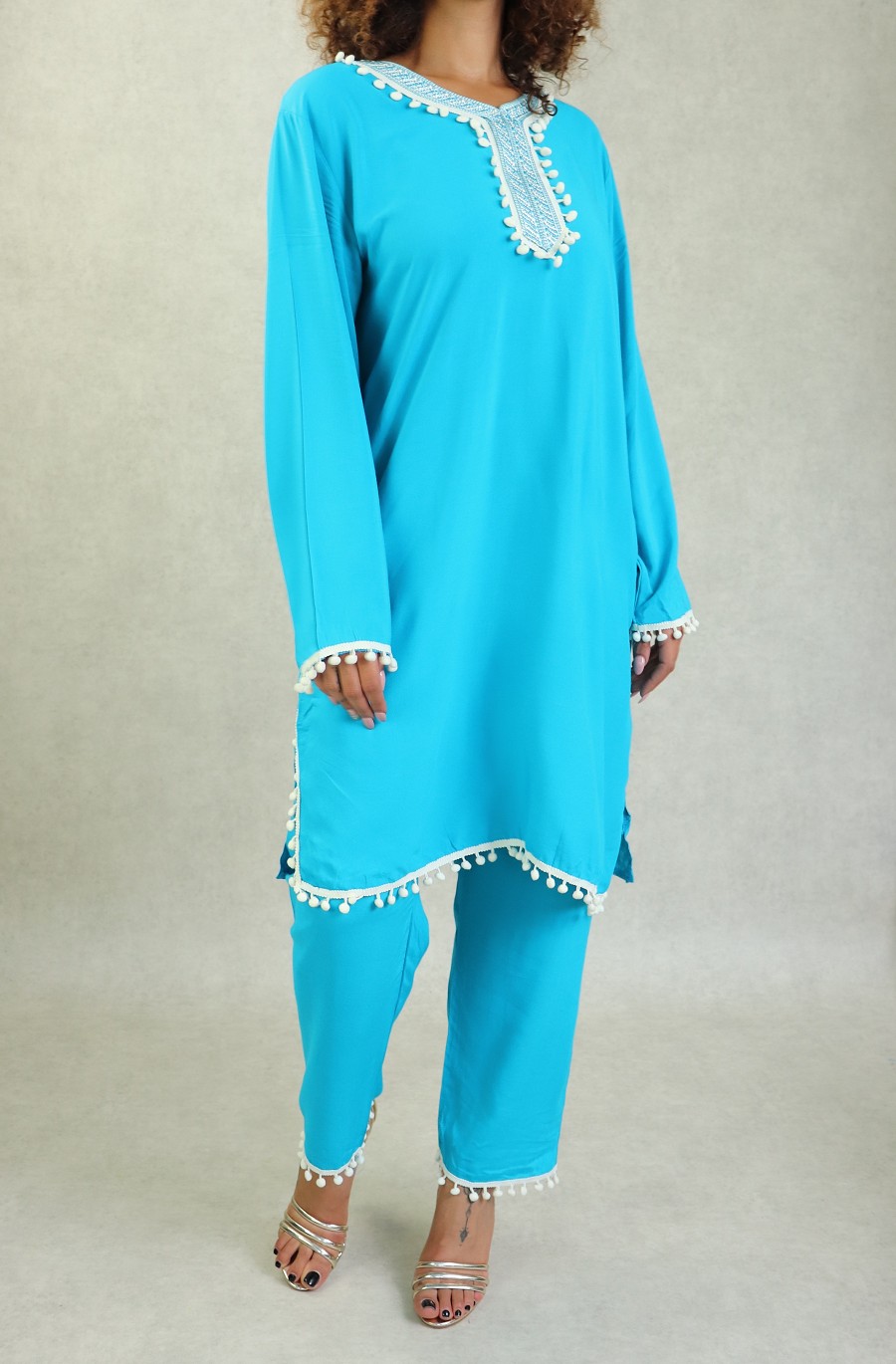 Ensemble deux pièces tunique pantalon style Jabador femme - Couleur Bleu turquoise Vetement & Accessoire
