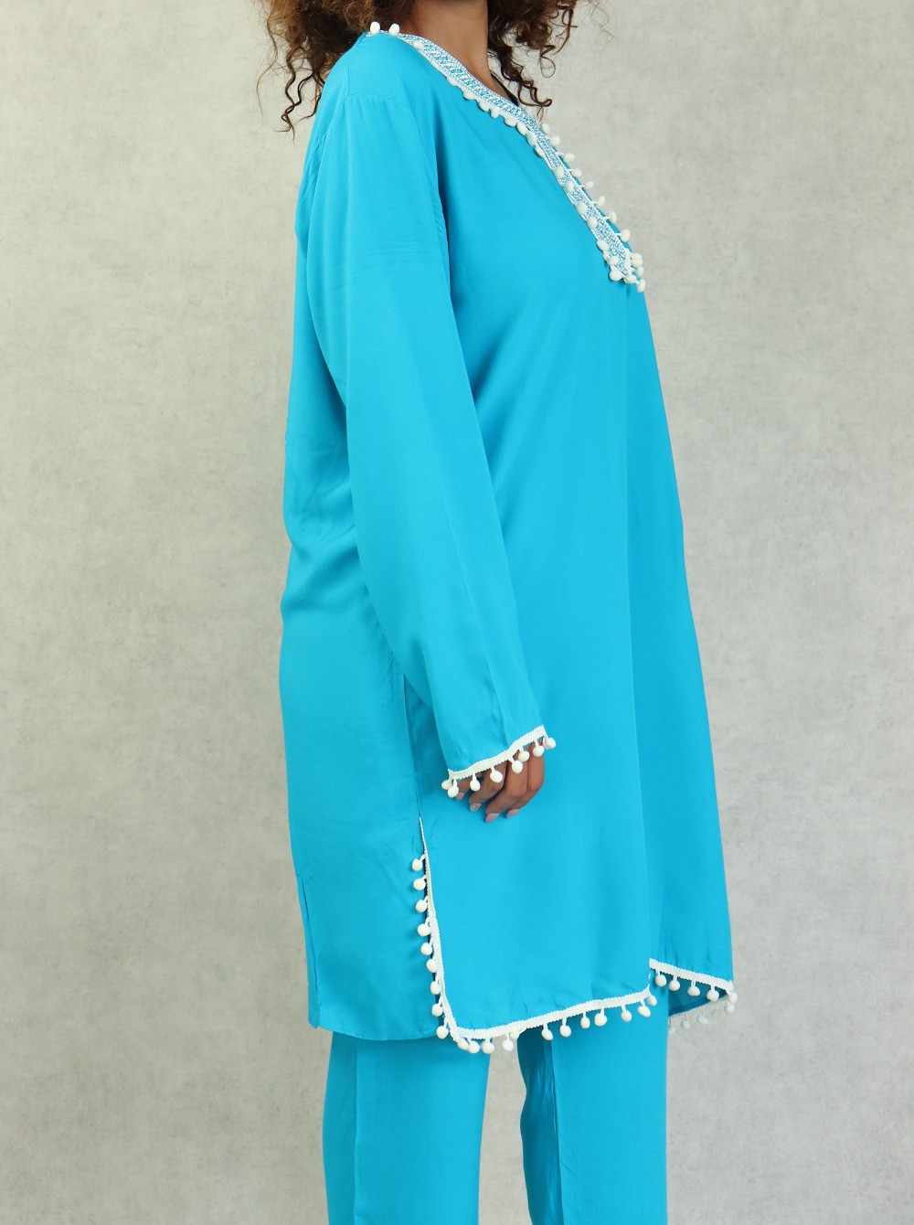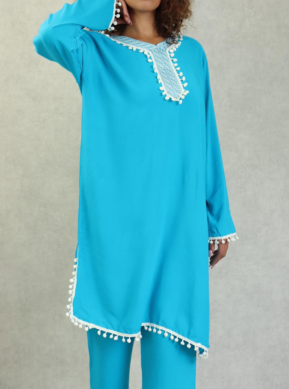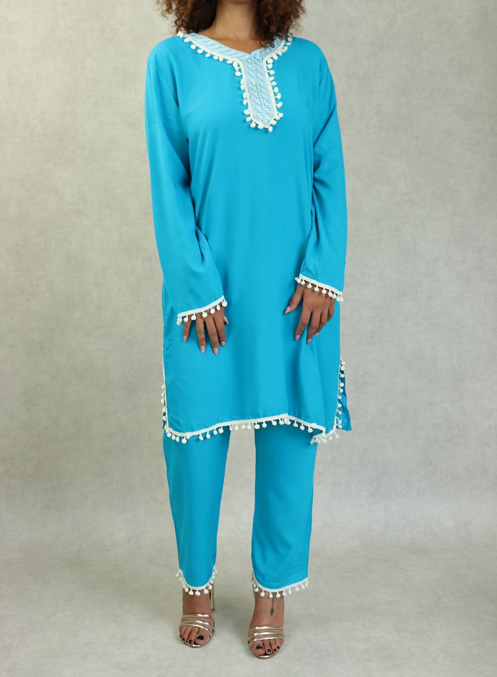 Ensemble deux pièces tunique pantalon style Jabador femme - Couleur Bleu turquoise Vetement & Accessoire