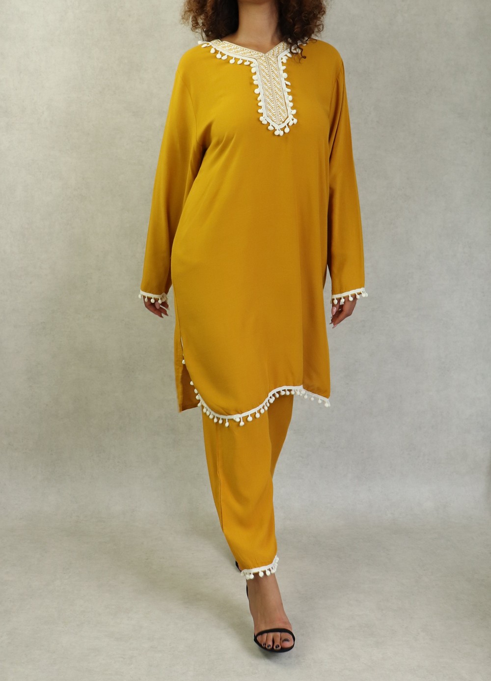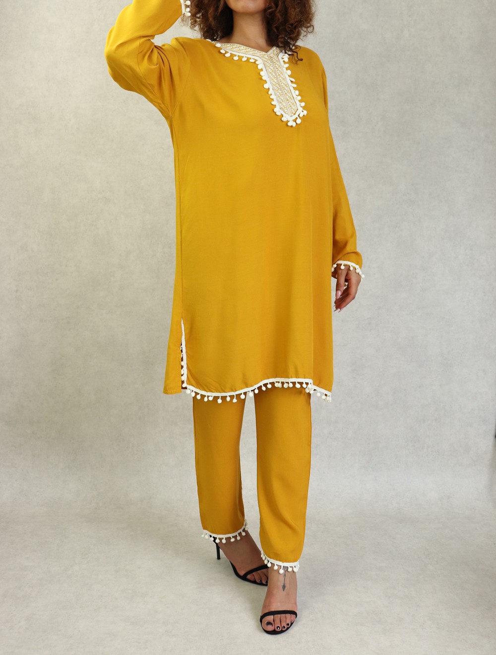 Ensemble deux pièces tunique pantalon style Jabador femme - Couleur Jaune moutarde Vetement & Accessoire