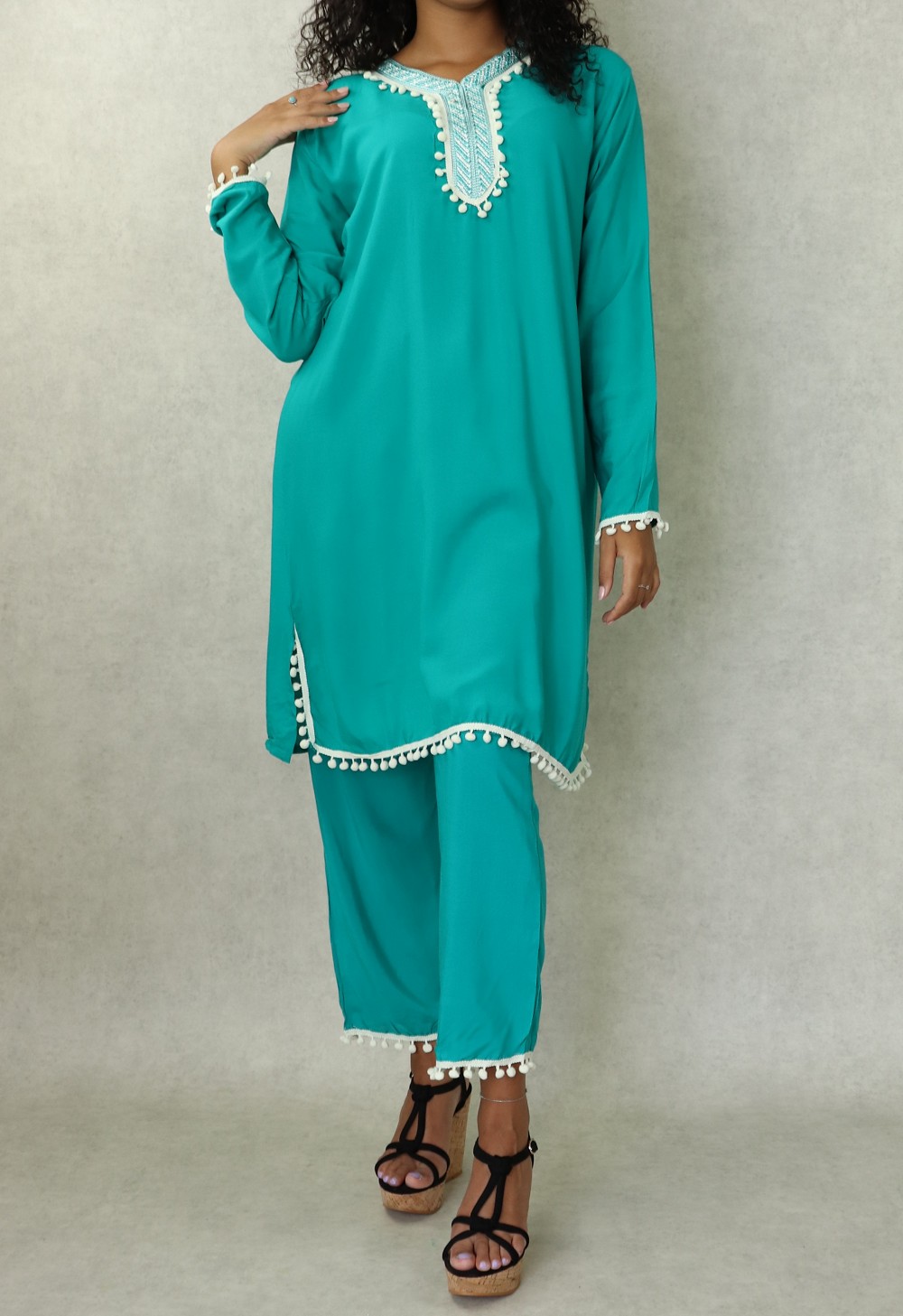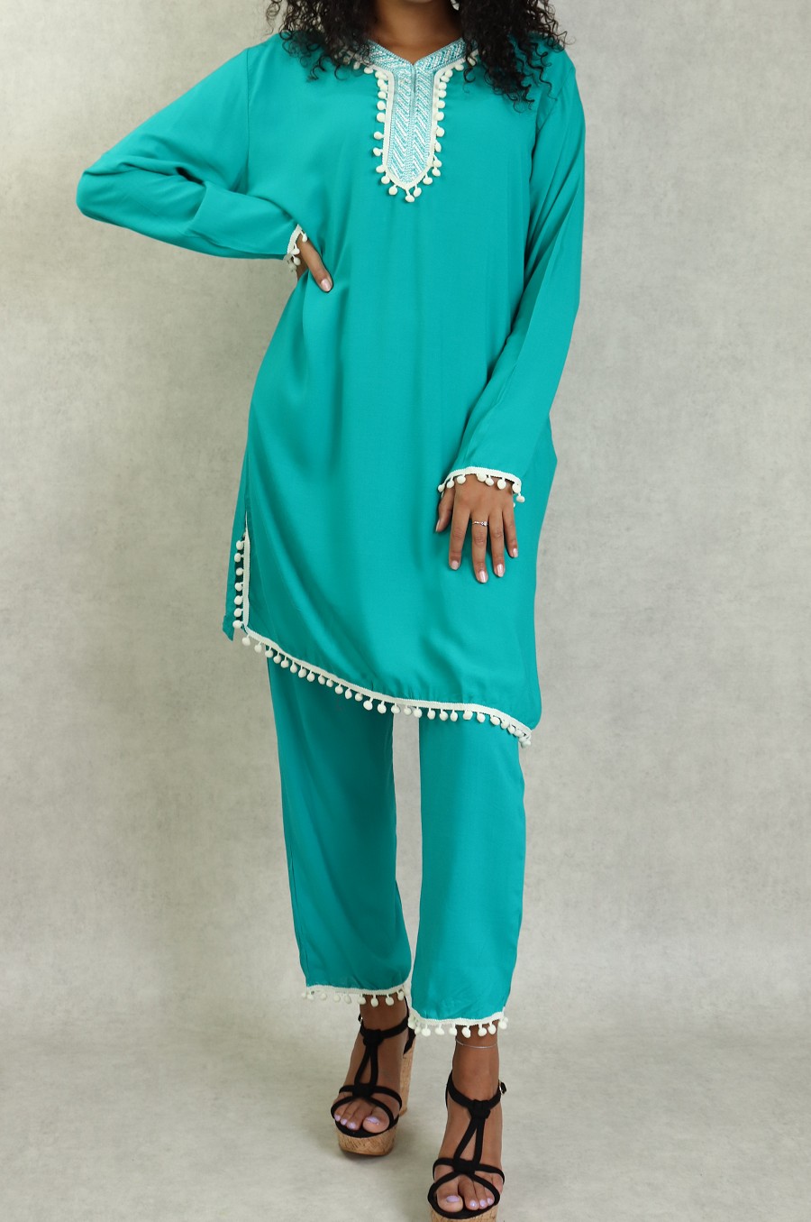 Ensemble deux pièces tunique pantalon style Jabador femme - Couleur Vert émeraude Vetement & Accessoire