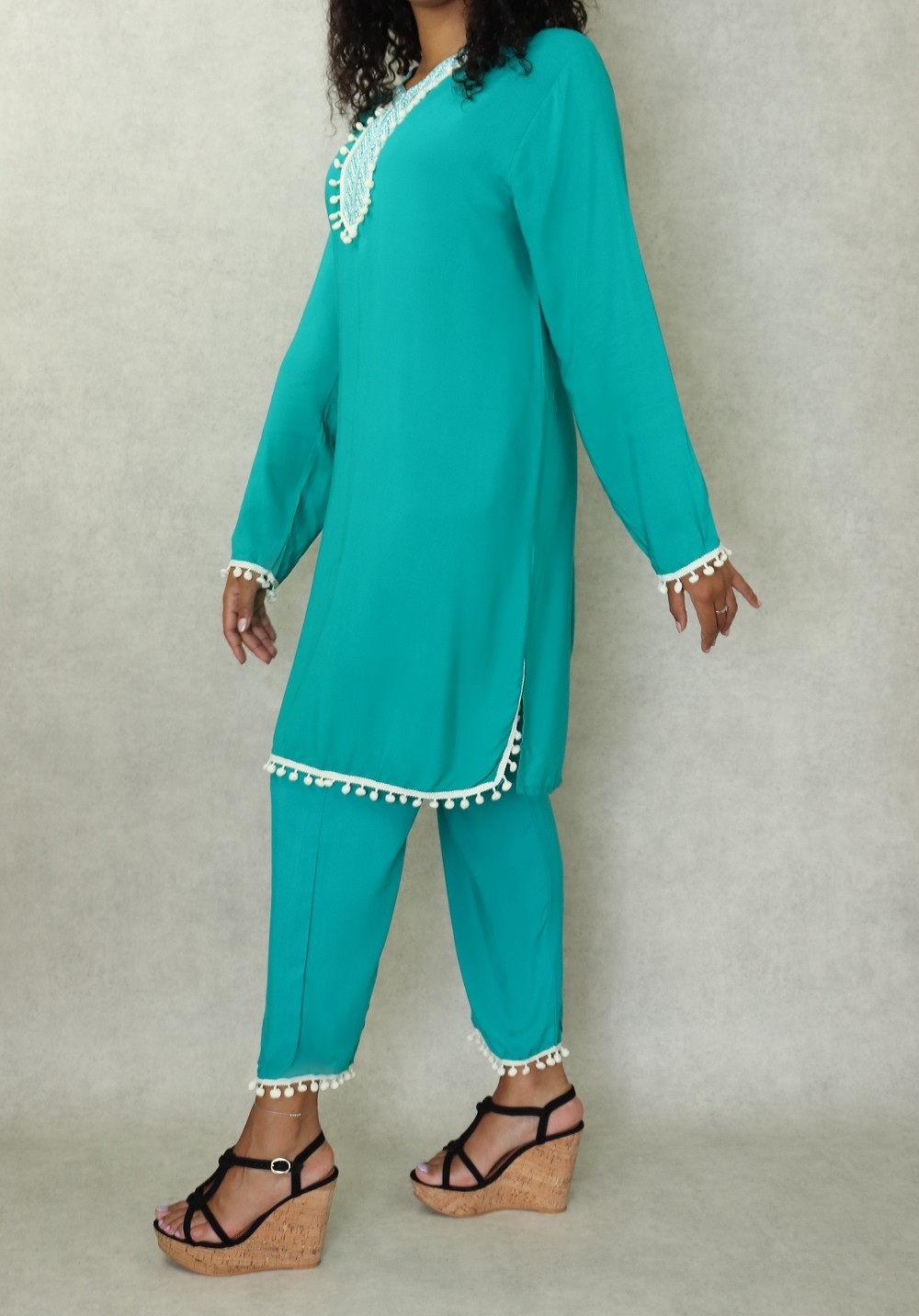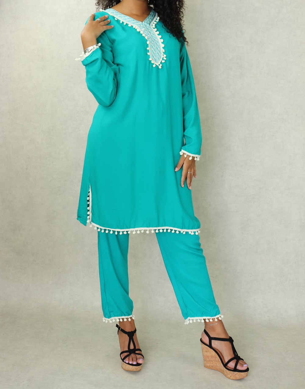 Ensemble deux pièces tunique pantalon style Jabador femme - Couleur Bleu turquoise