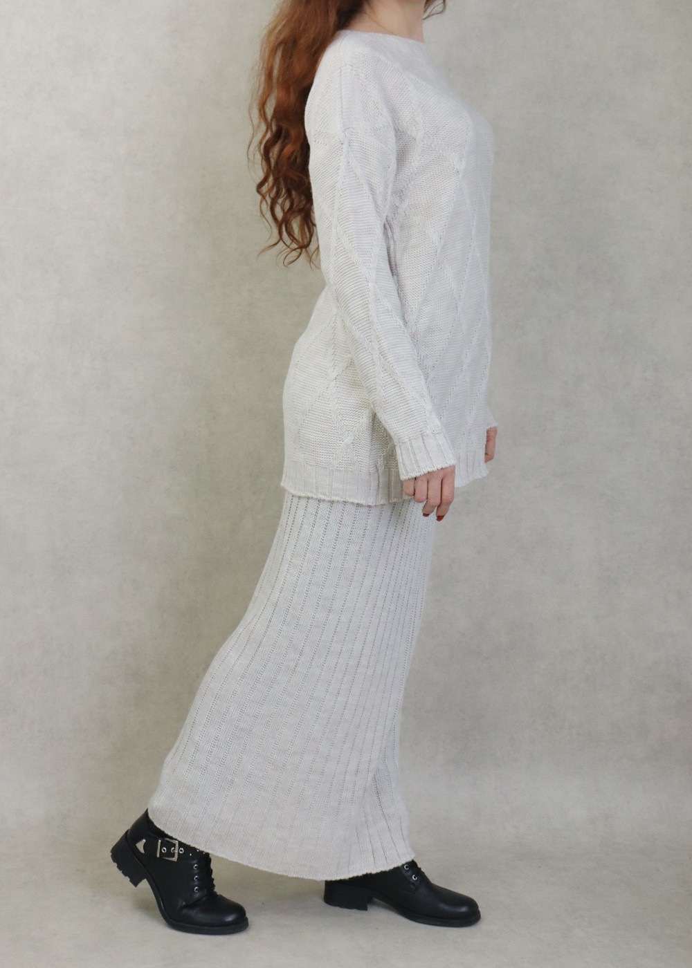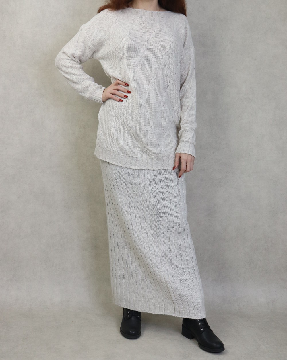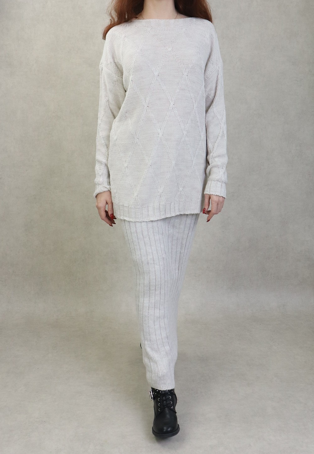 Ensemble en maille deux pièces tunique et jupe pour femme (Saison Automne-Hiver) - Couleur Crème Vetement & Accessoire