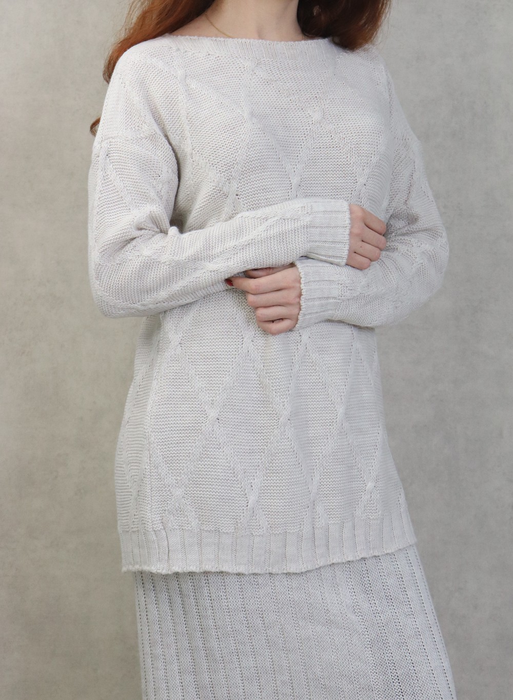 Ensemble en maille deux pieces tunique et jupe pour femme (Saison Automne-Hiver) - Couleur Creme