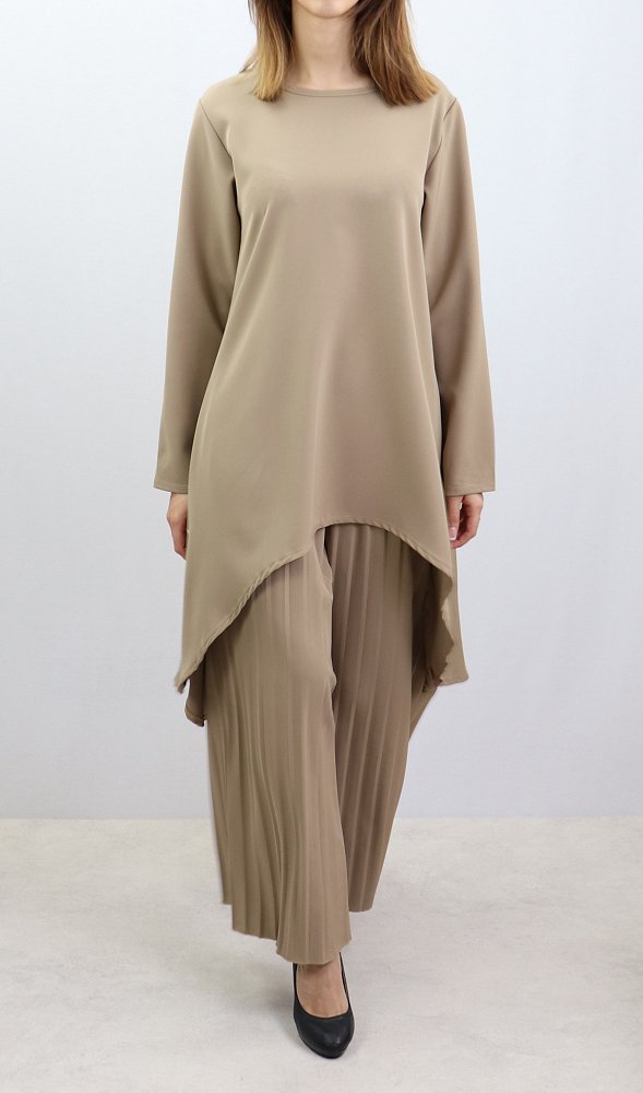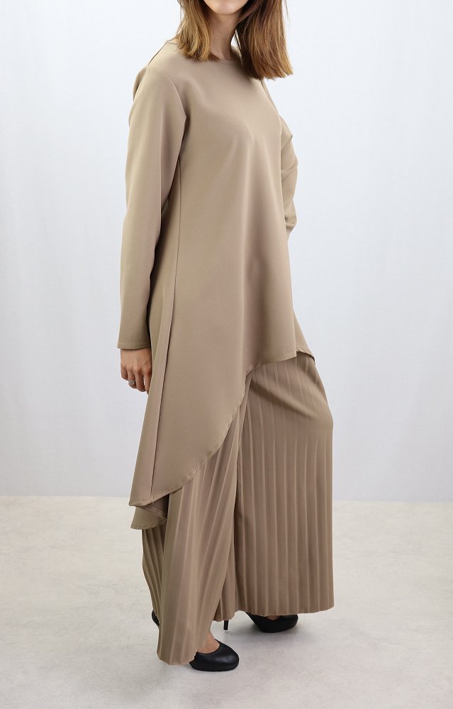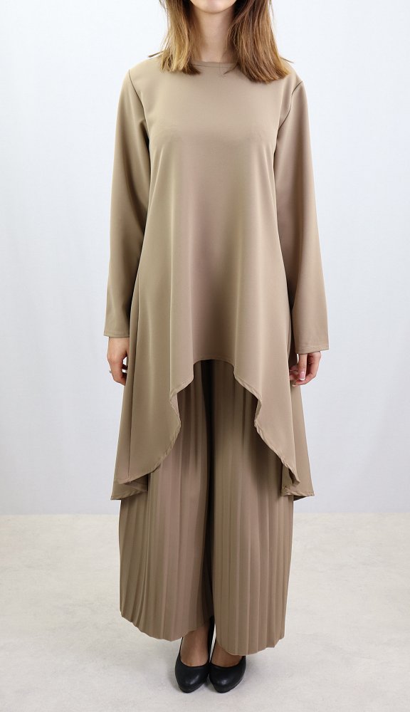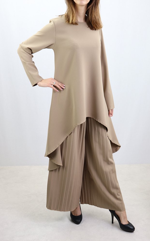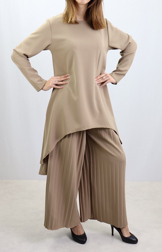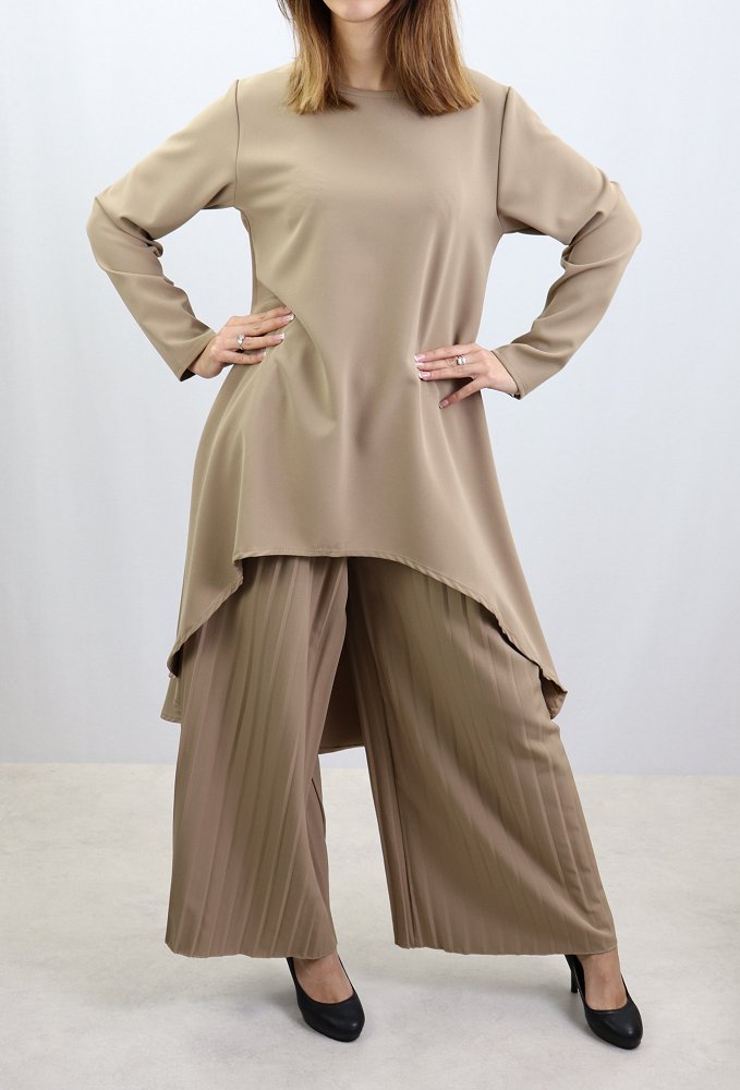 Ensemble femme : Tunique et Pantalon Palazzo plissé - Couleur Marron clair - Marque Amelis Paris Vetement & Accessoire