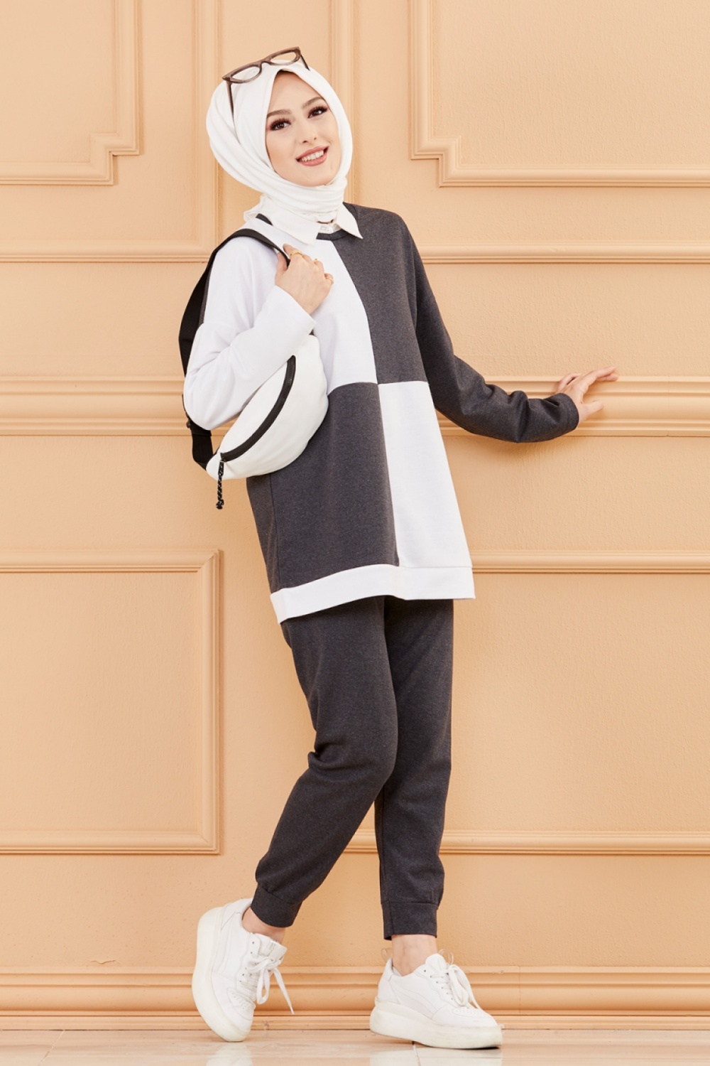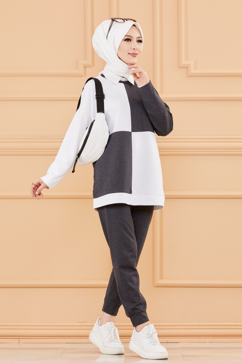Ensemble femme bicolore (Vetement hijab sport moderne) - Couleur blanc et anthracite