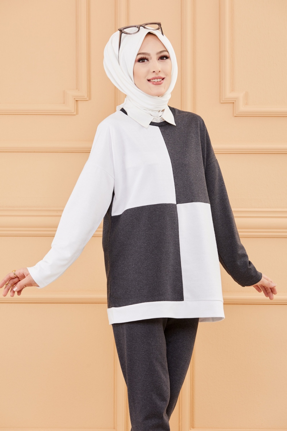 Ensemble femme bicolore (Vetement hijab sport moderne) - Couleur blanc et anthracite Vetement & Accessoire