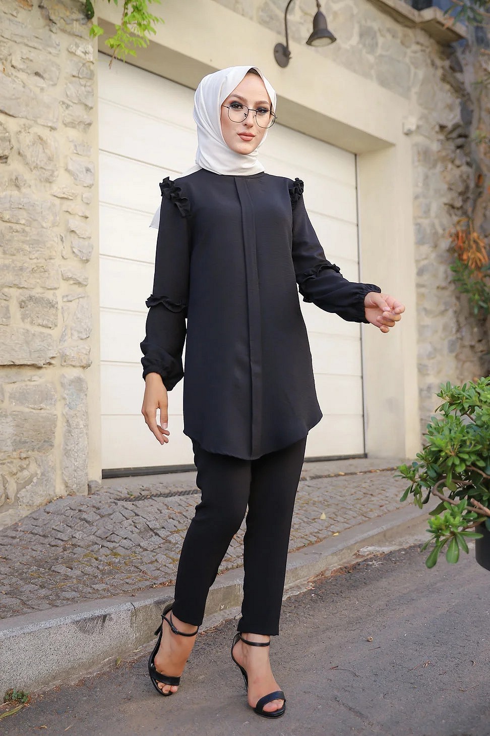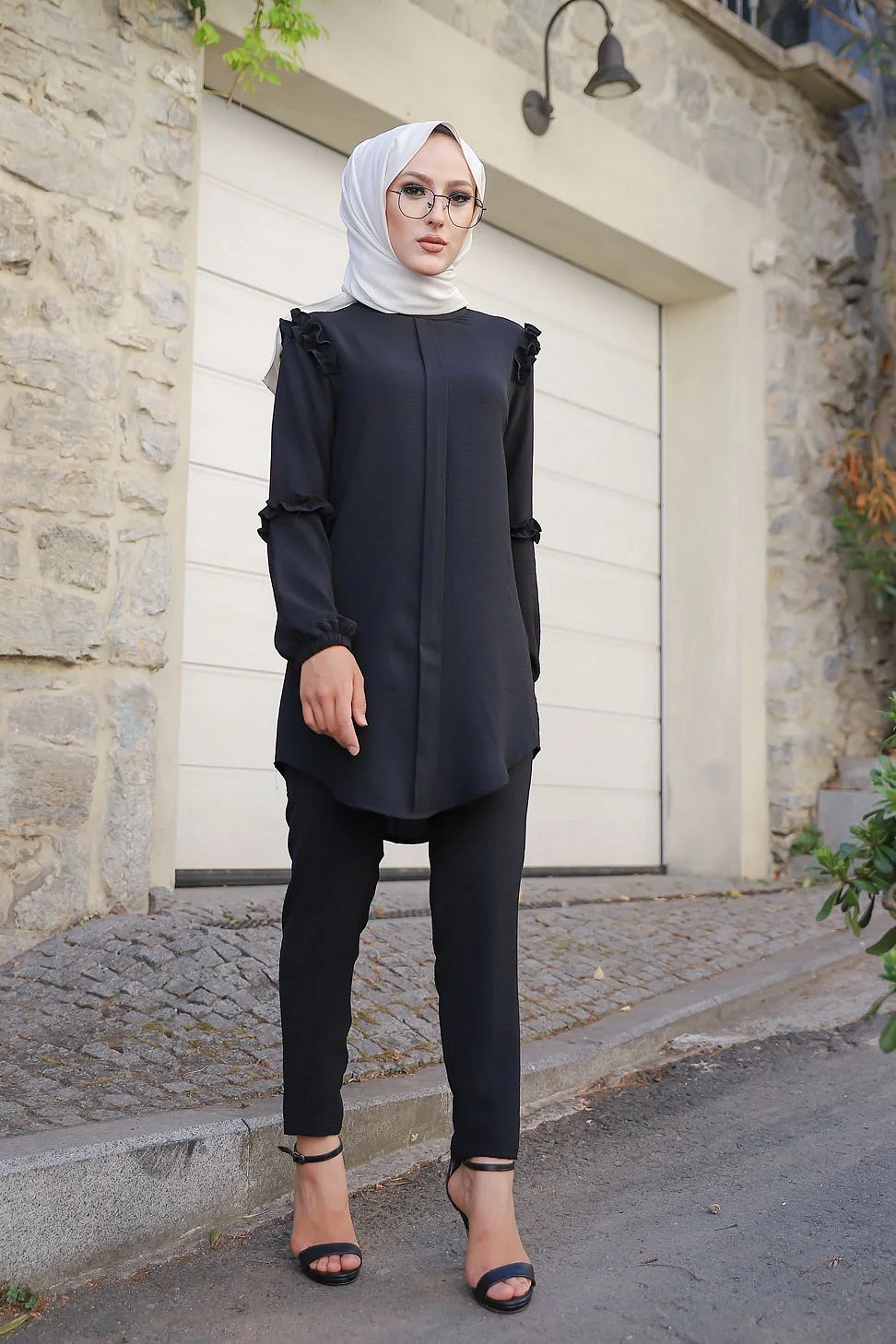 Ensemble femme tunique ample et pantalon (Vetement Modest Fashion) - Couleur noir Vetement & Accessoire