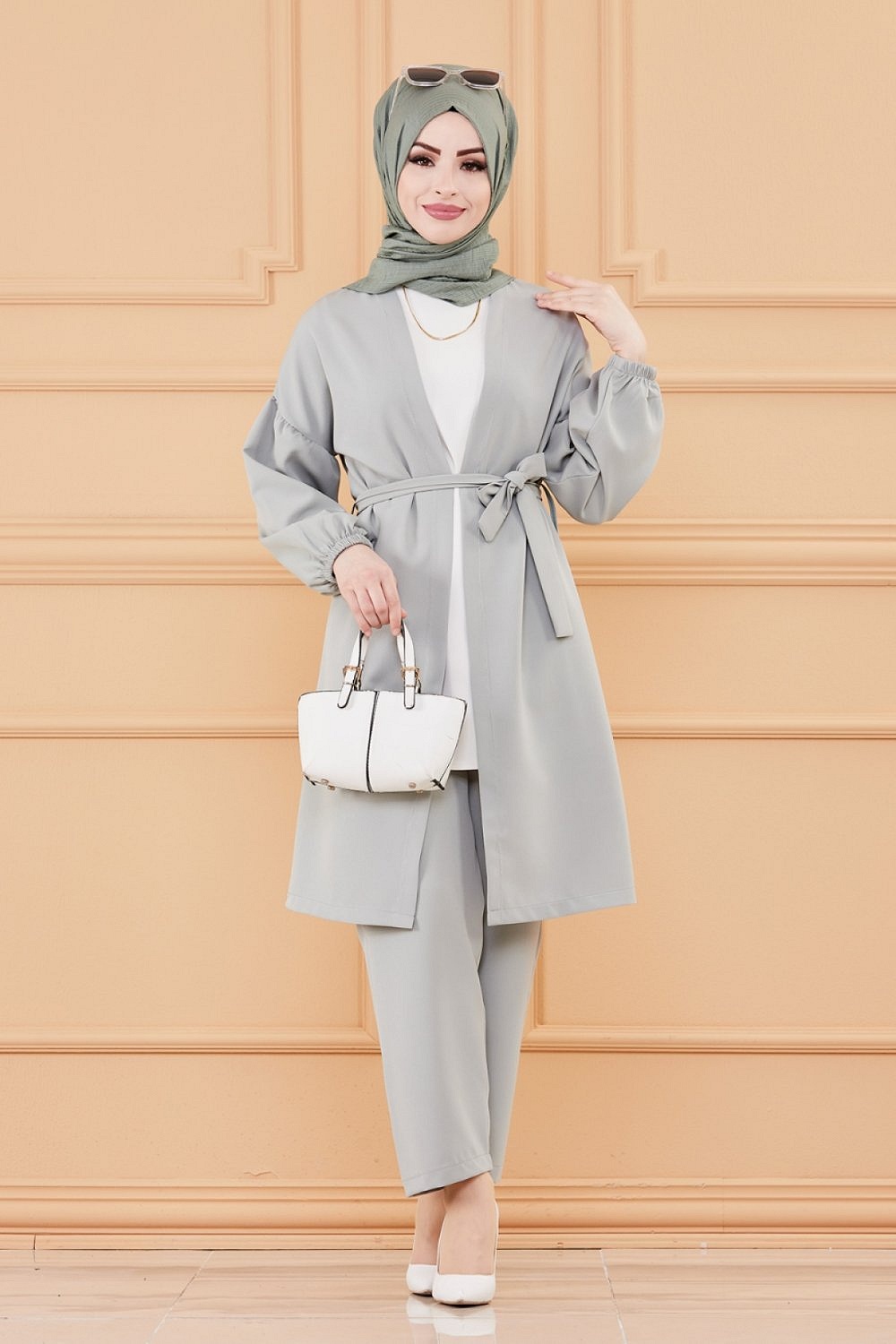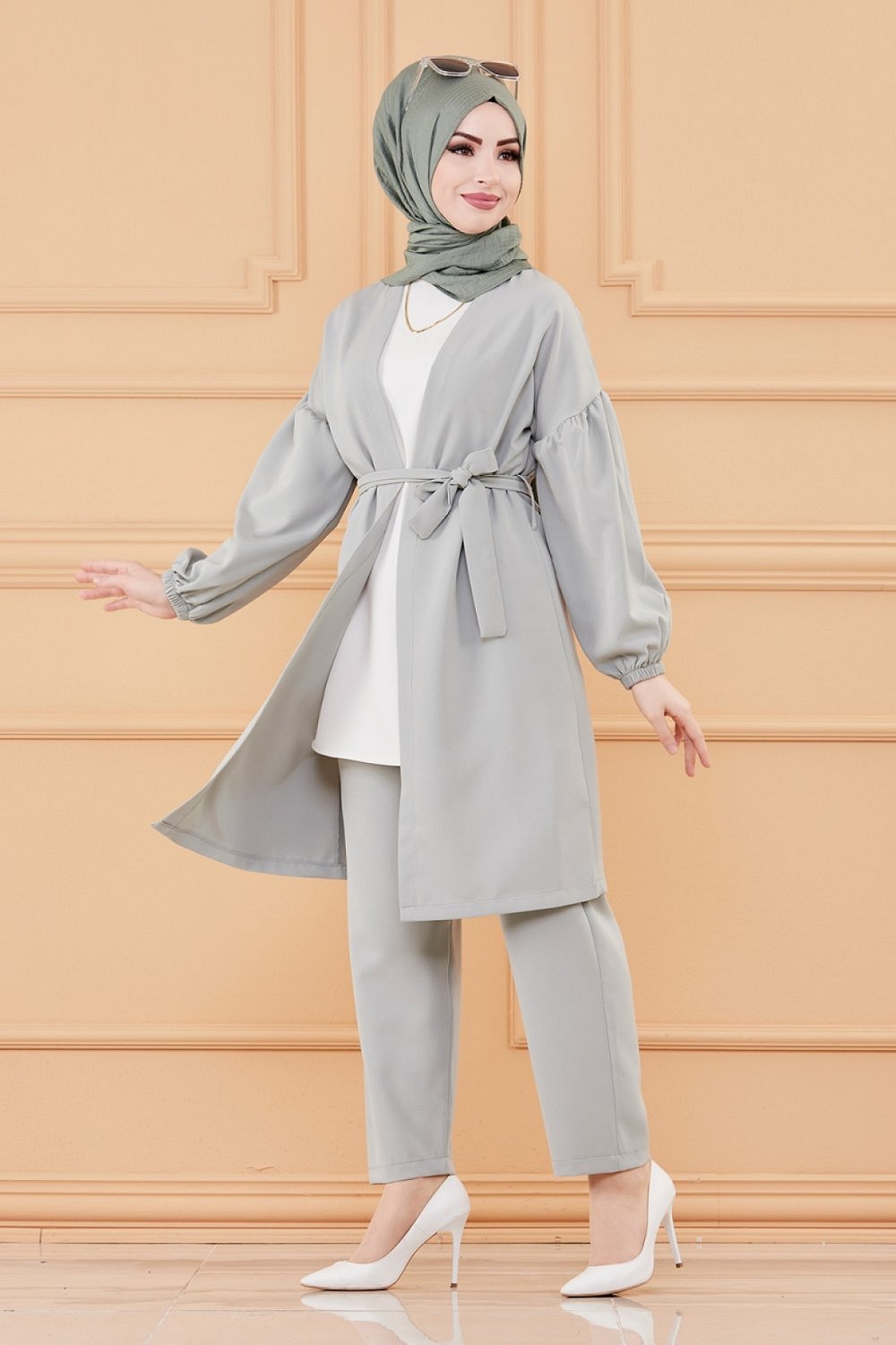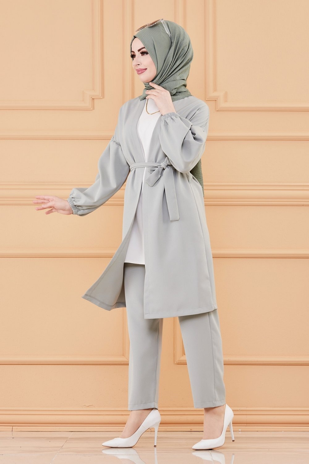 Ensemble habillé pour femme : Veste et pantalon (Tenue hijab) - Couleur menthe Vetement & Accessoire