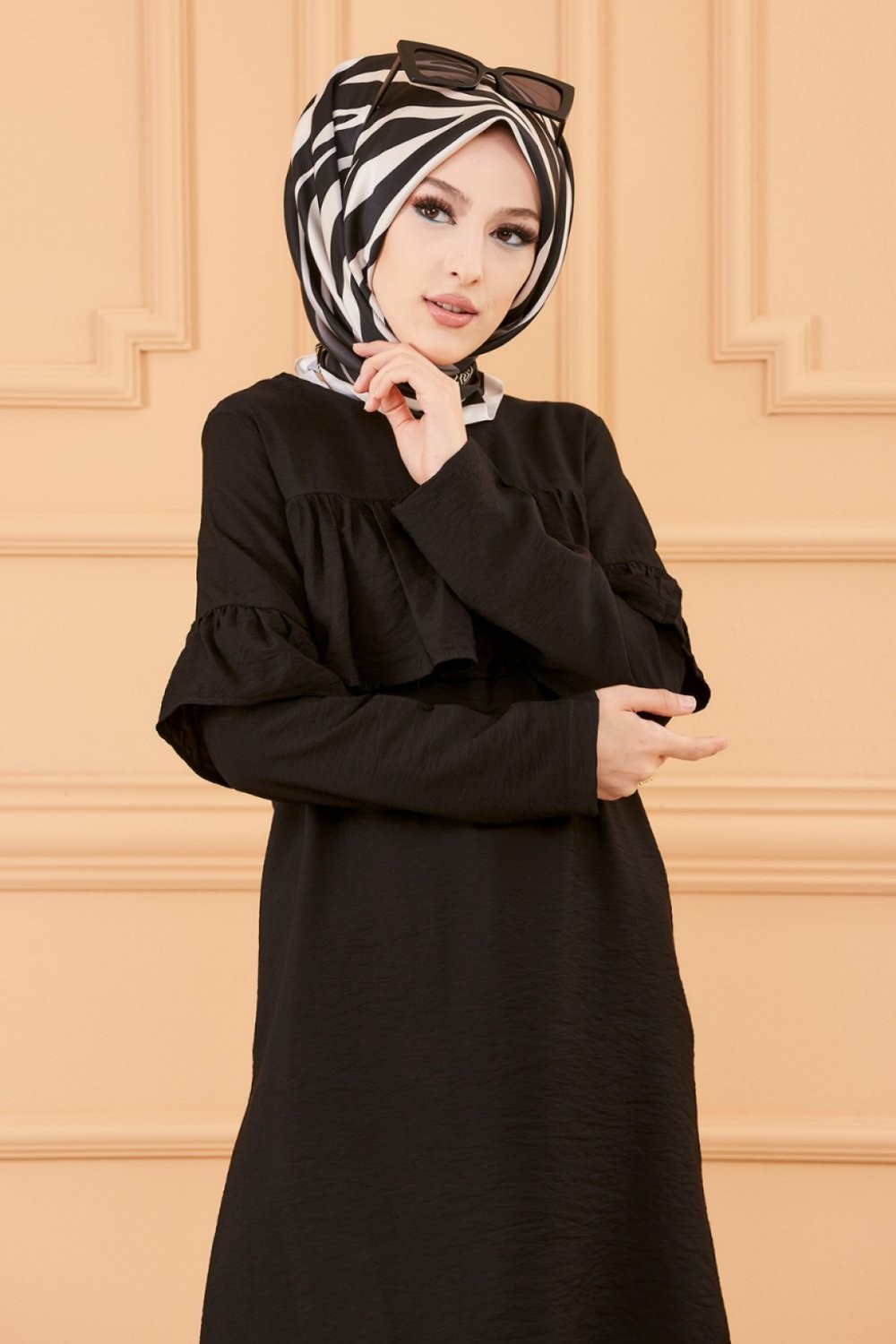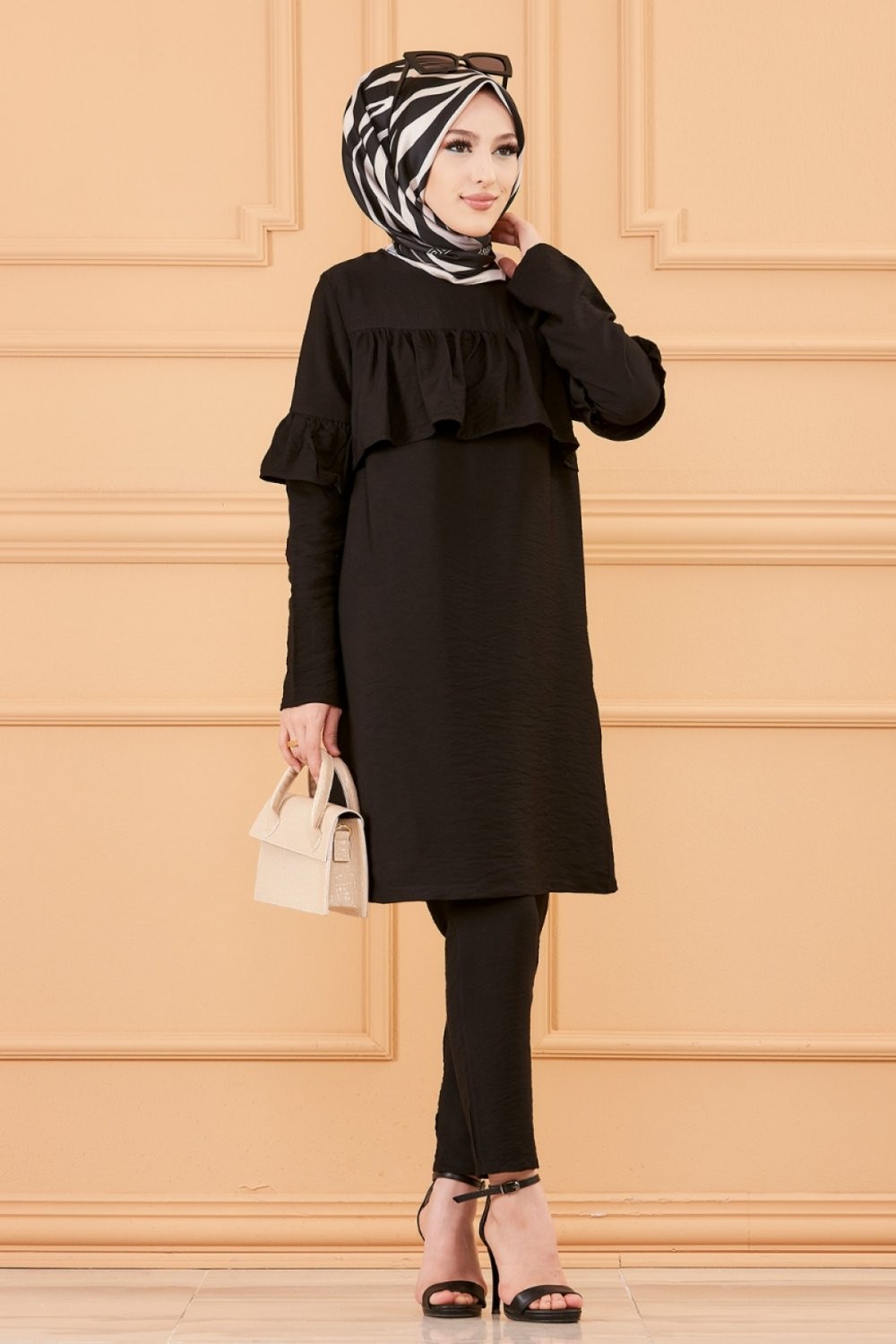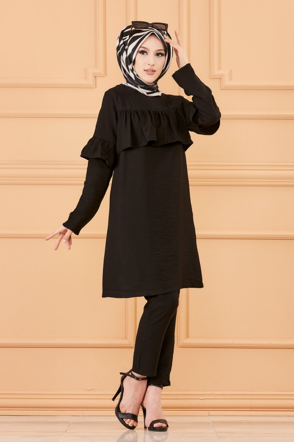 Ensemble habille tunique et pantalon pour femme (Boutique Pret-a-porter musulman) - Couleur noir