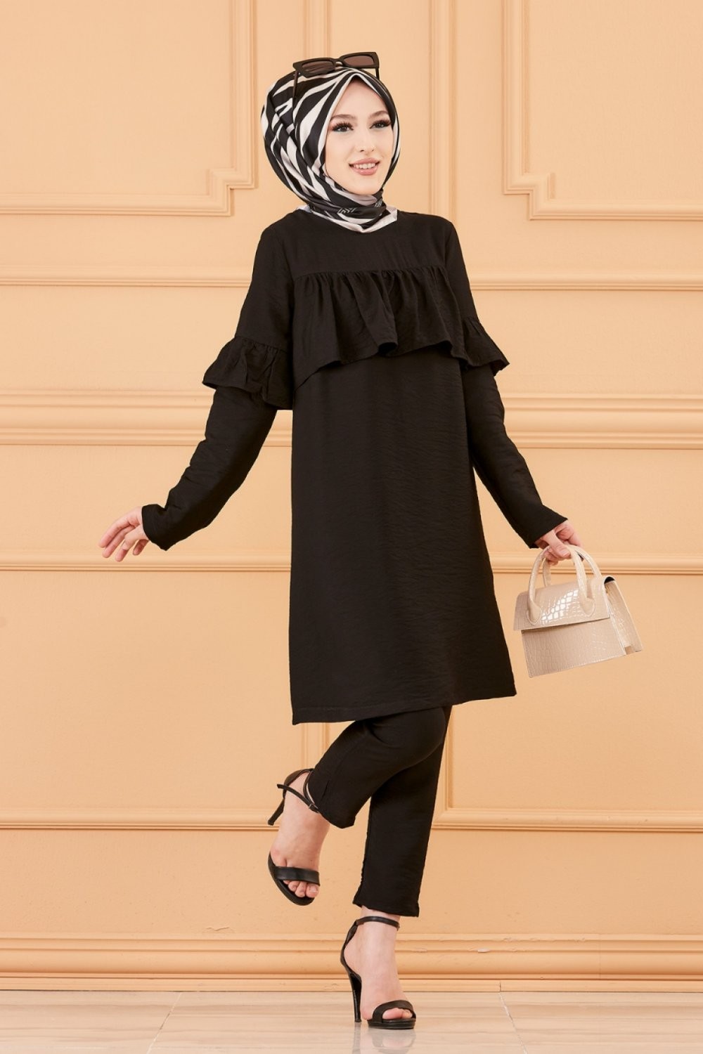 Ensemble habillé tunique et pantalon pour femme (Boutique Prêt-à-porter musulman) - Couleur noir Vetement & Accessoire