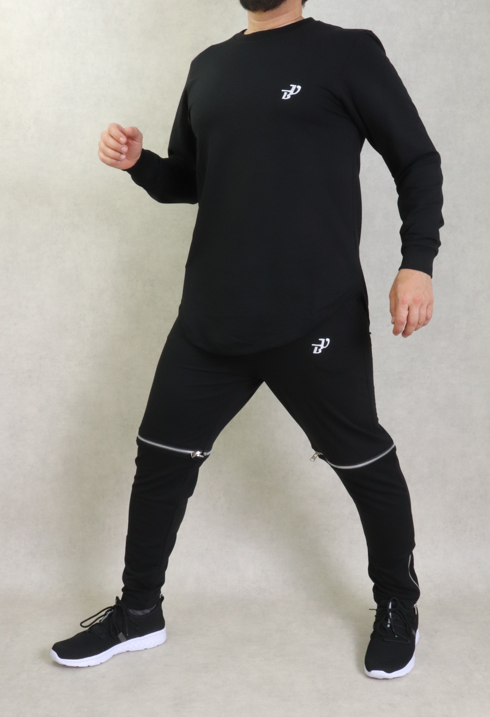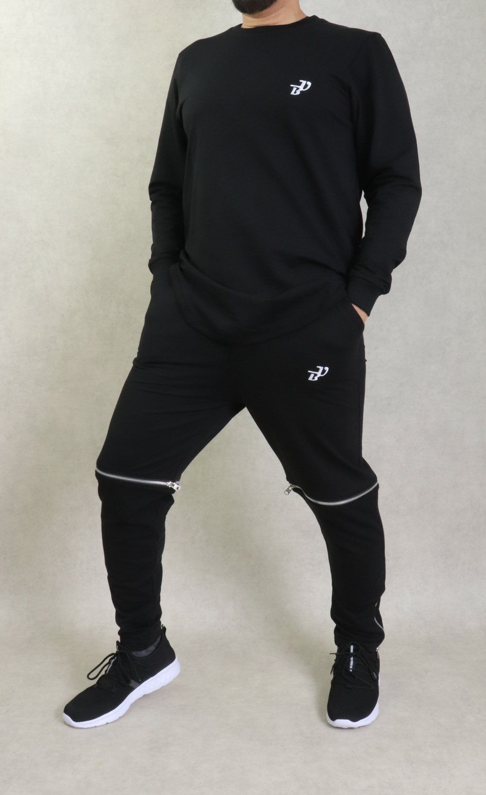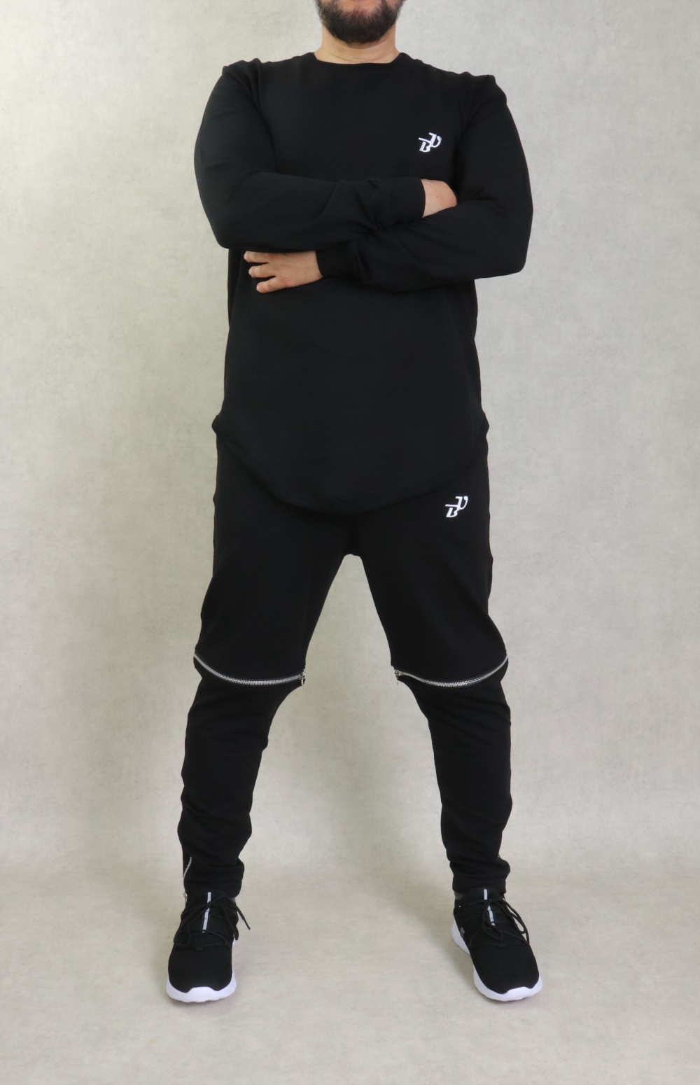 Ensemble constitué d'un sweat manches longes, tissu léger, coupe incurvée (longline sweatshirt) et de son pantalon modulable transformable en bermuda. Brodés tous deux du logo "Best Ummah".