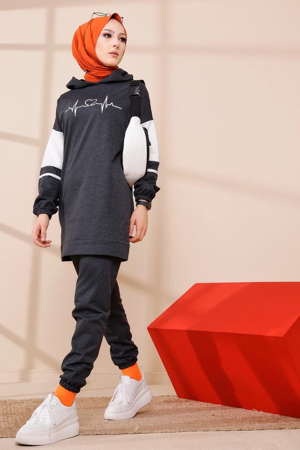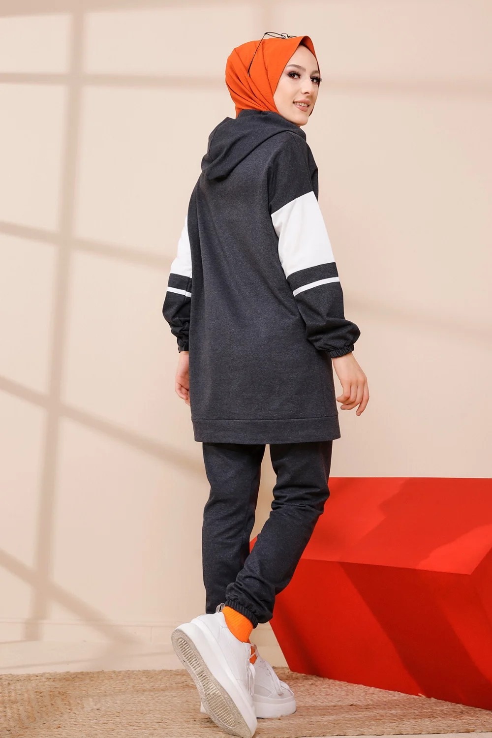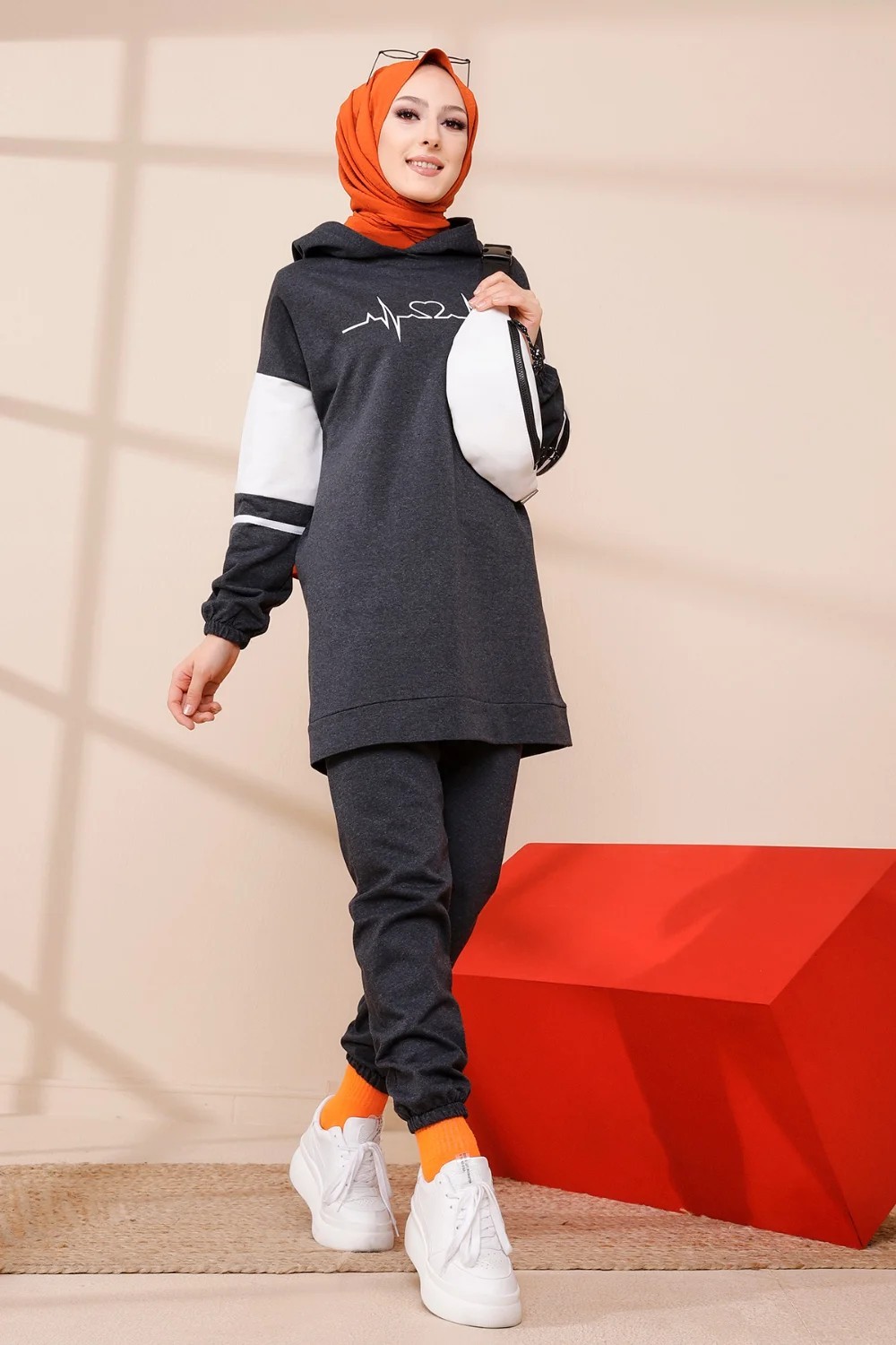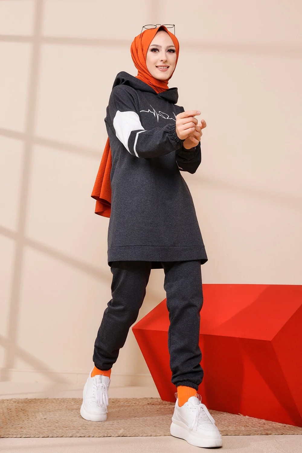 Ensemble moderne pour femme Sweat-shirt a capuche et Pantalon (Tenue musulmane decontractee et sport) - Couleur anthracite
