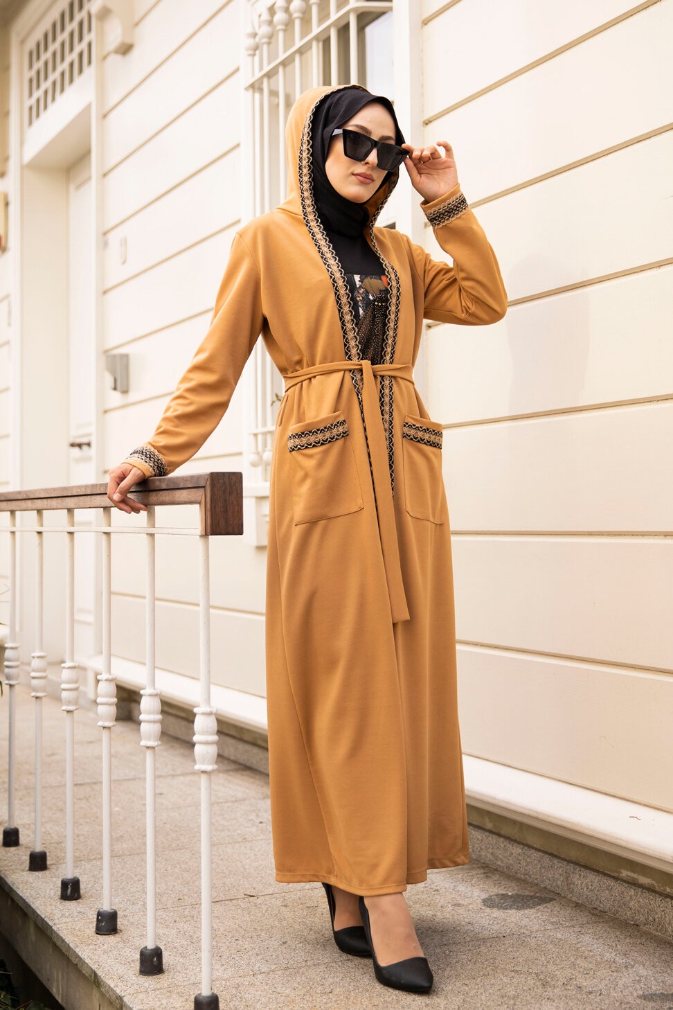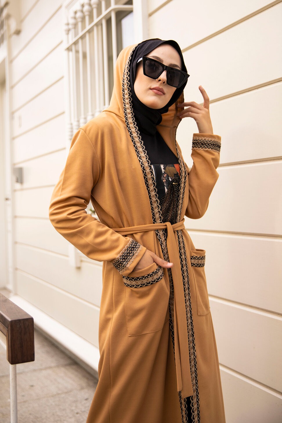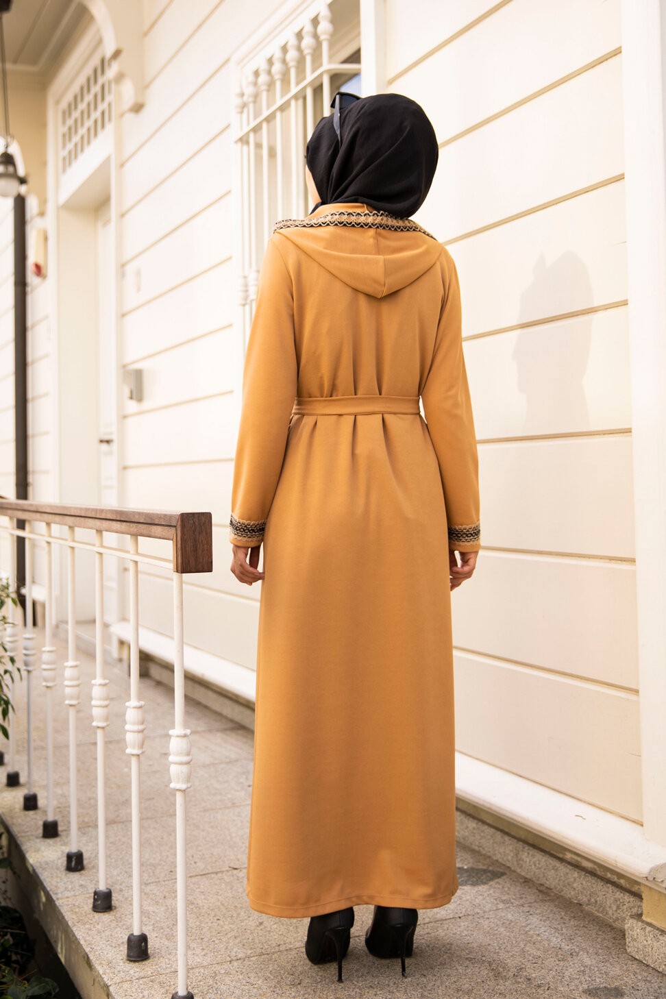 Ensemble constitué d'une robe sans manche et d'un kimono à manches longues et capuche.
