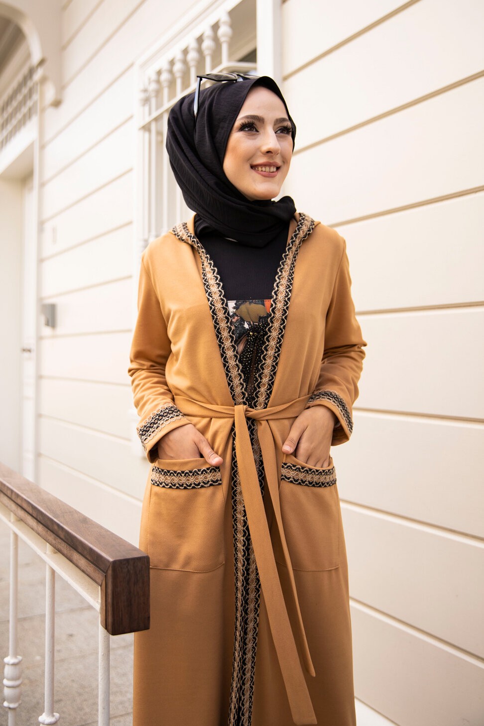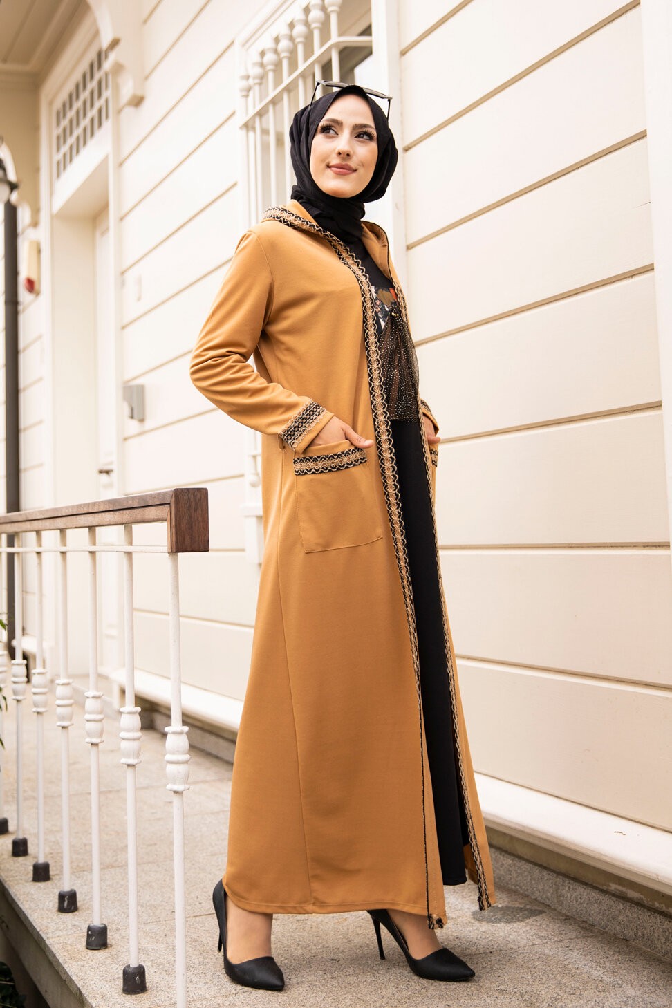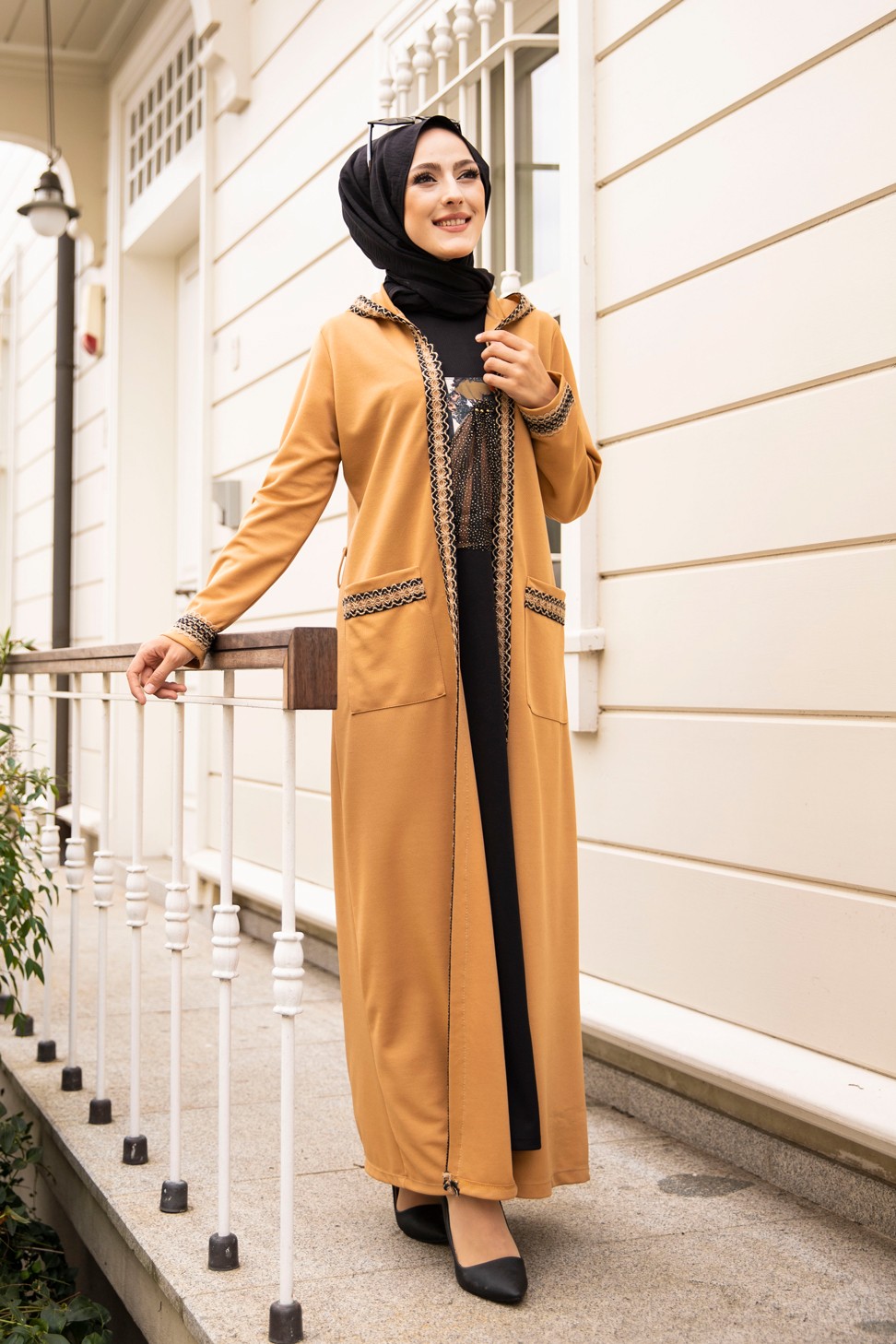 Ensemble constitué d'une robe sans manche et d'un kimono à manches longues et capuche.