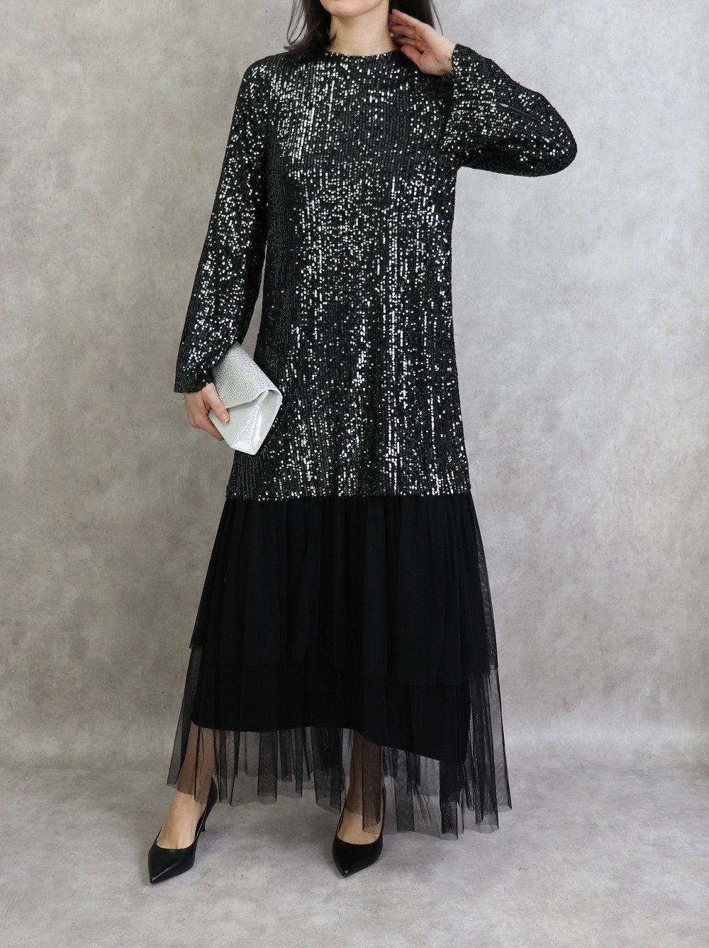 Robe chic en tulle et strass de couleur noir - REF. 31475 (45.00 €)