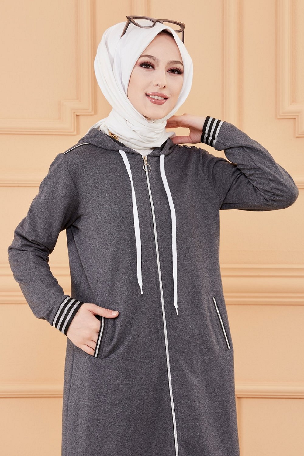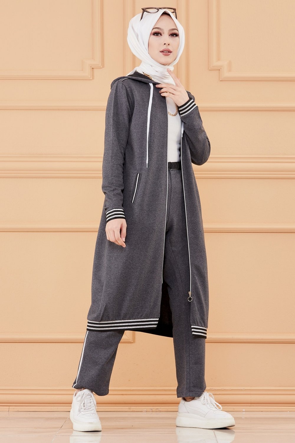 Ensemble sportswear avec longue veste et pantalon (Tenue sport mastour pour femme musulmane) - Couleur anthracite Vetement & Accessoire