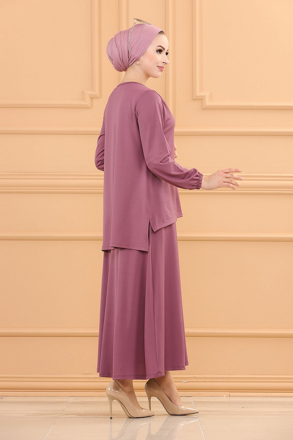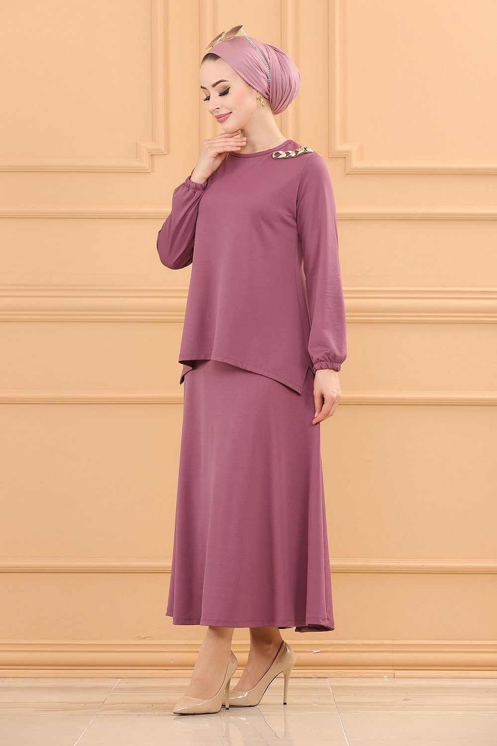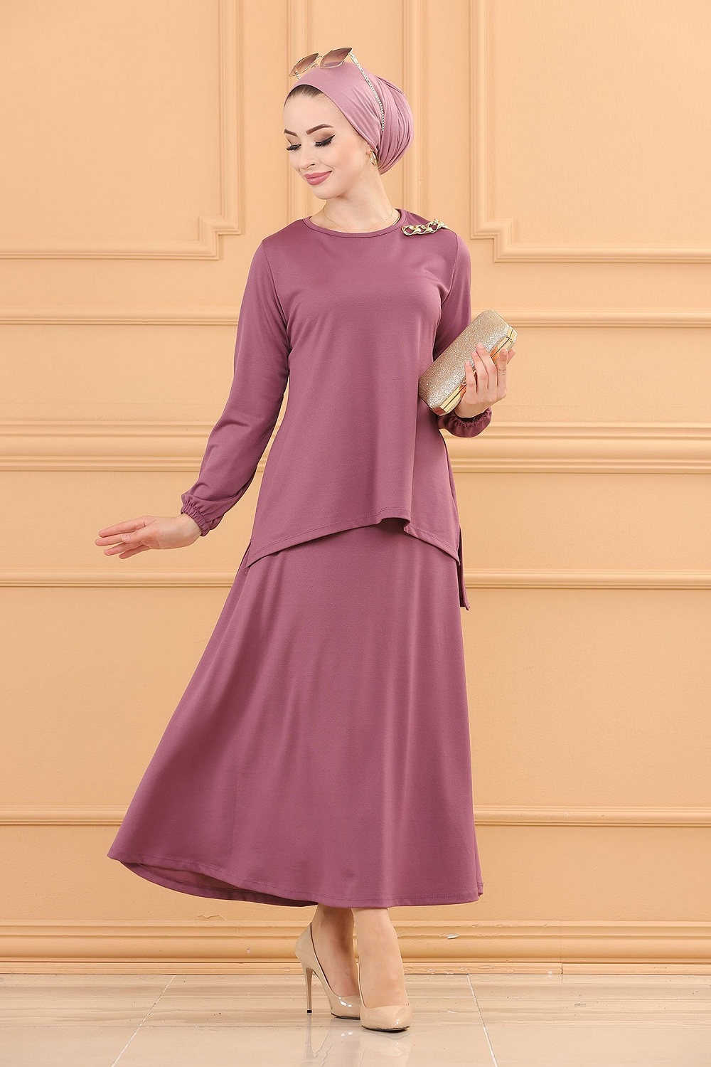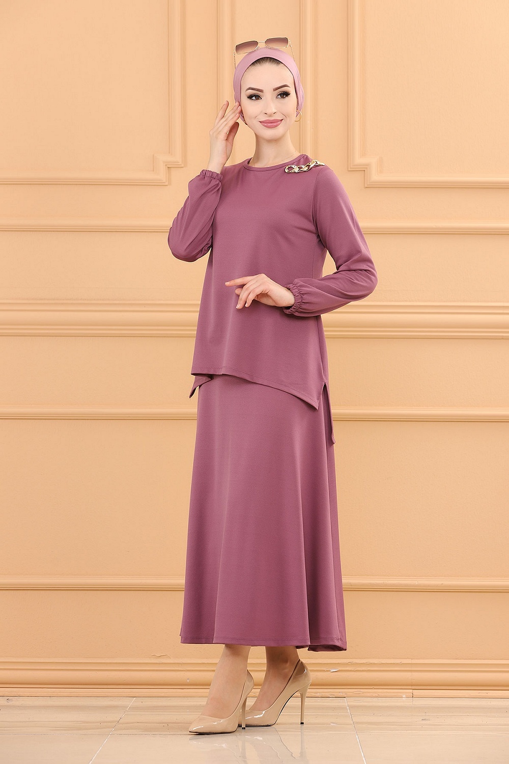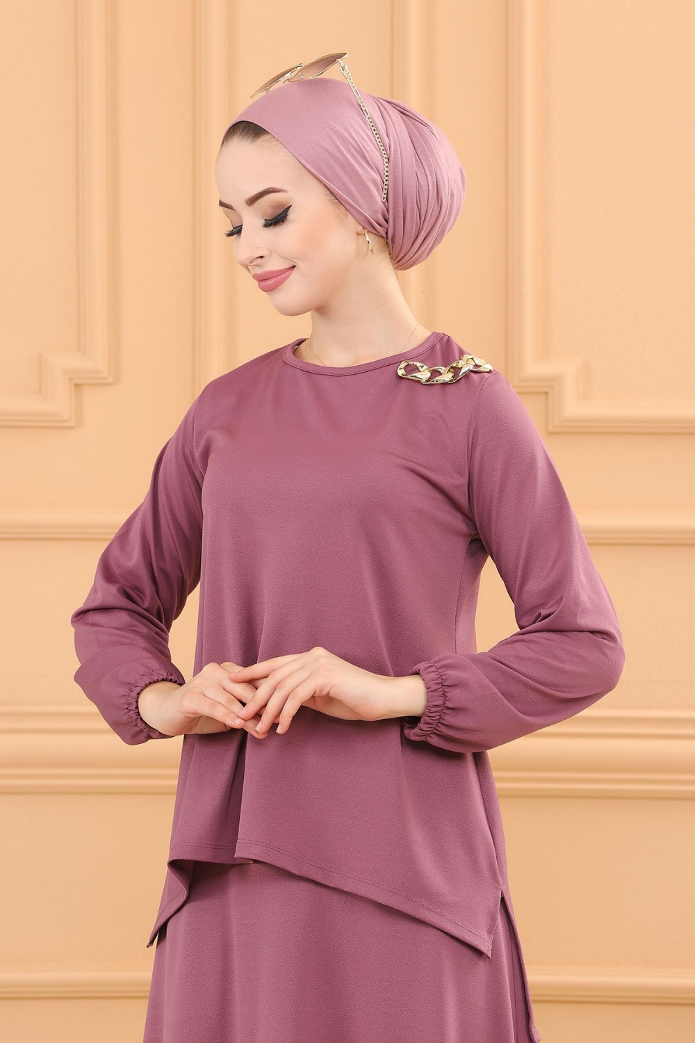 Ensemble style habillé tunique et jupe (Vêtement Hijab chic) - Couleur rose Vetement & Accessoire