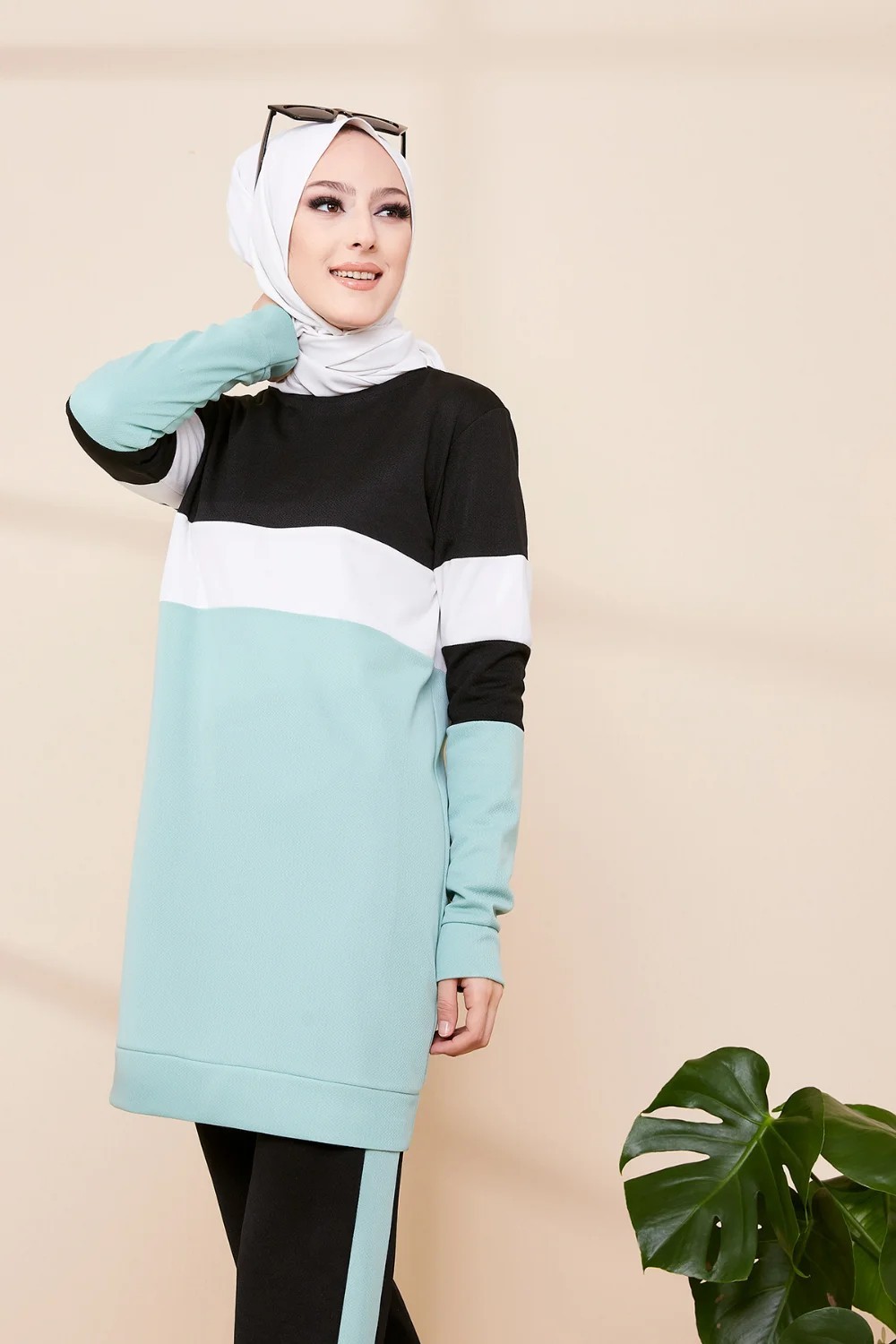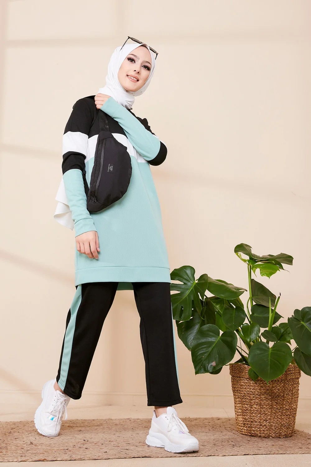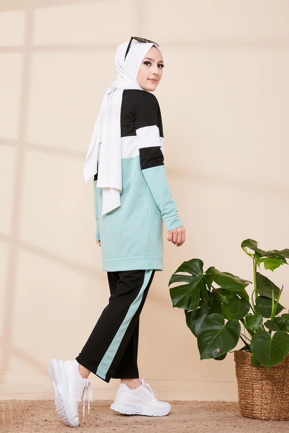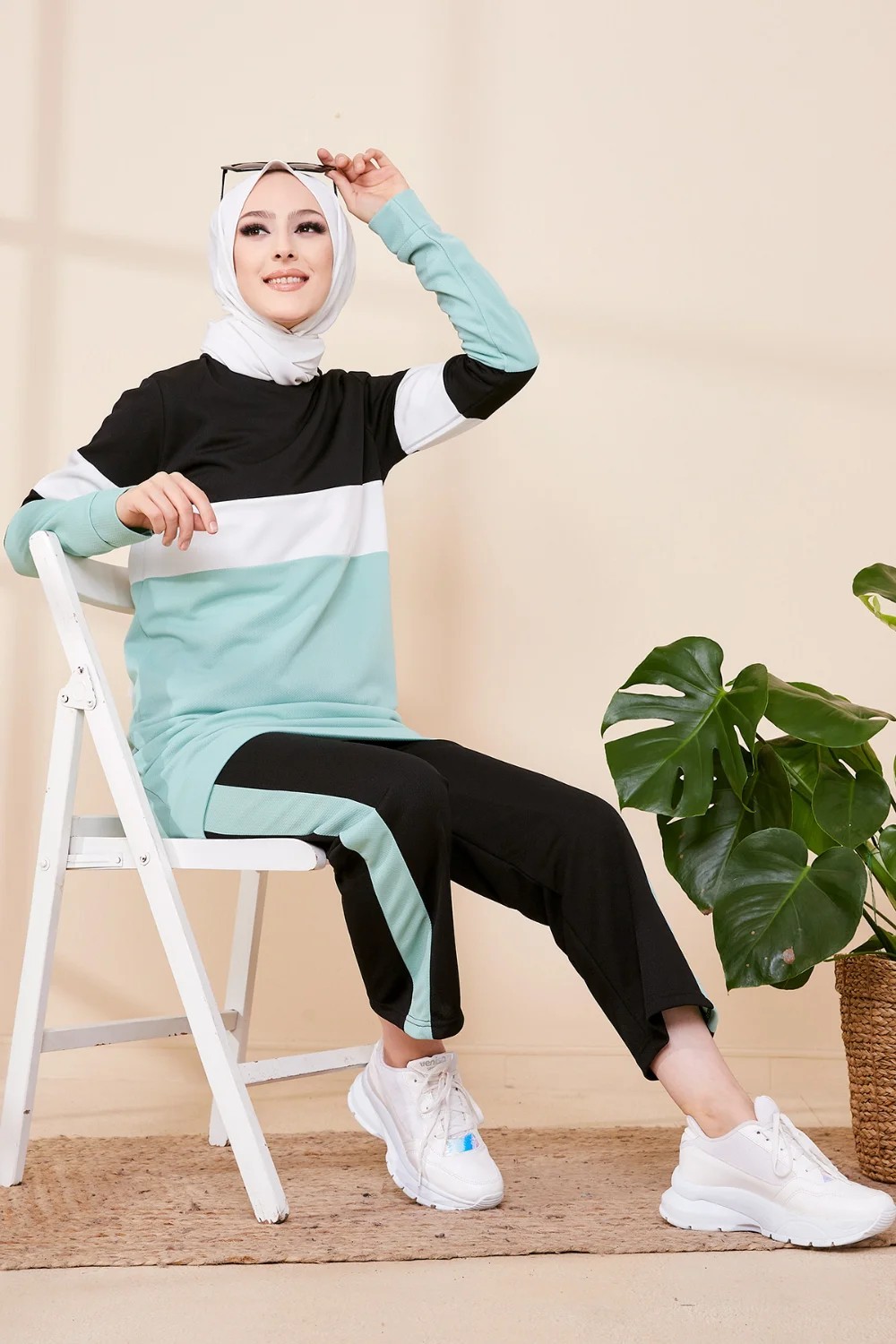 Ensemble survêtement 2 pièces de couleur noir et menthe (Boutique en ligne de Vêtement turque pour femme) Vetement & Accessoire