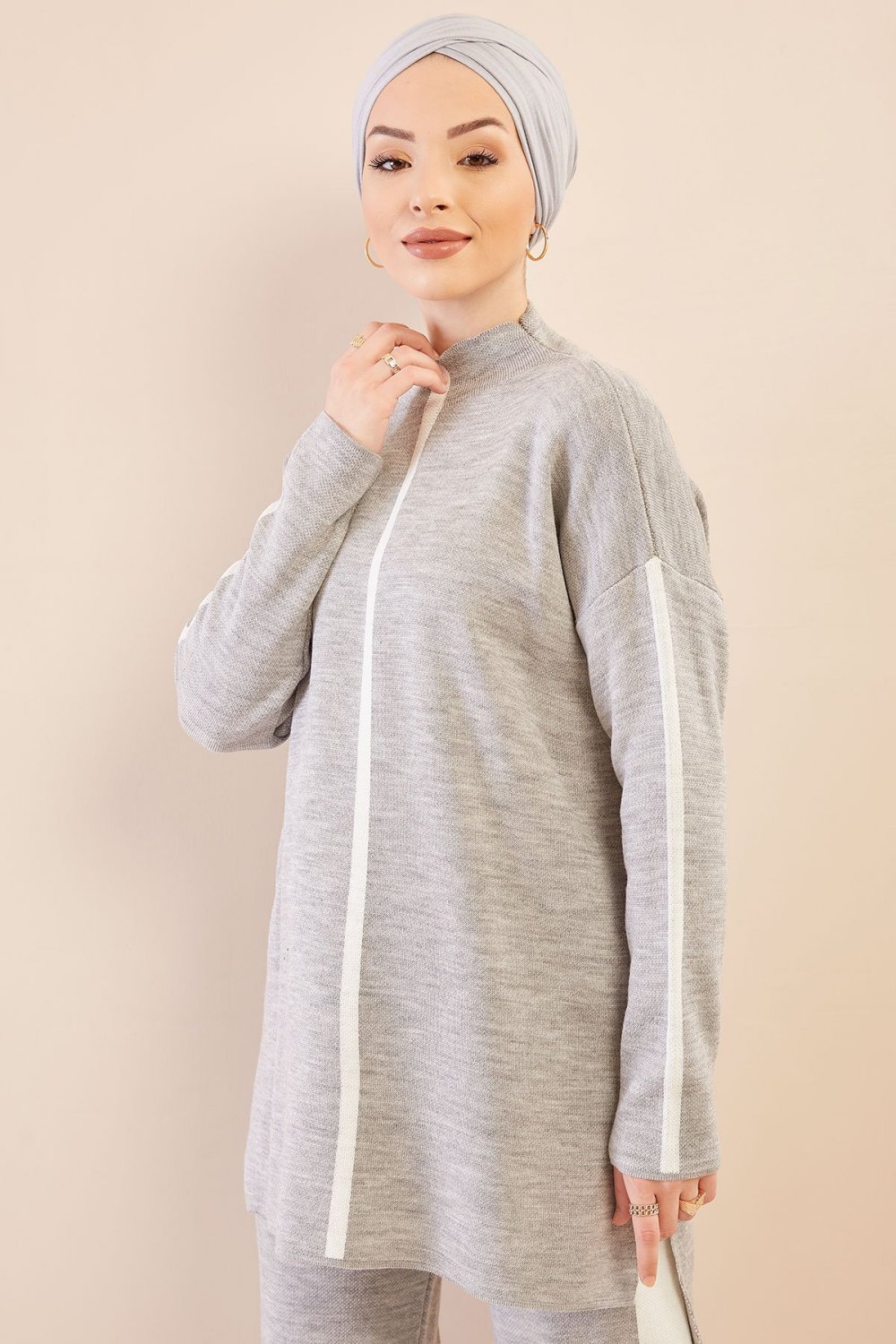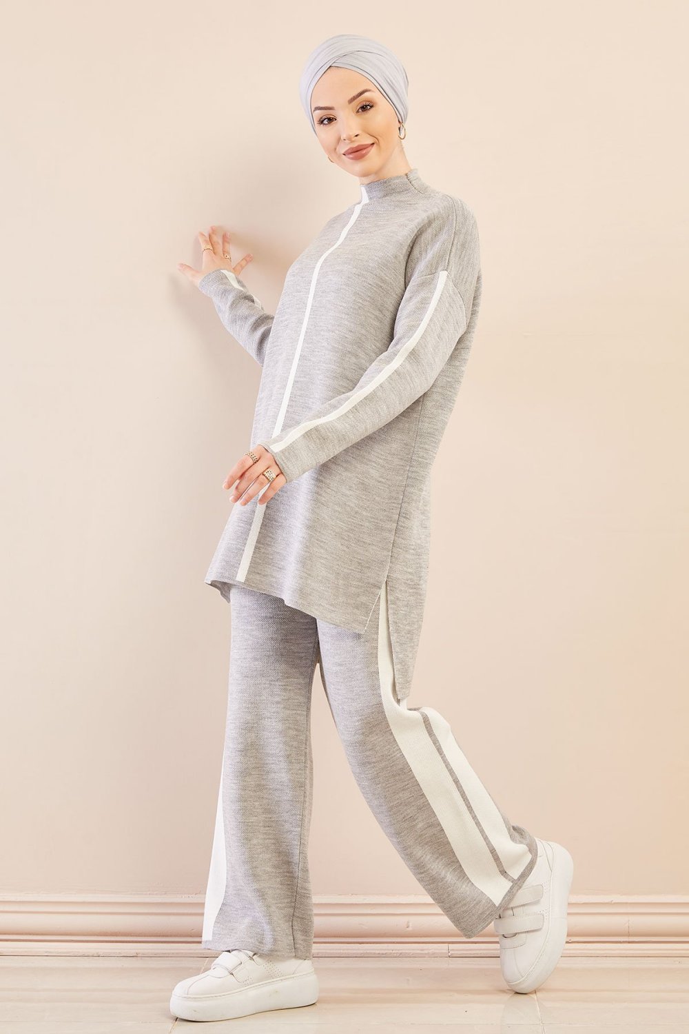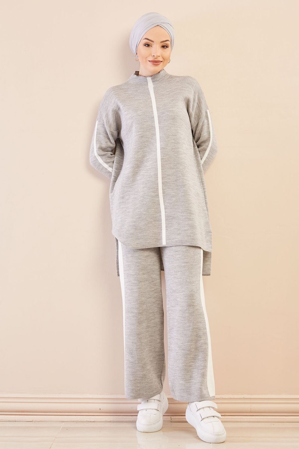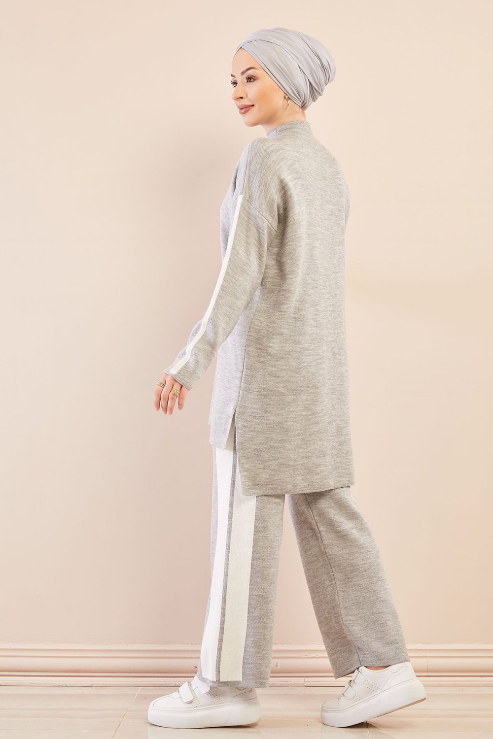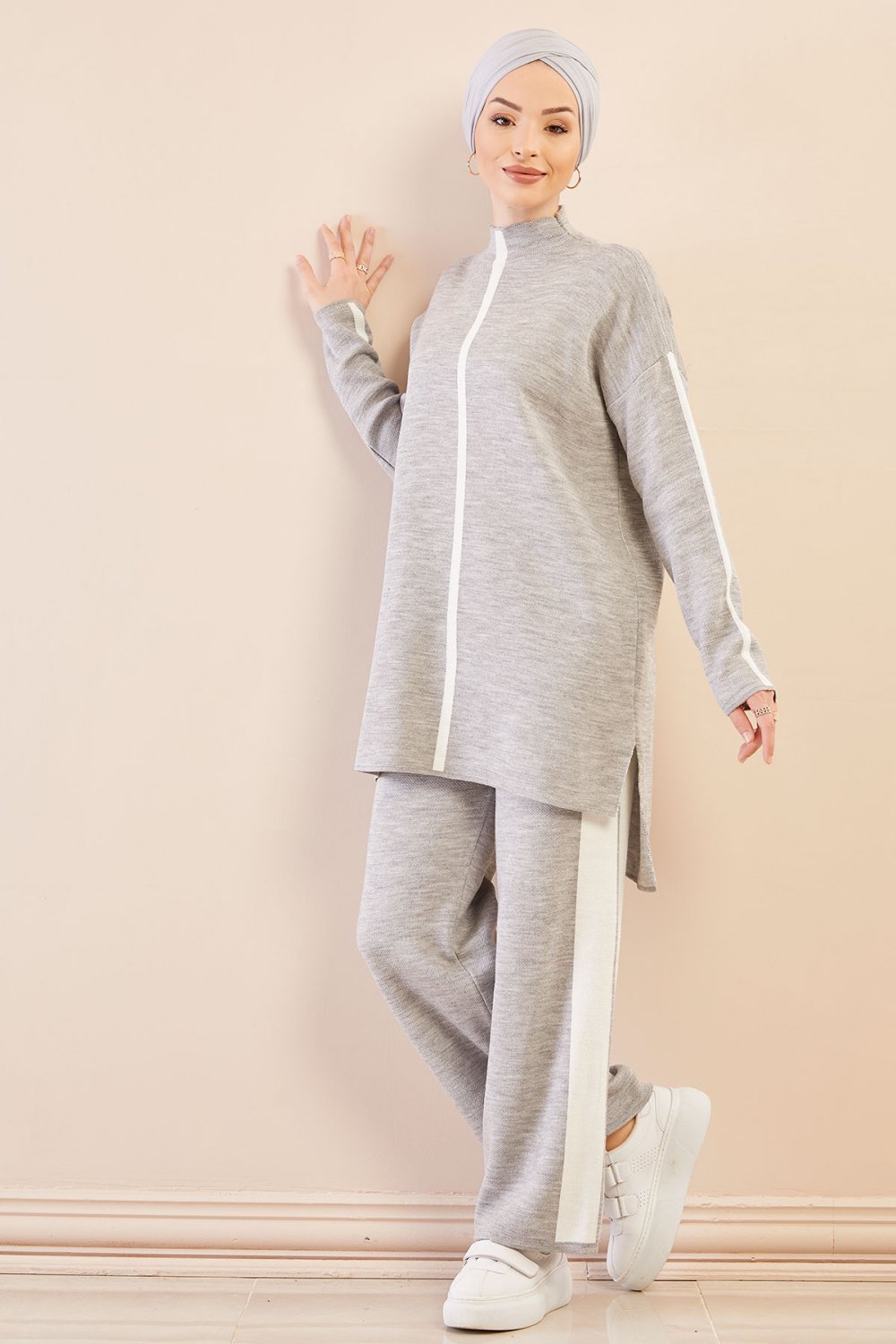 Ensemble survêtement ample pour femme - Couleur gris avec bandes blanches Vetement & Accessoire