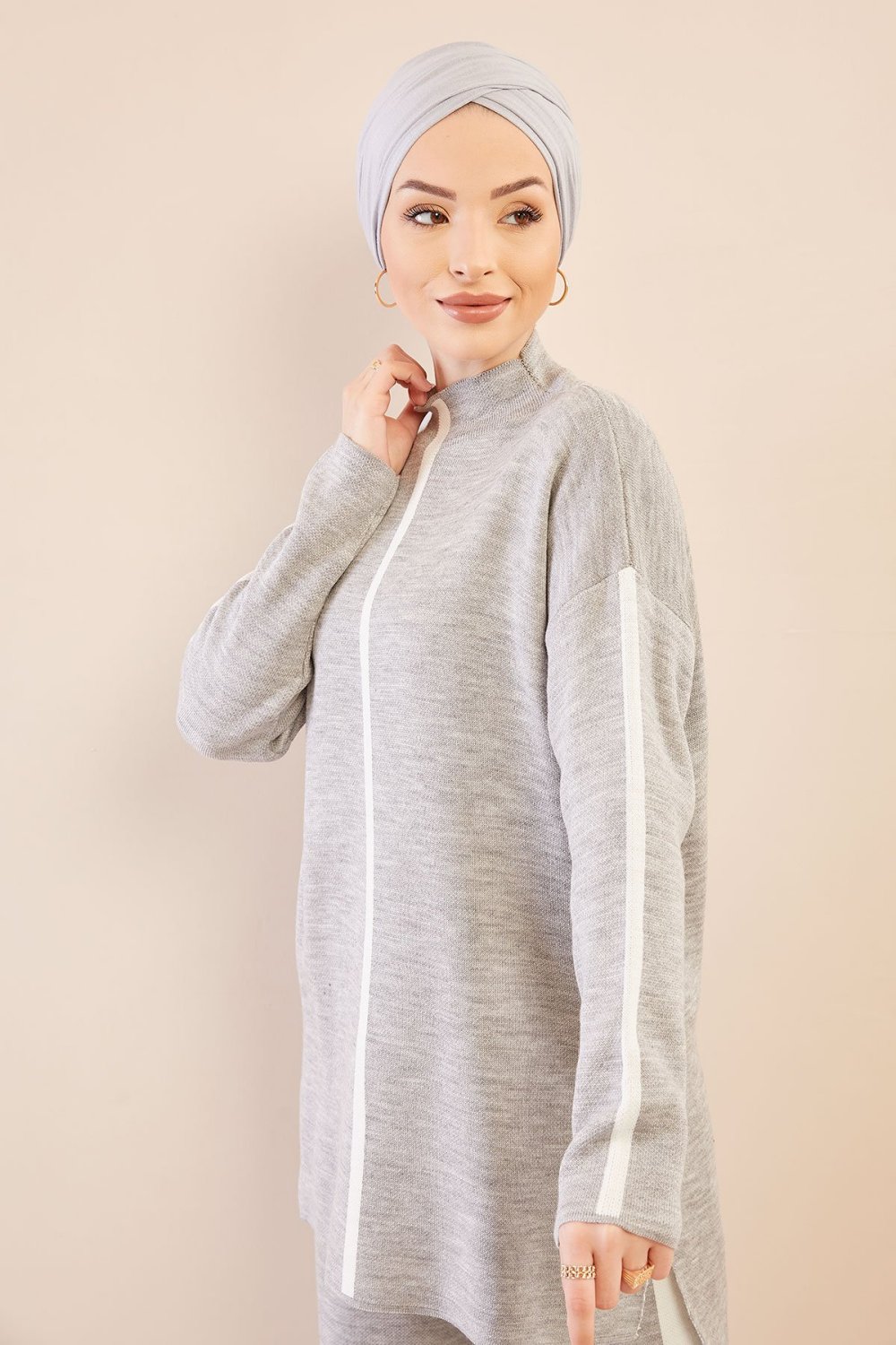 Ensemble casual tunique à capuche et pantalon (Modest Fashion) - Couleur beige et brique - REF. 33893 (35.00 €)
