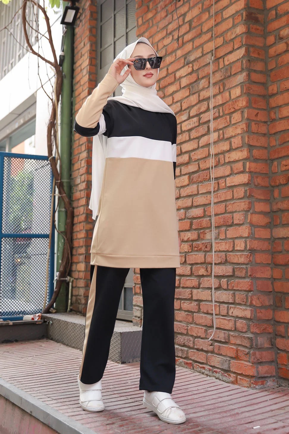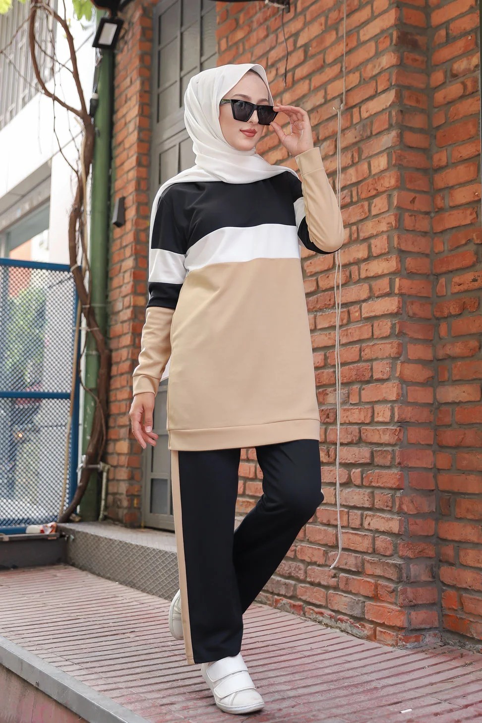 Survêtement hijab sport à capuche pour femme musulmane - Ensemble 2 pièces (Ootd) - Couleur noir et Beige - REF. 32818 (25.00 €)