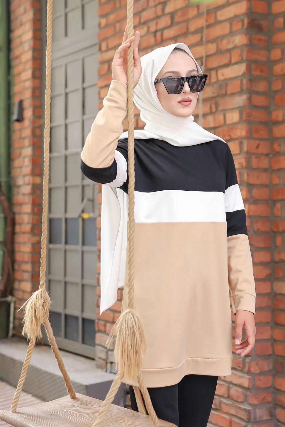 Tunique pour femme (Vêtement Hijab Style Sport et Décontracté) - Rayures de couleur noir - REF. 37517 (18.00 €)