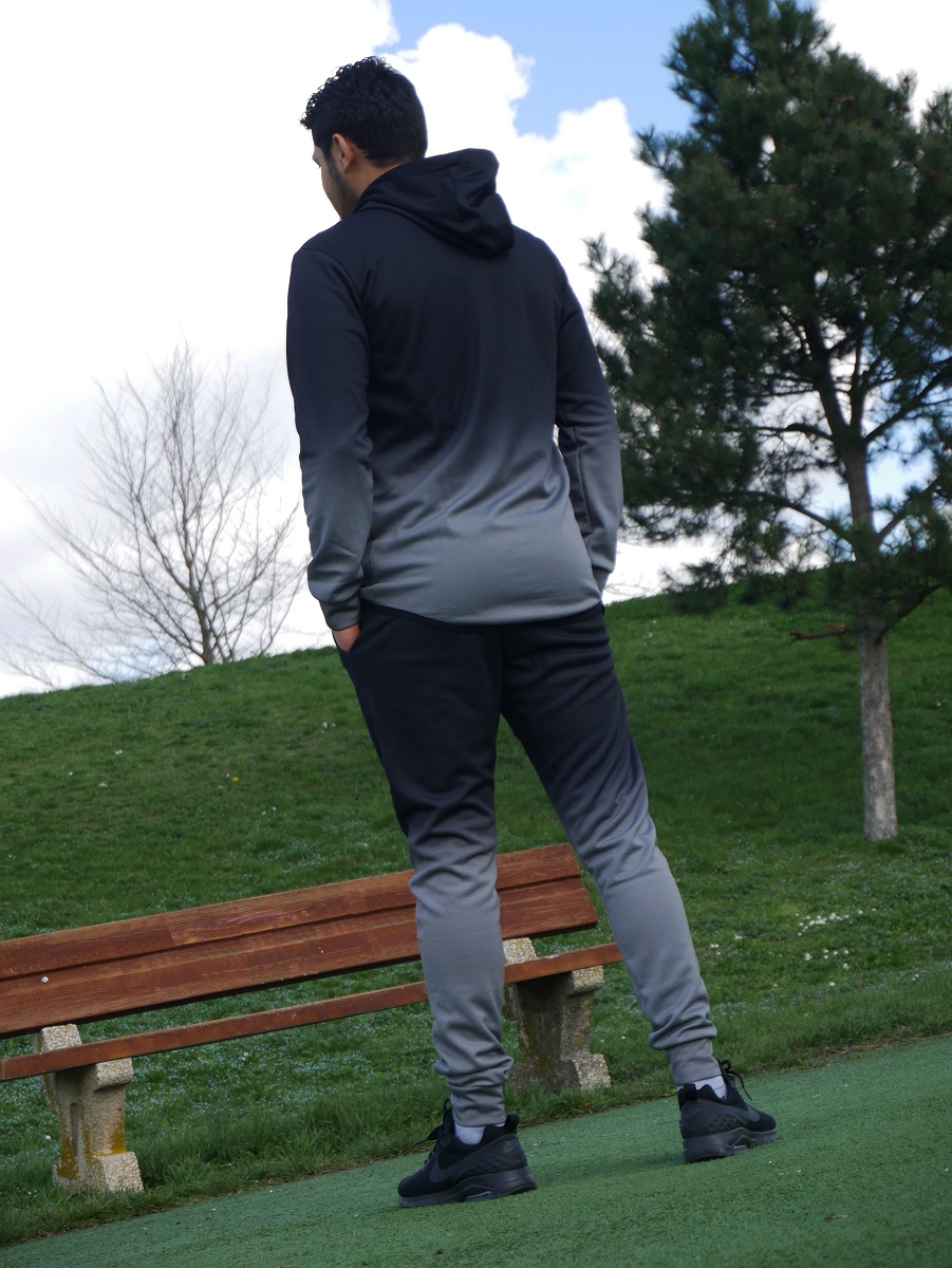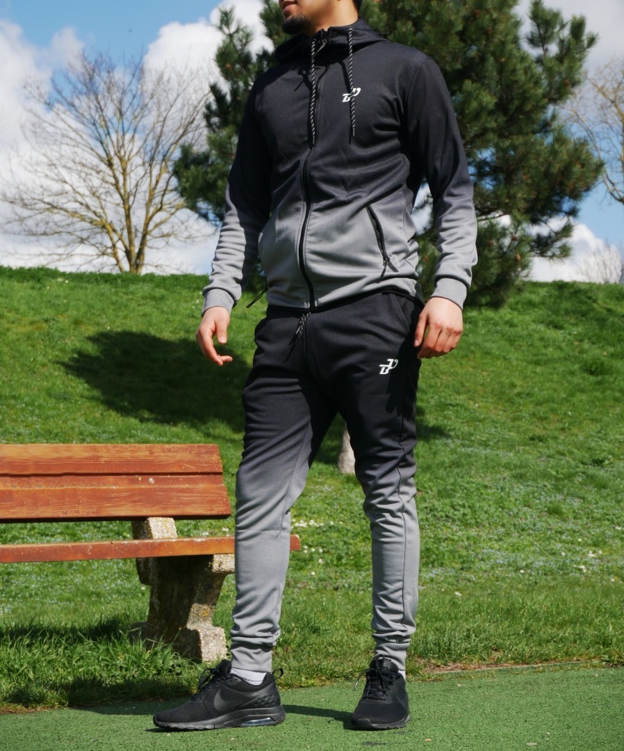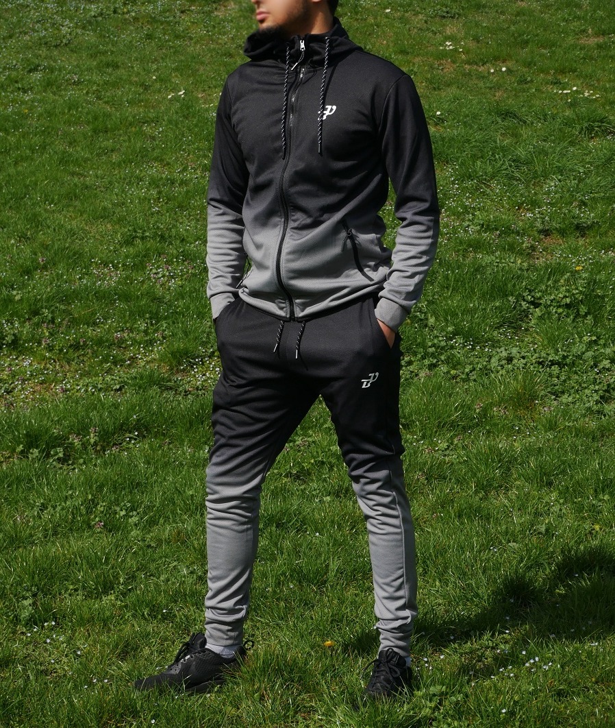 Dans un coloris gris nuancé, notre ensemble survêtement sera votre compagnon lors de vos moments détentes ou training en semaine ou en week-end. Ce survêtement complet est très tendance cette année avec son effet dégradé.