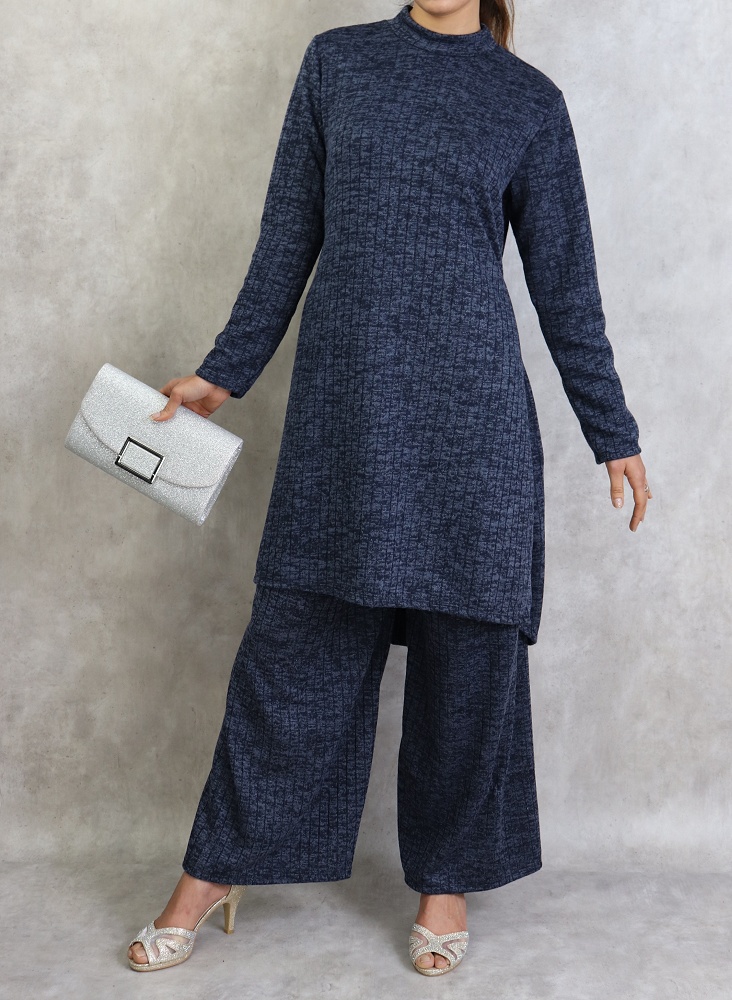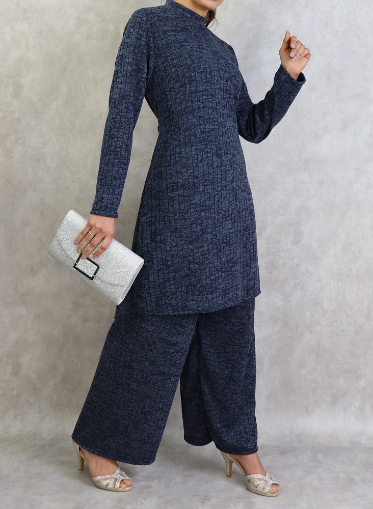 Ensemble confectionné dans un tissu chiné épais et chaud. Idéal pour se couvrir du froid confortablement, tout en adoptant un look chic.