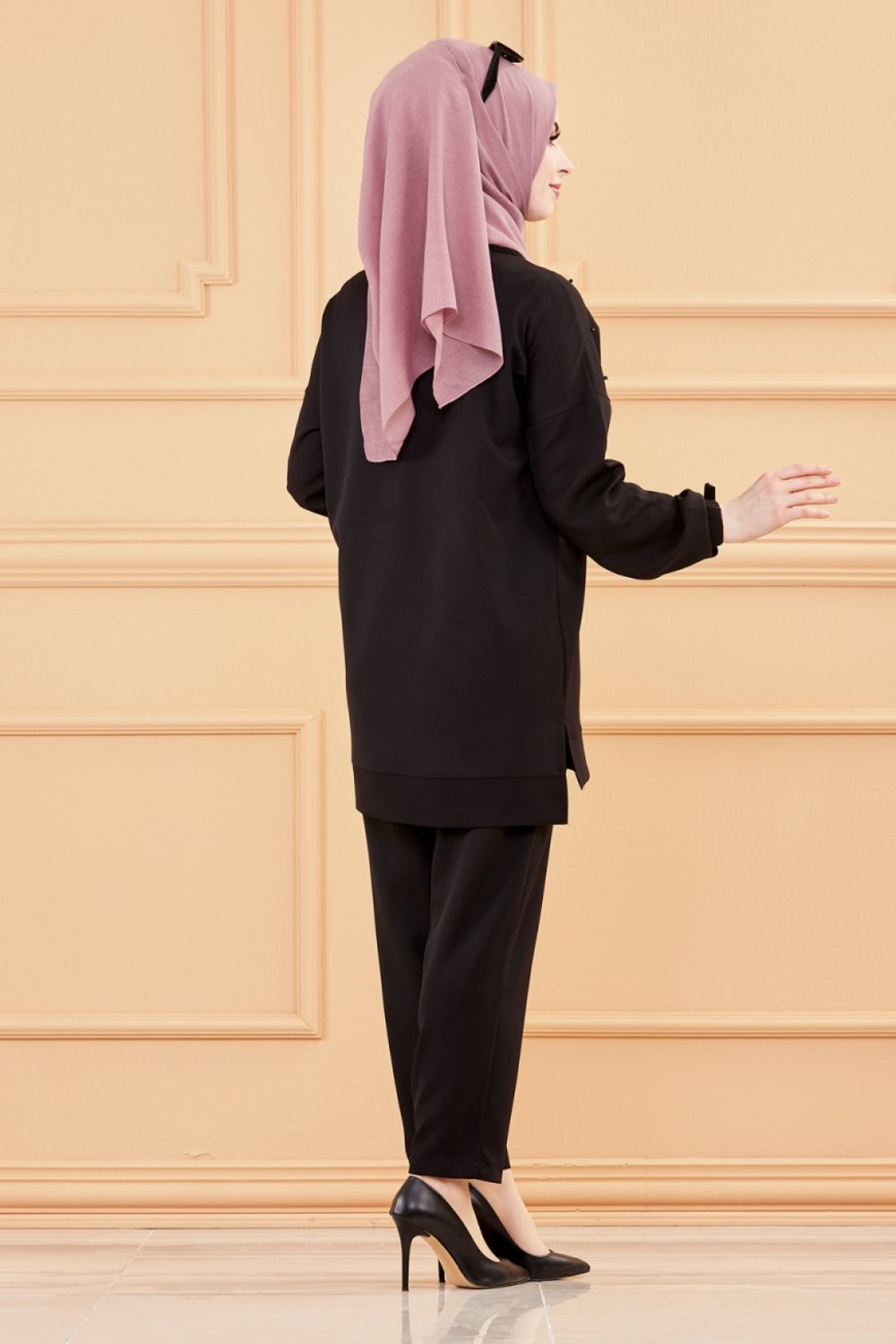 Ensemble tunique perlée et pantalon pour femme (Tenue Hijab style habillé) - Couleur noir Vetement & Accessoire