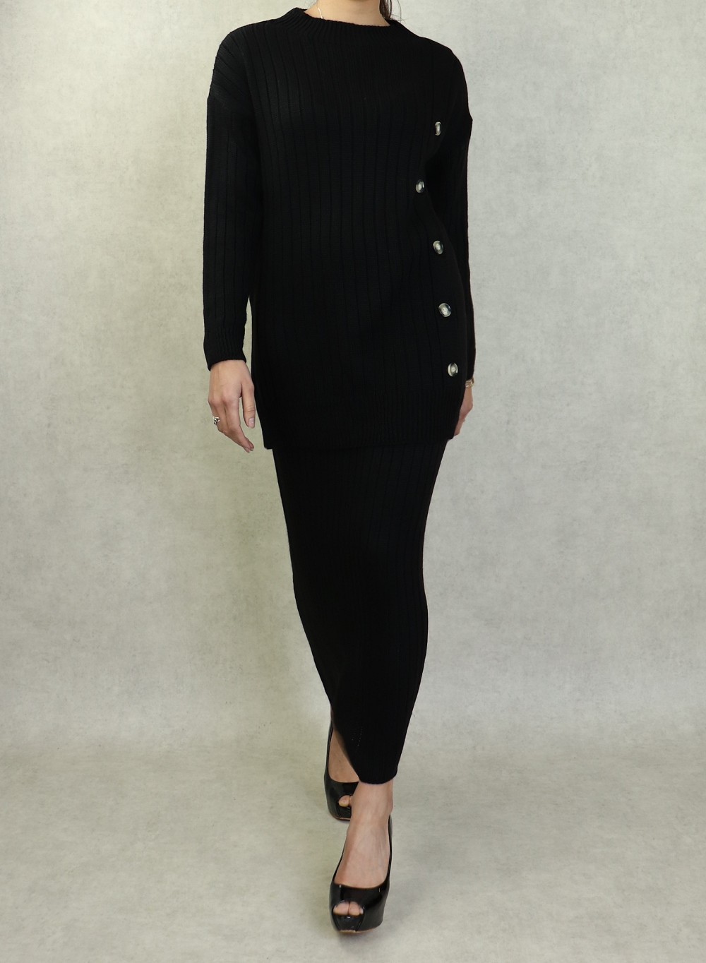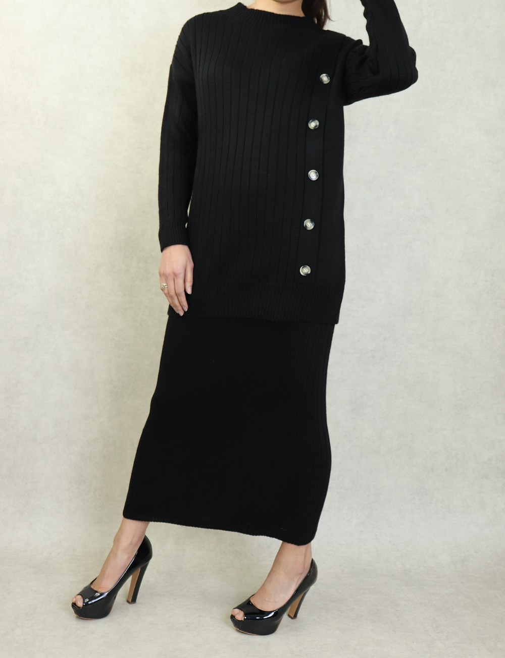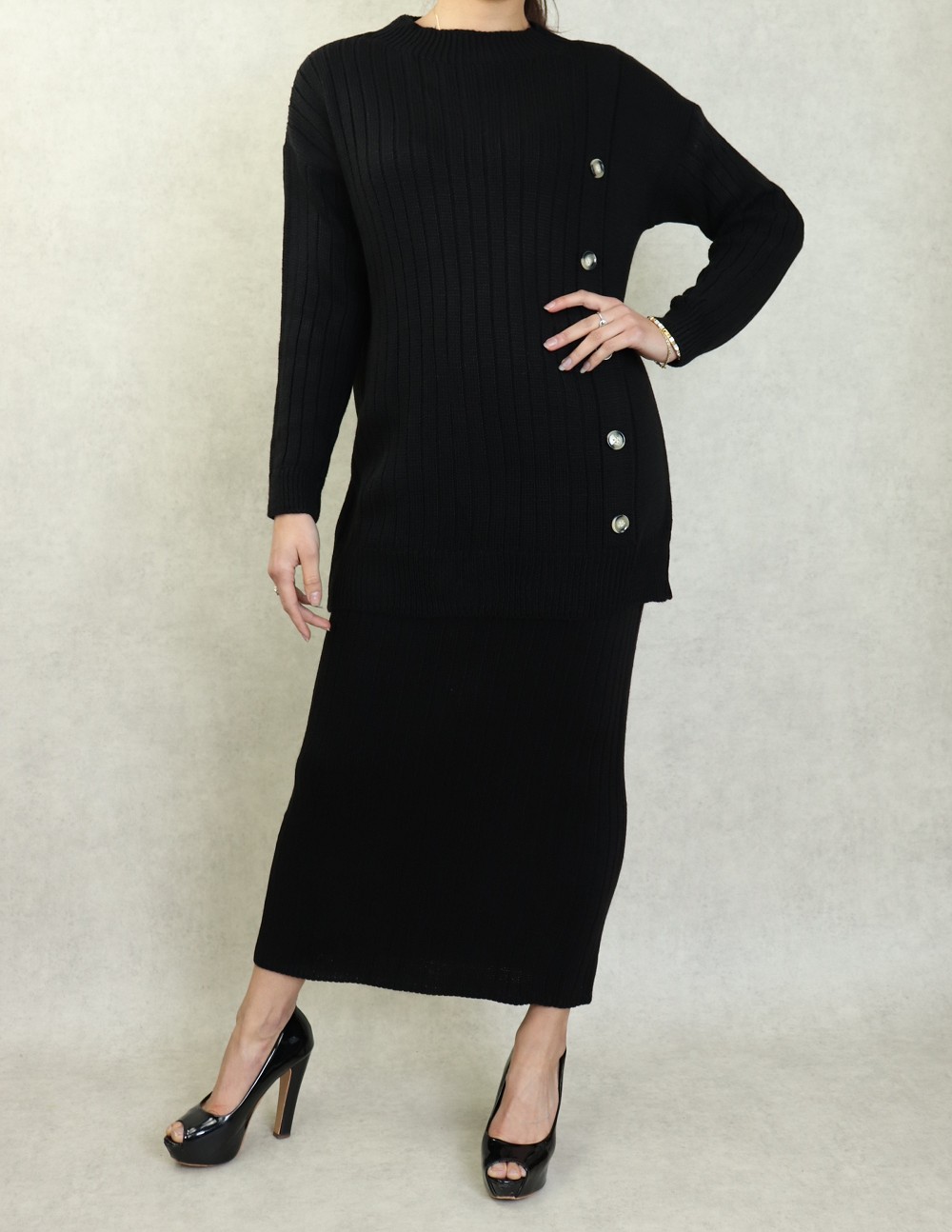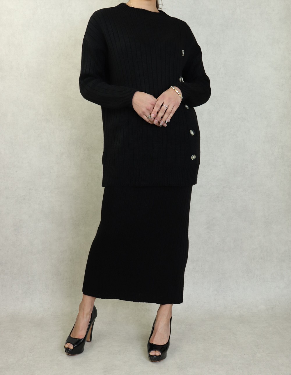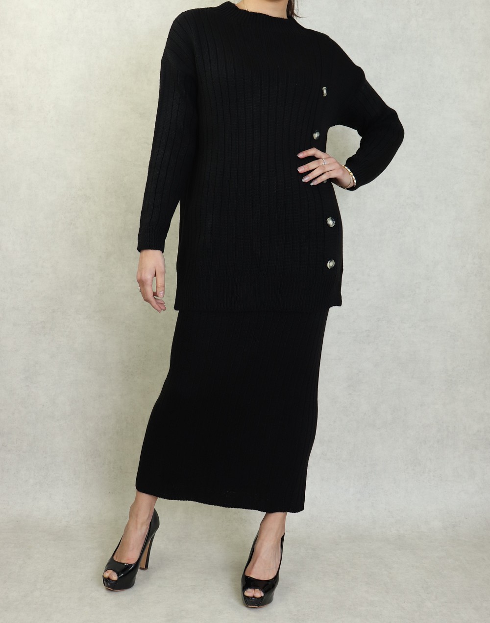 Ensembles deux pièces Tunique et Jupe en grosse mailles pour femme - Couleur Noir Vetement & Accessoire