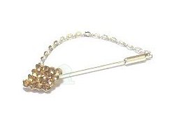 Epingle à broche pour Hijâb en métal argenté, sertie de pierres cristallines en forme de losange, et de couleur jaune.
