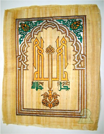Papyrus fait main par un calligraphe portant le nom d'ALLAH.