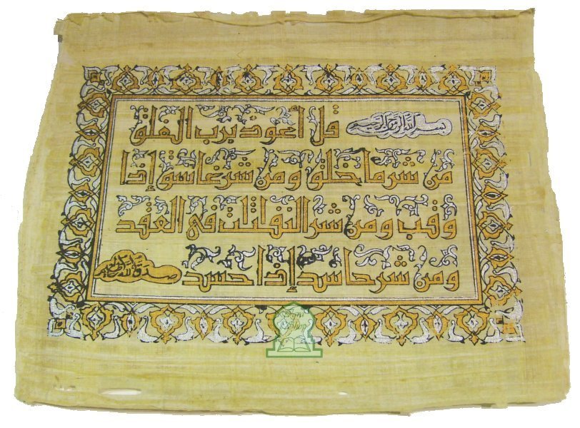 Feuille de papyrus d'origine avec certificat : Sourate al-Falaq - مخطوطة برديّة أصليّة عليها سورة الفلق - REF. 4921 (4.90 €)