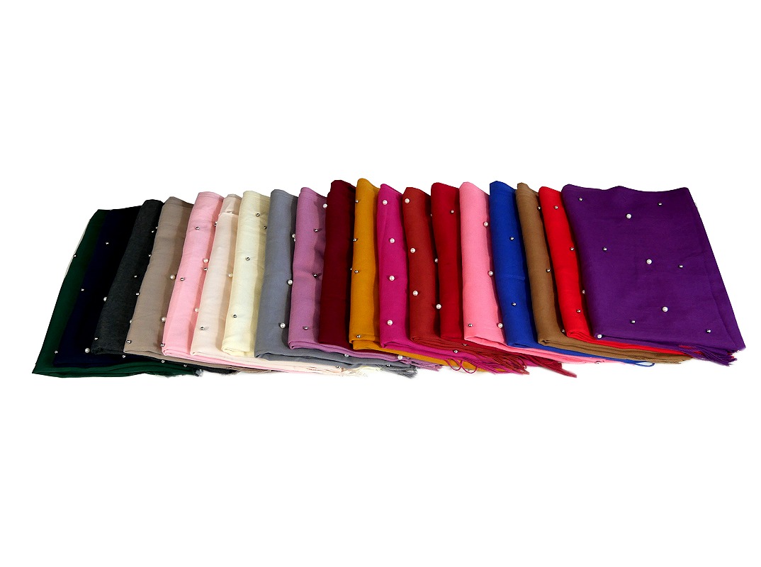 Grand châle de couleur unie avec des franges. Matière légère et opaque douce de type cachemire.