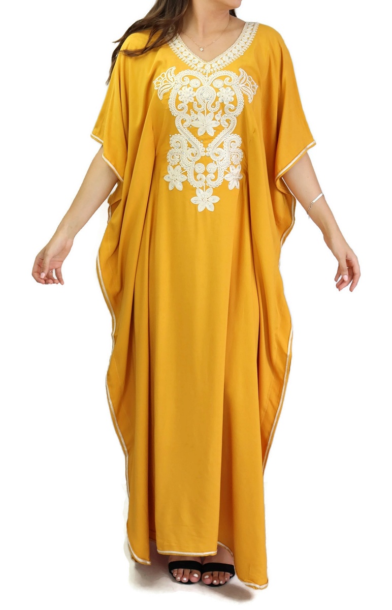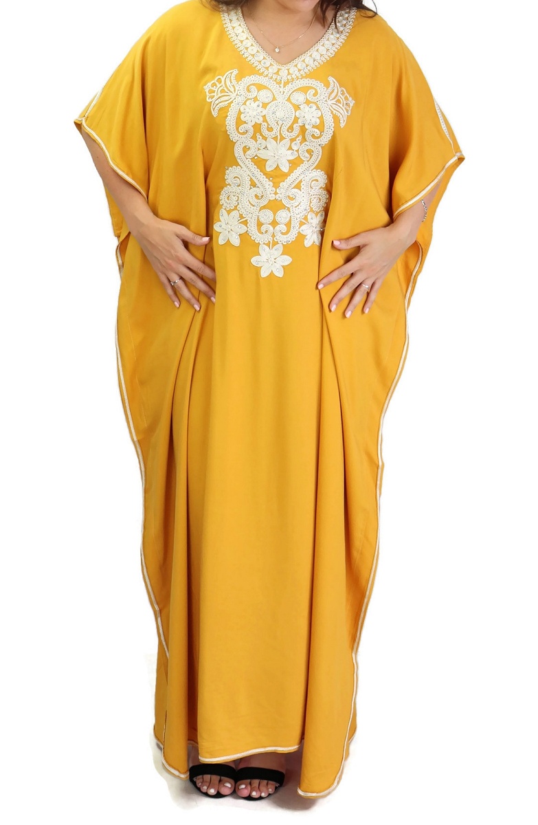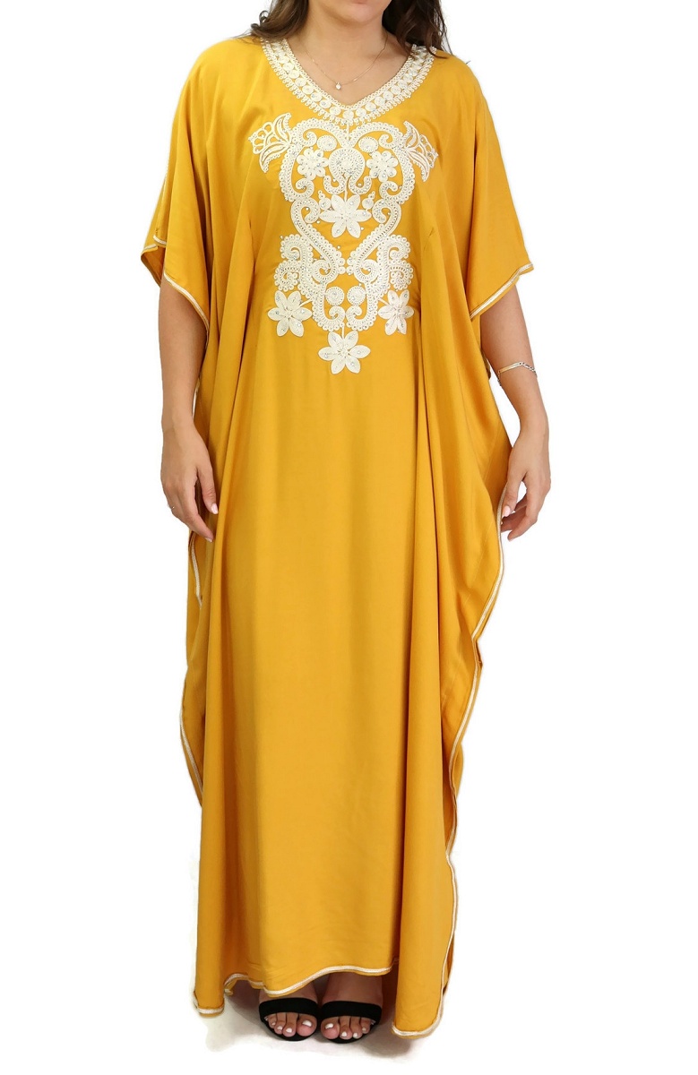 Gandoura / Robe marocaine manches courtes avec décorations - Couleur Jaune Vetement & Accessoire