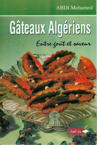 Un livre de gâteaux algériens présenté par Abdi Mohamed avec des photos illustrées.