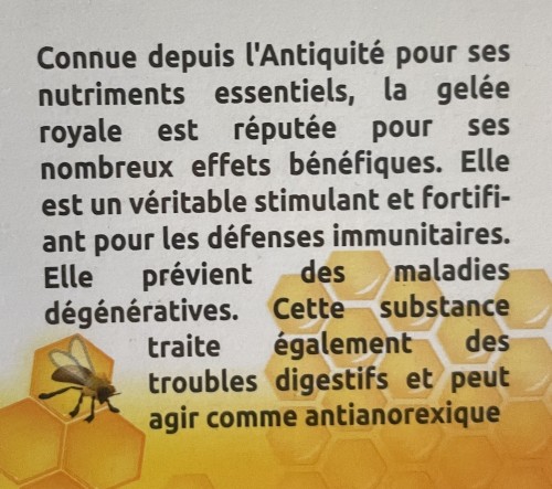 Sécrétée par les abeilles, particulièrement riche en vitamines du groupe B et en oligoéléments la gelée royale est un aliment de luxe aux nombreux bienfaits.