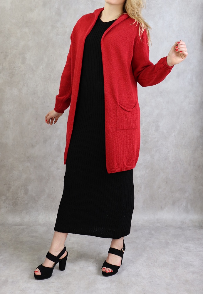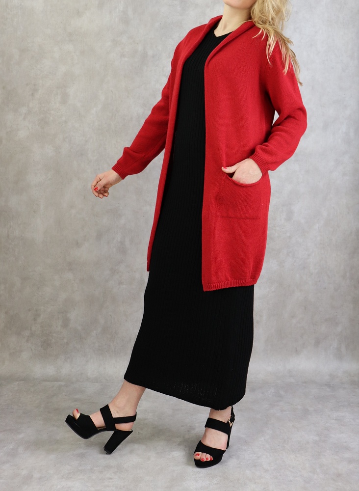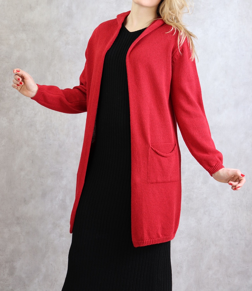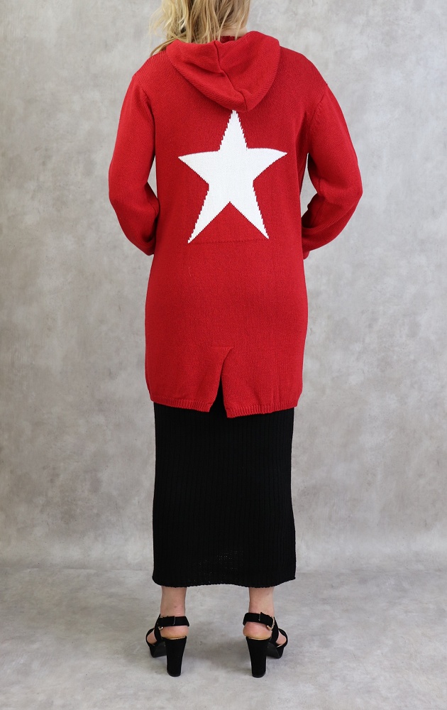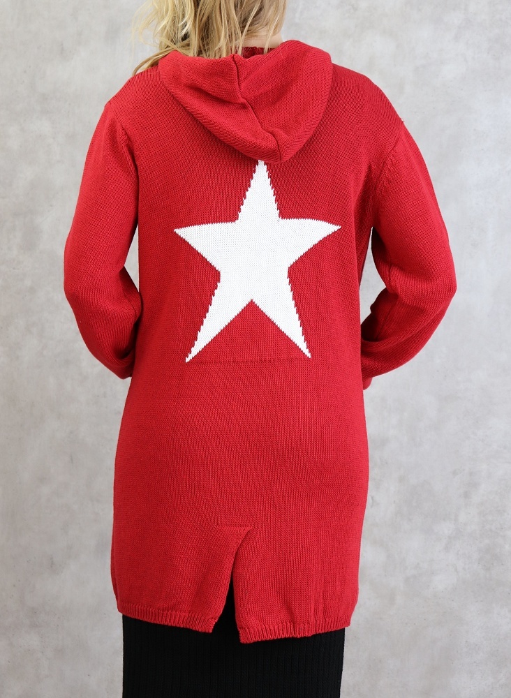 Gilet mi long ouvert, 2 poches avant, capuche, fente arrière, motif étoilé.