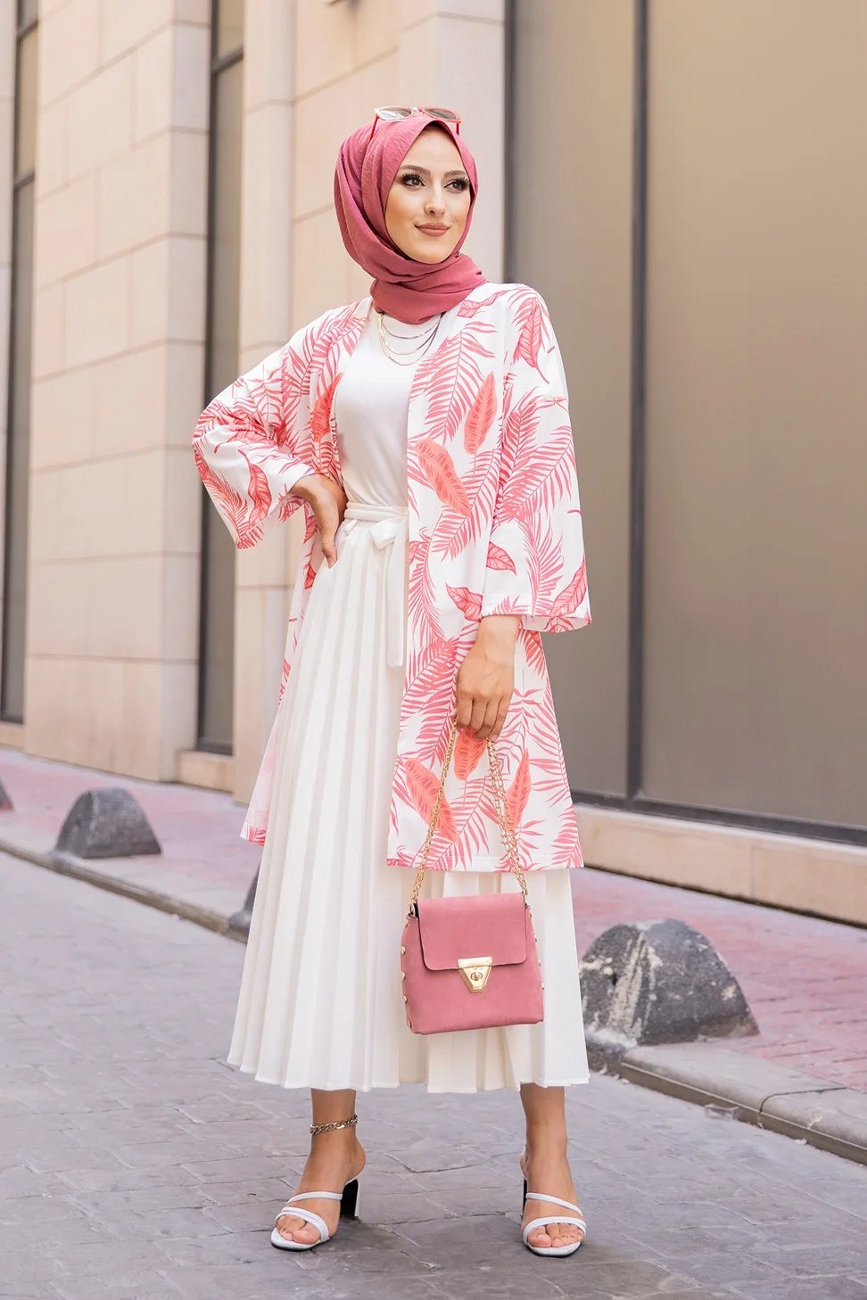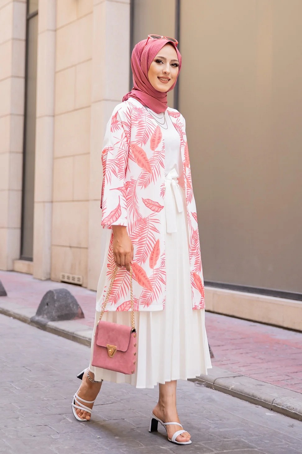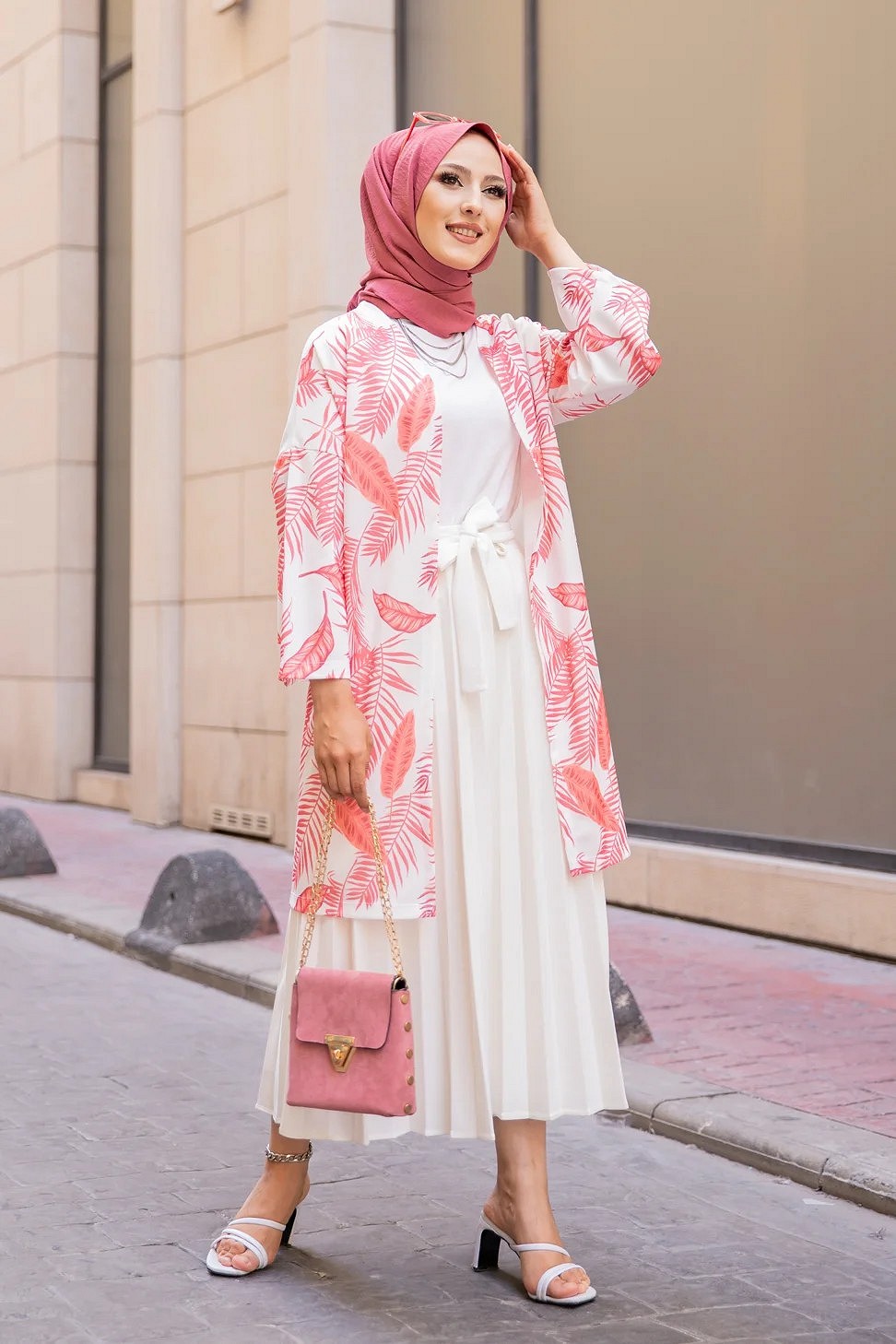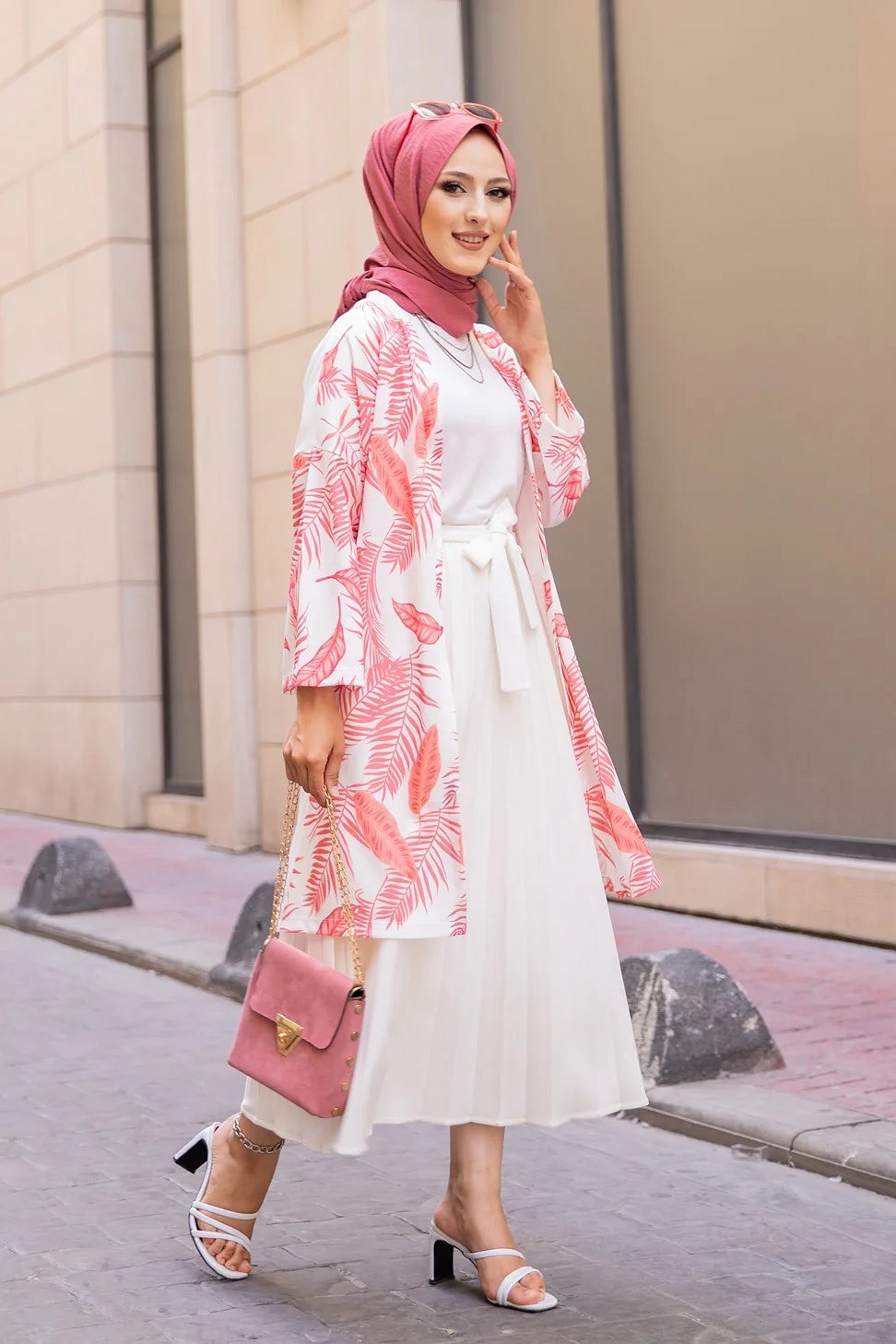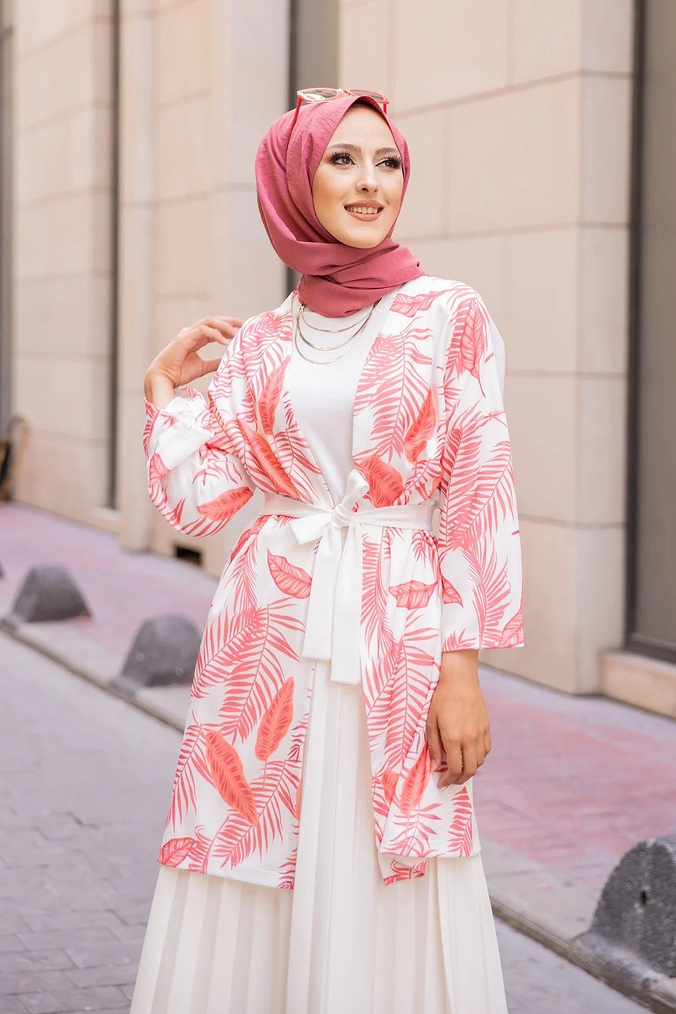Gilet avec sa ceinture (Vetement pas cher pour femme voilee) - Couleur corail