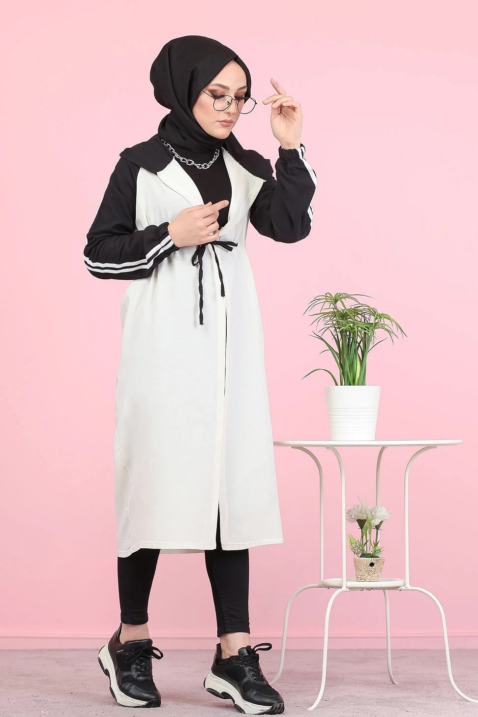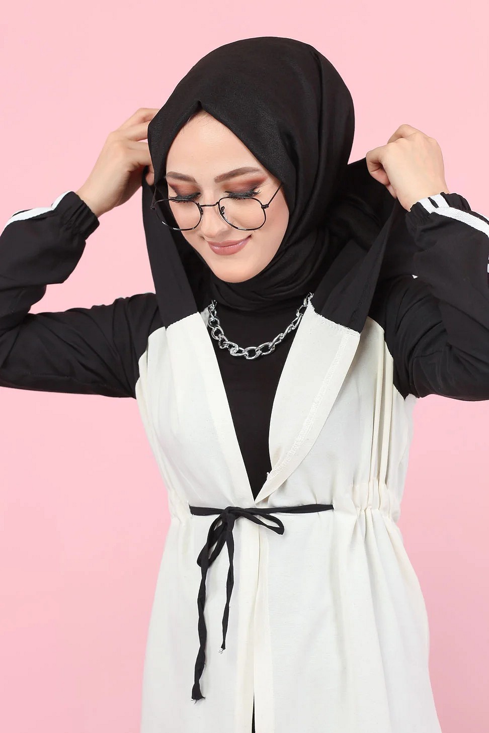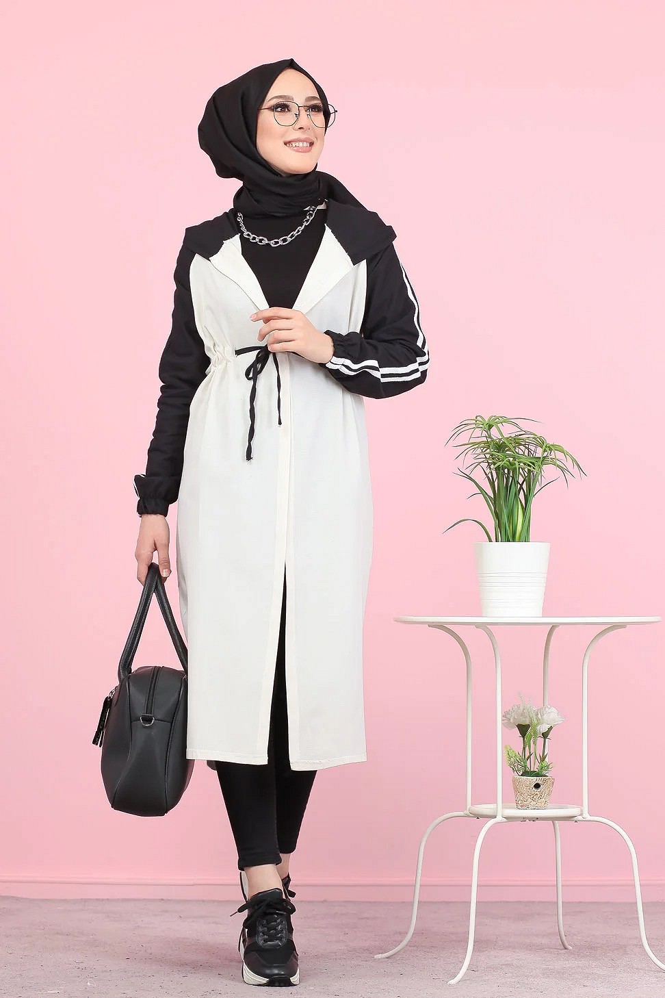Gilet decontracte a capuche (Vetement moderne pour femme voilee) - Couleur blanc et noir