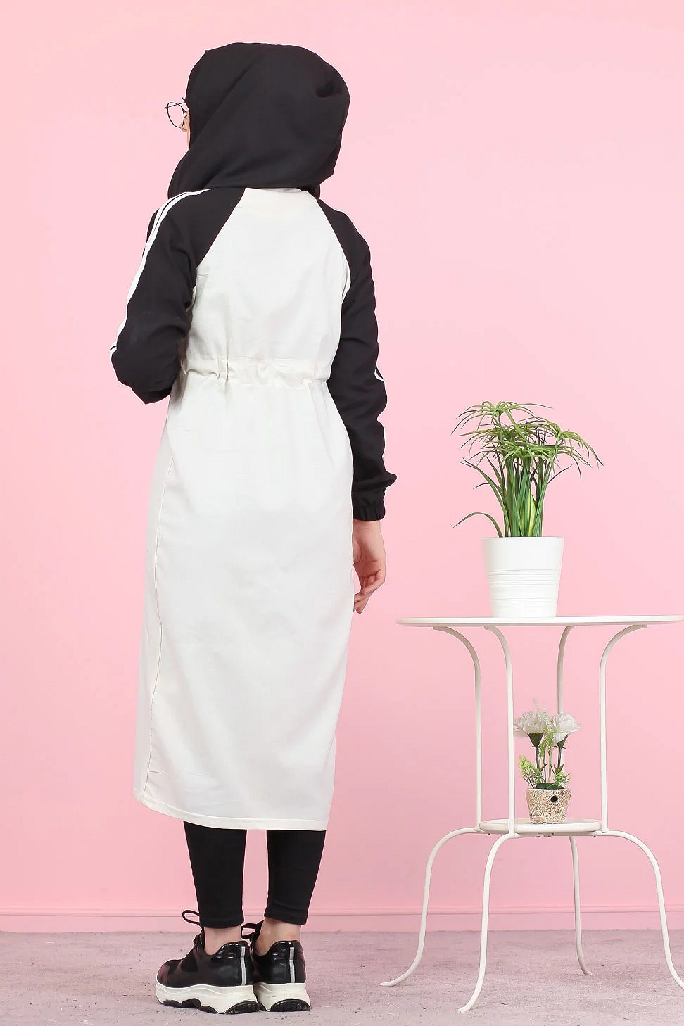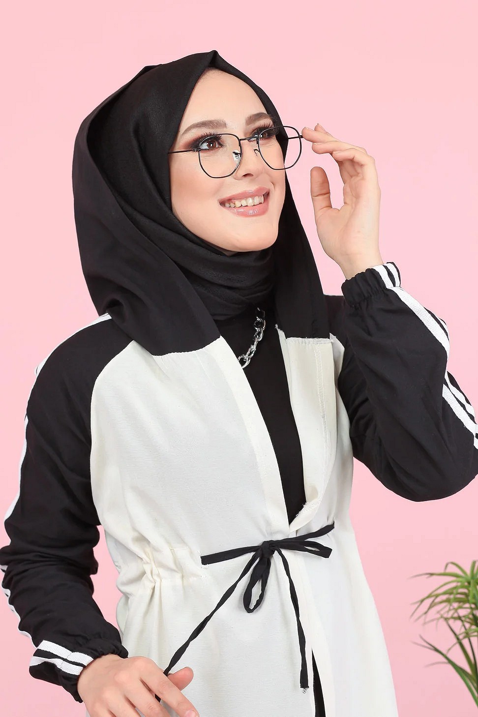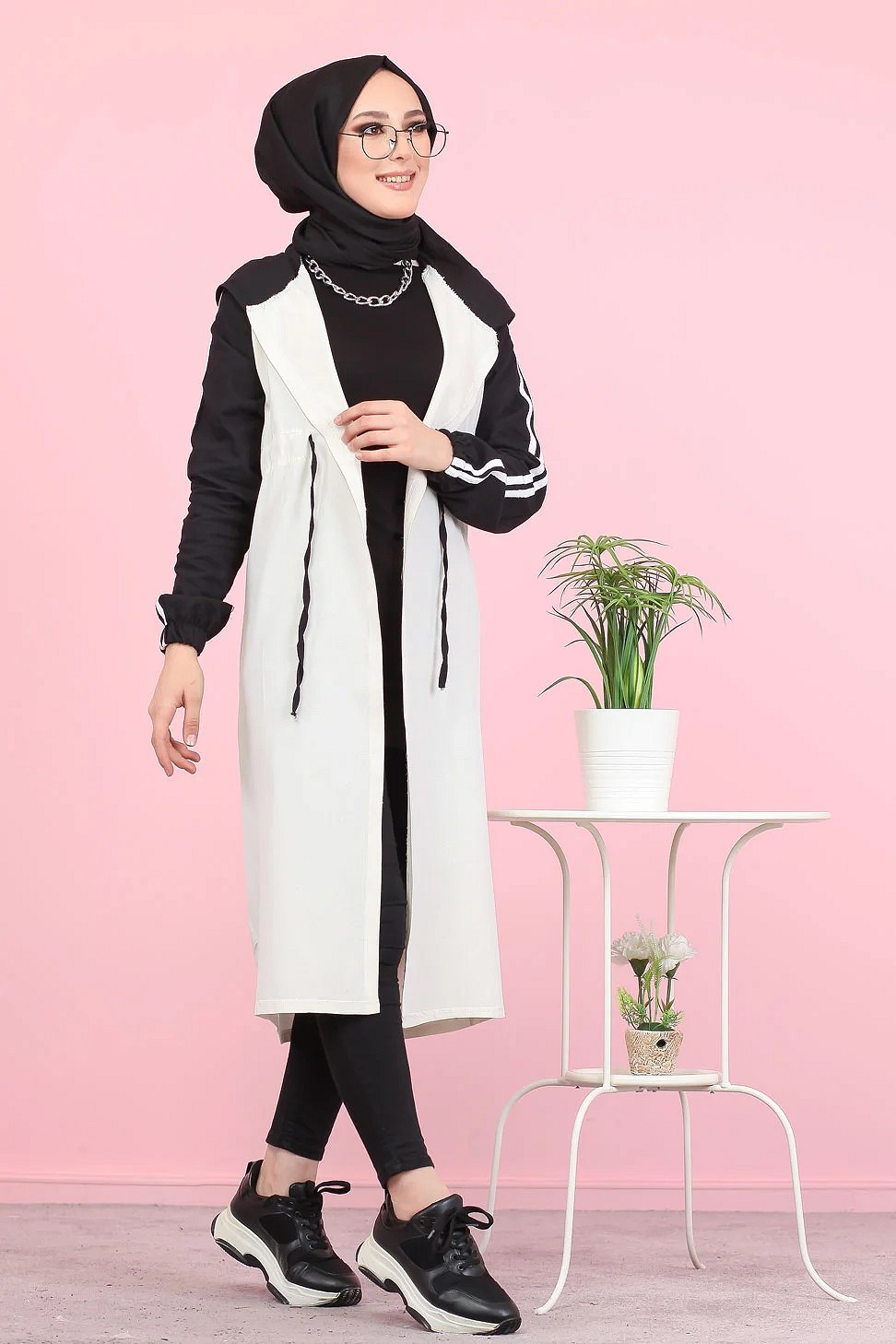Gilet decontracte a capuche (Vetement moderne pour femme voilee) - Couleur blanc et noir