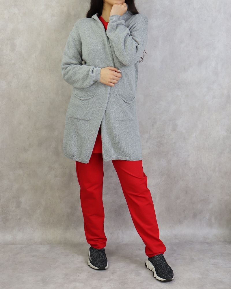 Gilet long en maille - Cardigan femme - Couleur noir - REF. 37555 (29.90 €) - En Promotion à 19.90 €